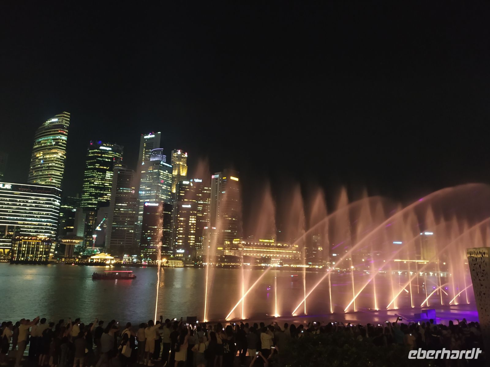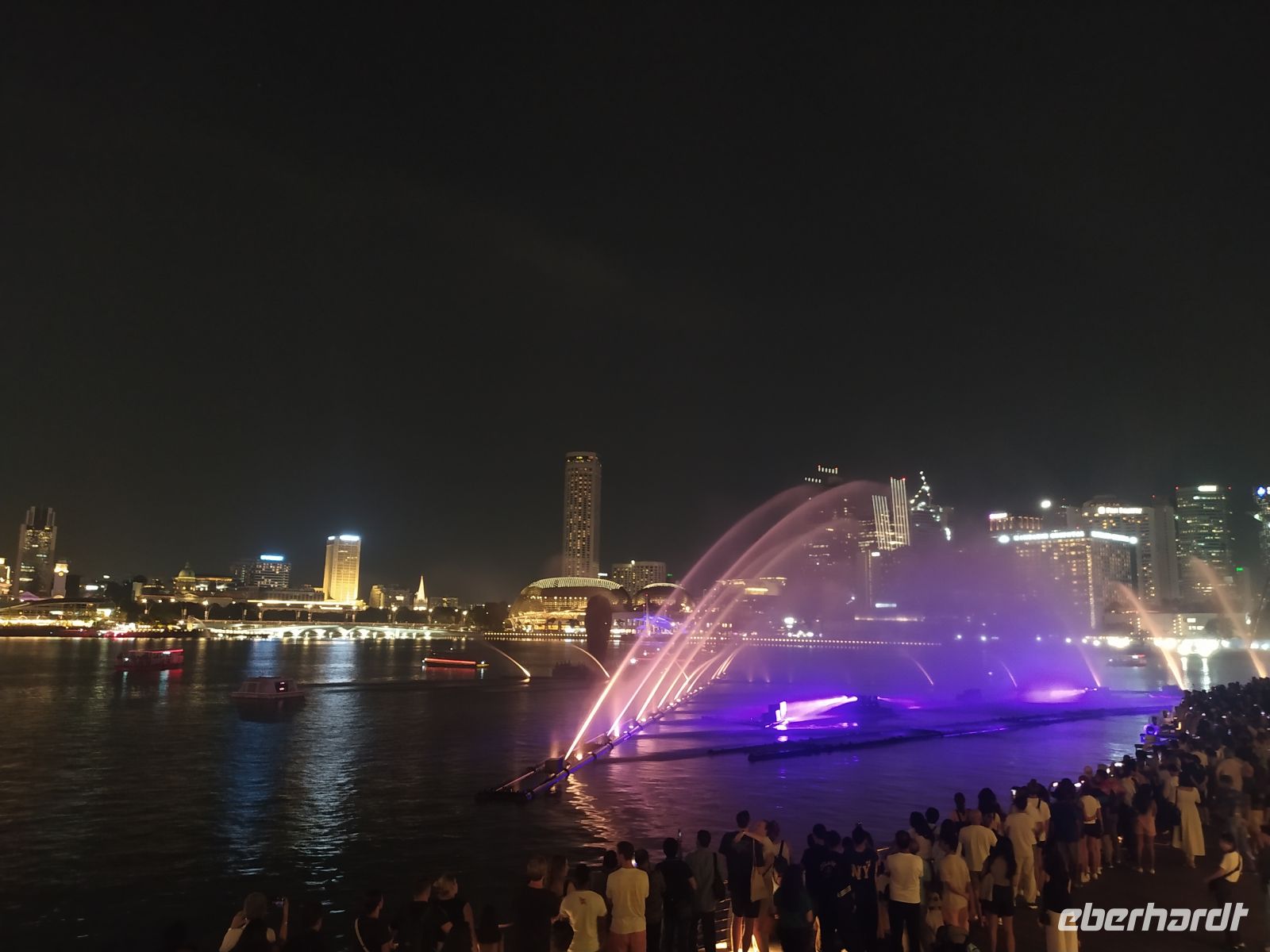Nach einer kurzen Verschnaufpause begann unser erstes großes Abenteuer: die berühmten Lichtshows der Metropole! Mehrere Taxis brachten uns zur Spectra Light & Water Show am Marina Bay Sands – ein spektakuläres Zusammenspiel aus Farben, Wasserfontänen und Musik, das uns in nur 15 Minuten in Staunen versetzte! Danach spazierten wir weiter zu den Gardens by the Bay, wo uns die zweite Show des Abends erwartete. Unter leuchtenden Supertrees, umgeben von Besuchern aus aller Welt, erlebten wir eine fast magische Atmosphäre voller Frieden und Begeisterung!