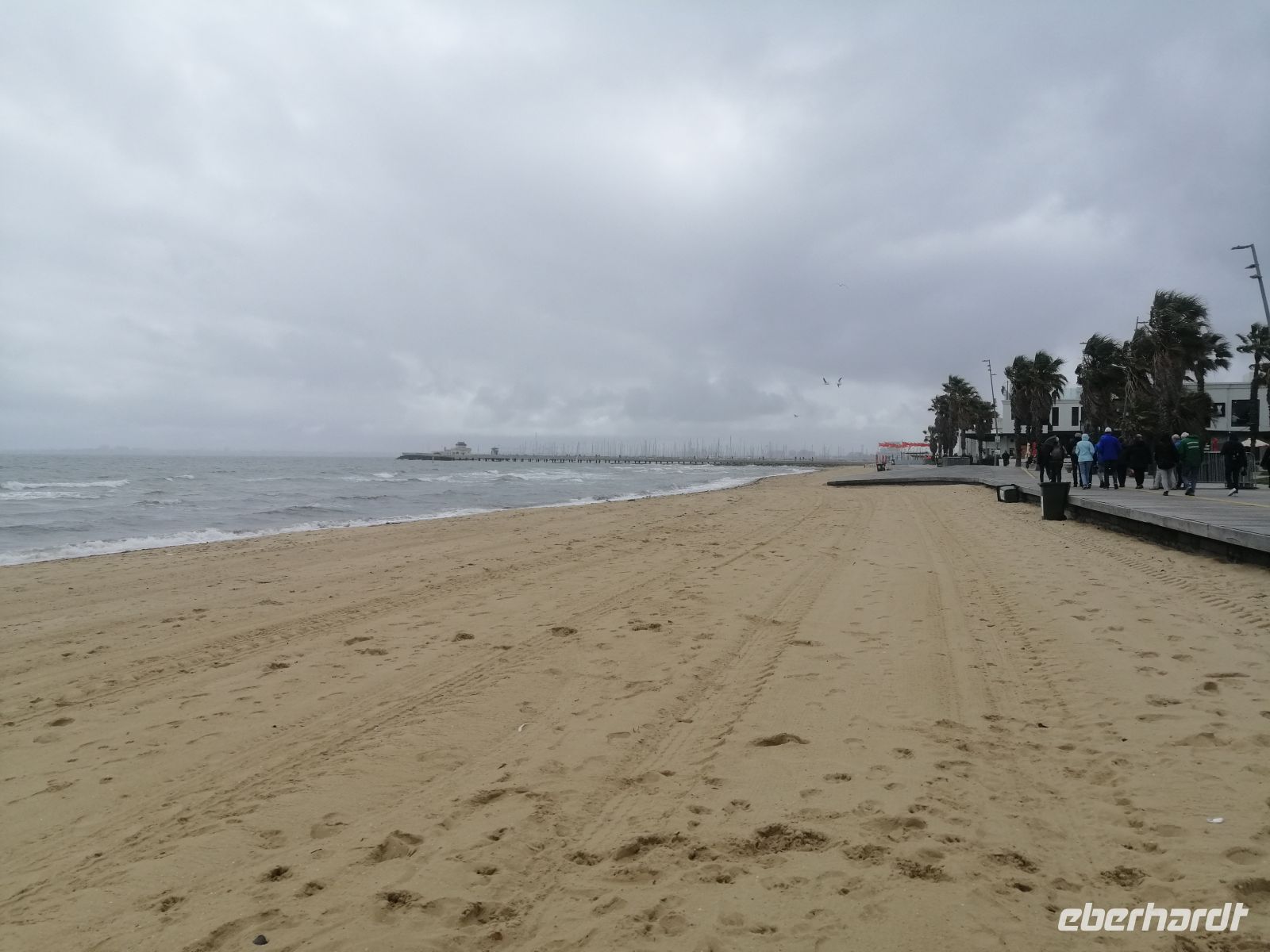 Gegen Mittag starteten wir gemeinsam mit Andrea zu einer spannenden Stadtrundfahrt. Erster Halt: der berühmte Queen Victoria Market, dessen bunte Stände wir auf eigene Faust erkunden konnten. Anschließend führte uns Andrea durch das lebhafte Melbourne, die zweitgrößte Stadt Australiens, und präsentierte uns ihre Highlights: elegante Alleen, viktorianische Architektur, weitläufige Parks, die königlichen botanischen Gärten, den legendären Melbourne Cricket Ground, die St. Paul’s Cathedral, das Parlament, die historische Flinders Street Station und den Yarra River. Ein besonderes Erlebnis war der kurze Spaziergang an der Esplanade von St Kilda, wo wir den Blick über die Port Phillip Bay schweifen ließen – ein Moment voller Weite und Urlaubsgefühl.