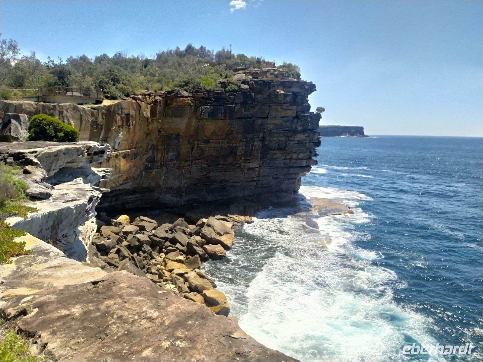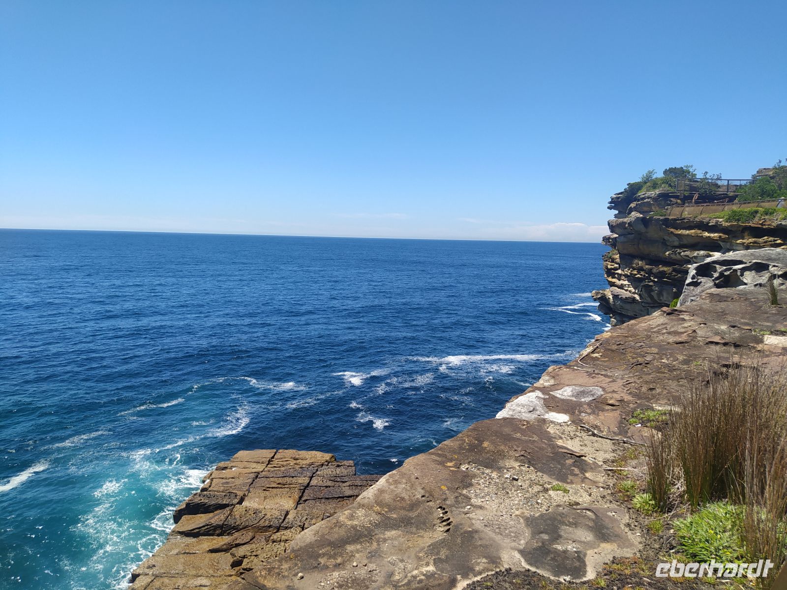 Schon früh am Morgen trafen wir uns an der Hotelrezeption, wo uns praktische Frühstücksboxen erwarteten. Das Hotelteam verwöhnte uns sogar noch mit einem frisch aufgebrühten Kaffee – ein perfekter Start in den Tag! Um 9 Uhr hob unser Flug mit Virgin Airlines Richtung Sydney ab. Am Flughafen begrüßte uns unser neuer Reiseleiter Marcel, der uns in den kommenden Tagen begleiten würde. Ohne Zeit zu verlieren, starteten wir direkt zur ersten Entdeckungstour durch Sydney. Unser erster Halt war Watsons Bay im Gap Park, wo wir bei einem kurzen Spaziergang und mehreren Fotostopps die beeindruckenden Klippenlandschaften bewunderten.