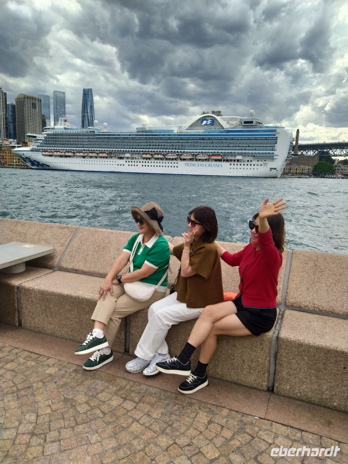 Gegen Mittag trafen wir unseren Reiseleiter Marcel und machten uns auf den Weg zum Circular Quay, dem pulsierenden Herzen des Sydney-Hafens. Vor der geplanten Hafenrundfahrt nutzten viele Gäste die Zeit, um das historische Viertel The Rocks auf eigene Faust zu erkunden – ein charmantes Labyrinth aus kleinen Boutiquen, gemütlichen Cafés und viel Geschichte! Anschließend starteten wir zu einer entspannten Hafenrundfahrt durch einen der schönsten Naturhäfen der Welt! Wir glitten vorbei am Opernhaus, unter der imposanten Harbour Bridge hindurch und bewunderten die Skyline sowie idyllische Buchten, die Sydney zu einer der faszinierendsten Städte weltweit machen!