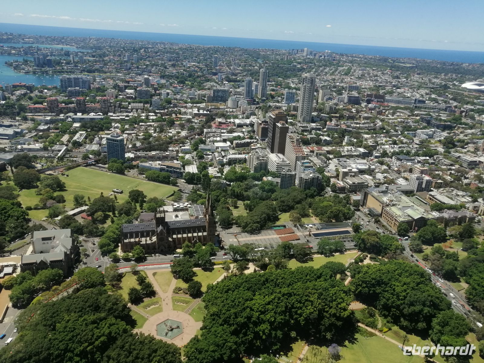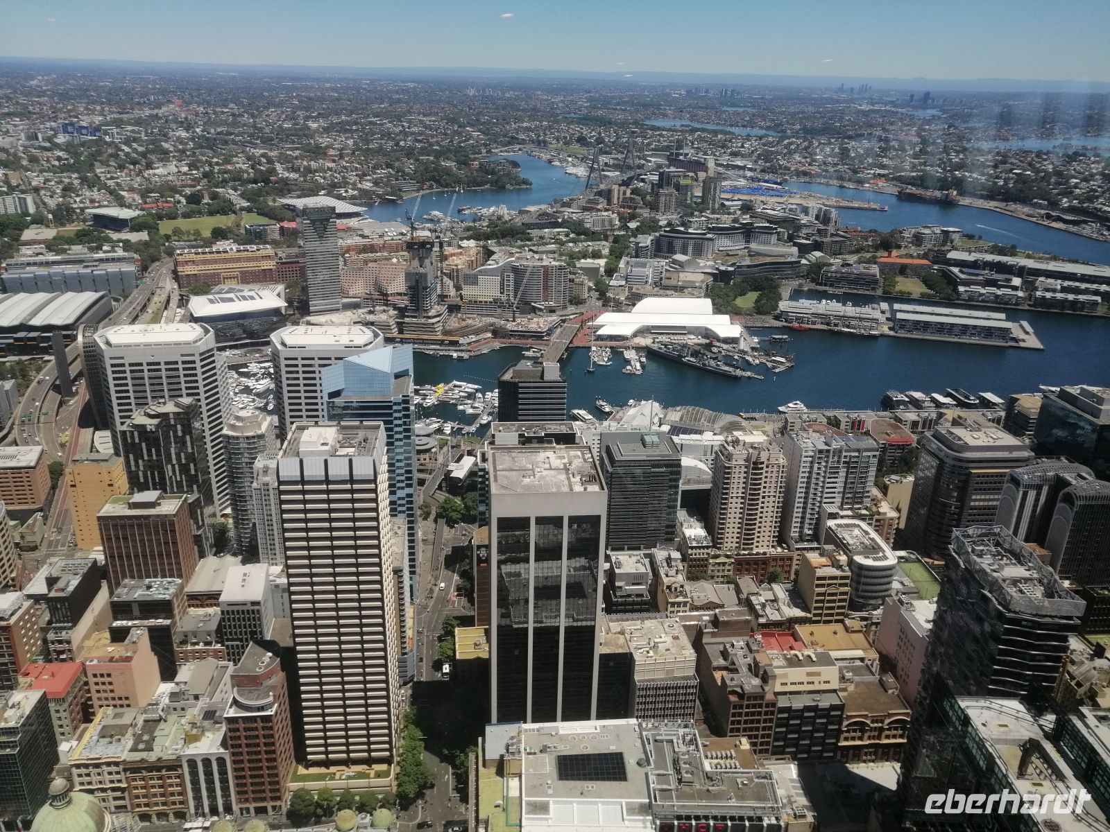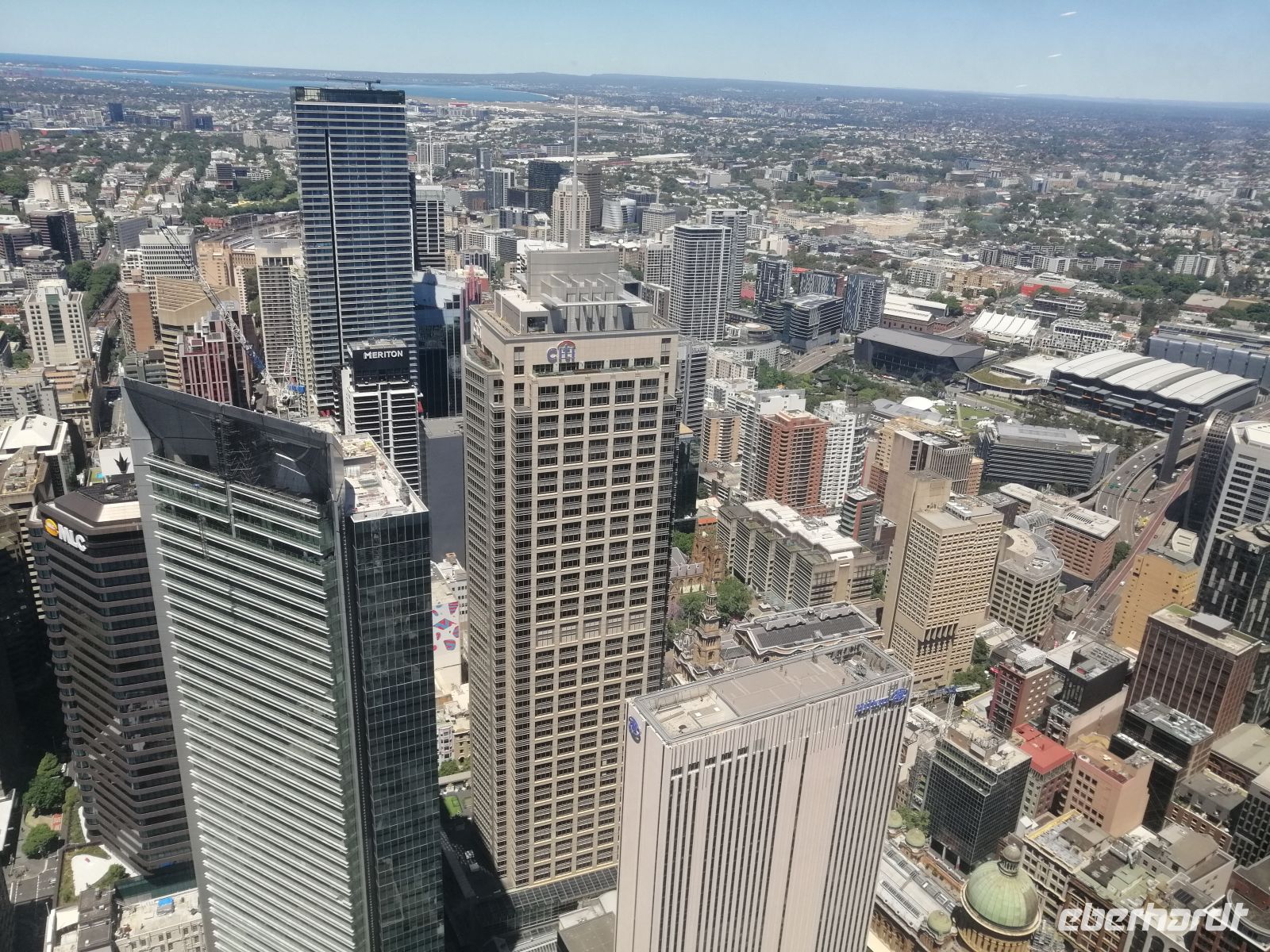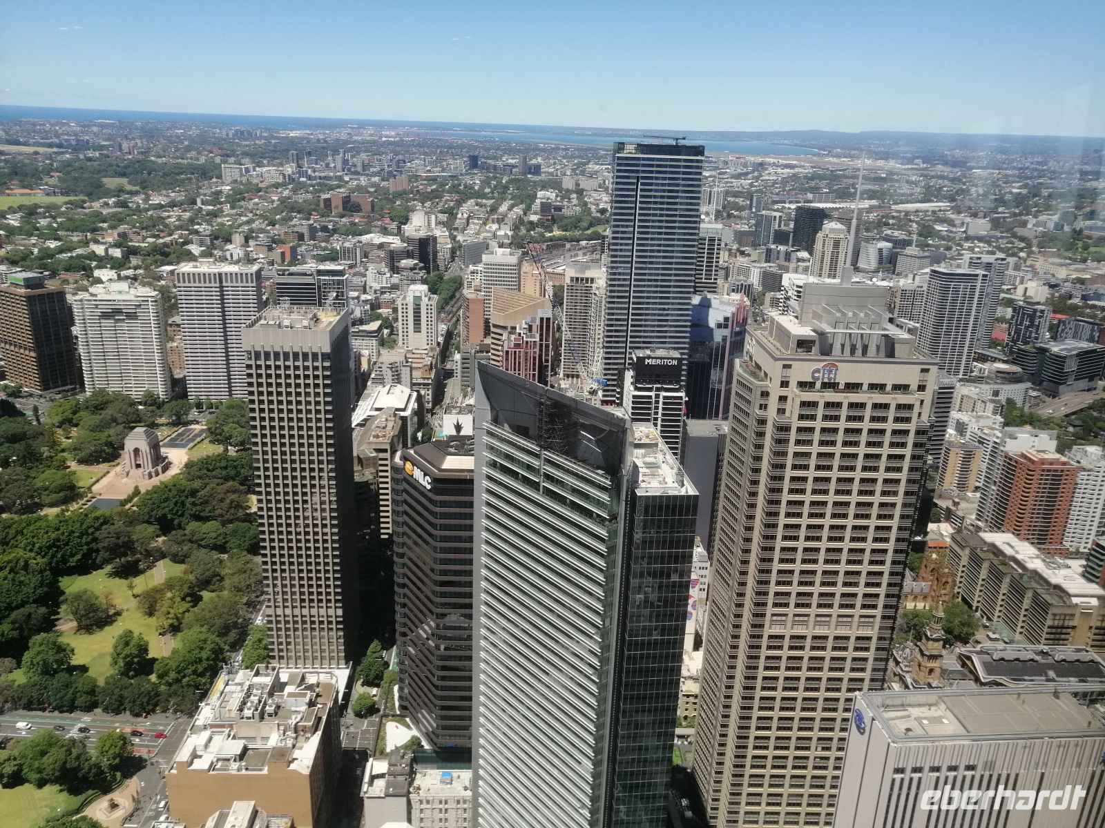 Der anschließende Blick vom Tower war schlicht überwältigend: bei strahlendem Wetter lag Sydney aus 250 Metern Höhe zu unseren Füßen, mit einem Panorama, das sich über die gesamte Metropole spannte! Der Turm selbst misst beeindruckende 309 Meter – ein echtes Highlight unserer Reise!