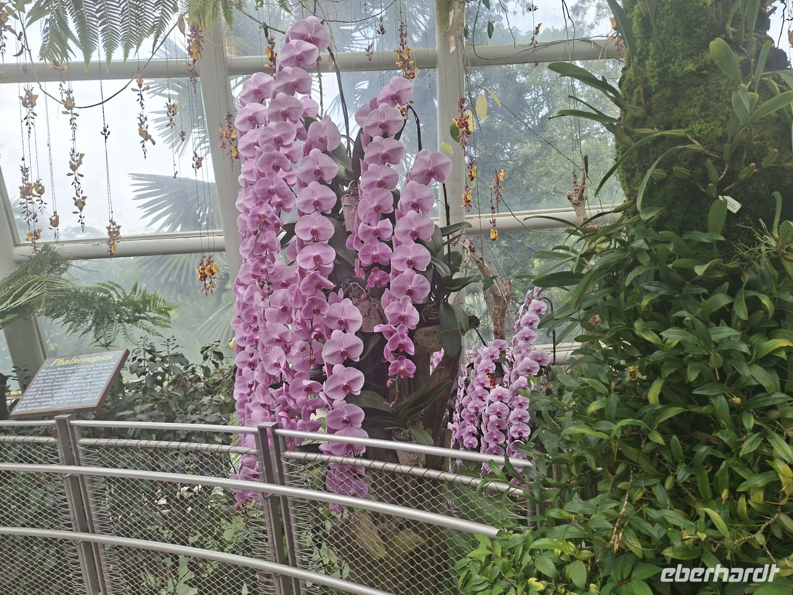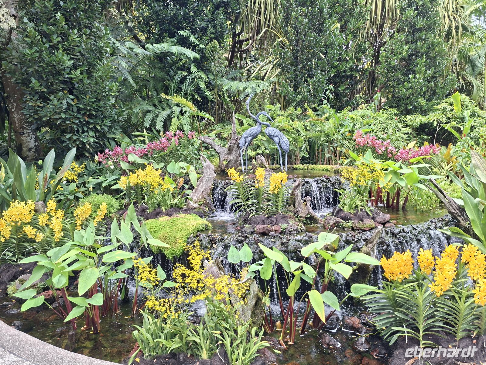 Um 13.30 Uhr fahren wir weiter zum „National Orchid Garden“, wo wir bei einem einstündigen Besuch die vielen verschiedenen Orchideen bewundern. Gegründet wurde dieser botanische Garten ursprünglich von den Engländern, die dort Gewürze und andere exotische Pflanzen anbauten. Heute führt man hier Orchideenzüchtungen durch und oft bekommen prominente Persönlichkeiten beim Besuch Singapurs „ihre eigene“ Orchidee geschenkt. So gibt es hier wohl bereits über 1000 verschiedene Orchideenarten.