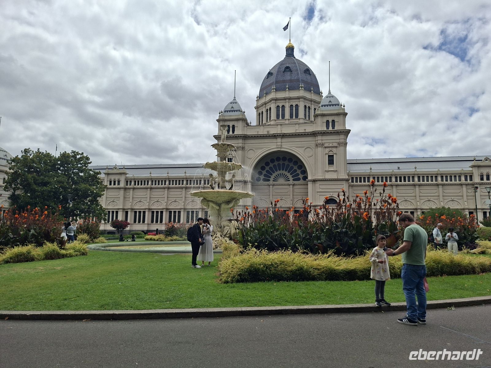 Schließlich stoppen wir am Royal Exhibition Building und finden viele Fotomotive im und um das imposante Gebäude. Die anschließende Weiterfahrt führt uns über die Queens Street zum Queen Victoria Market, wo wir erneut eine kleine Pause für Kaffee oder Lunch einlegen.