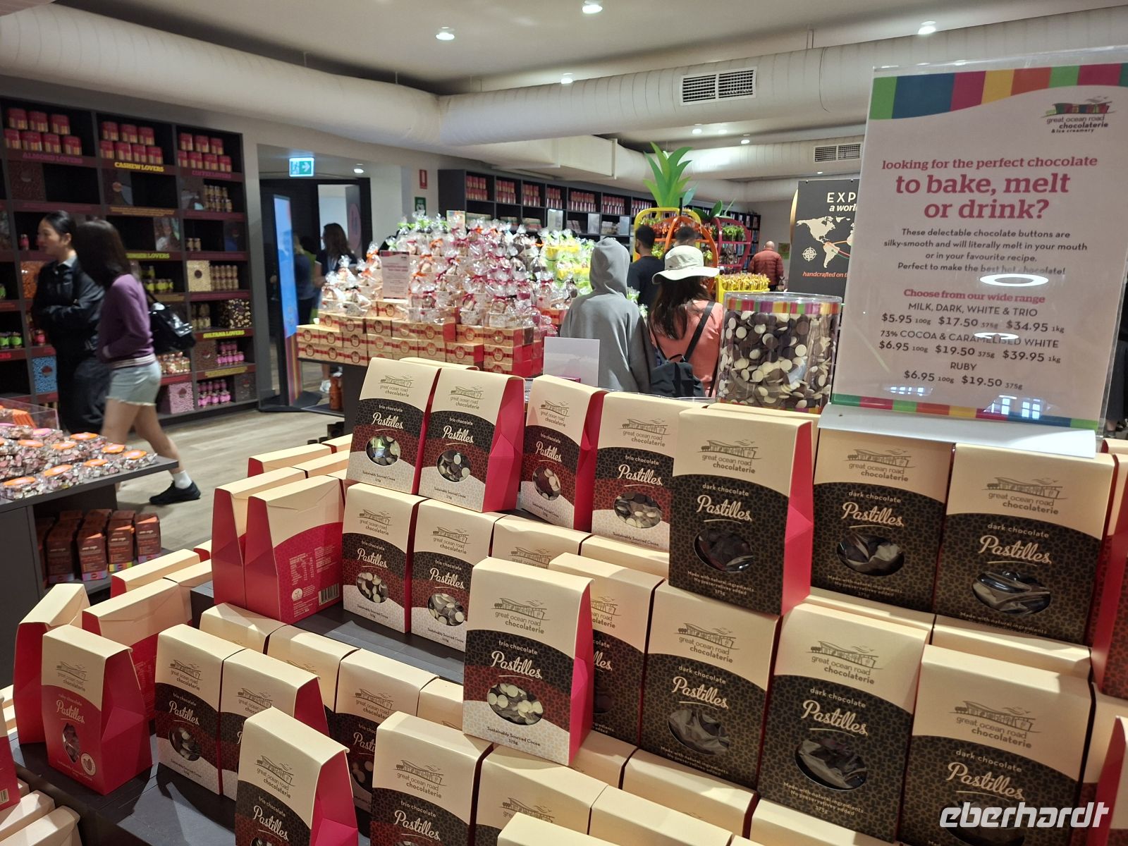 Anschließend bummeln wir individuell durch die Shops des Ortes. Kurz vor der Weiterfahrt lässt uns Liz die typisch australischen Schokokekse „TimTam“ probieren.