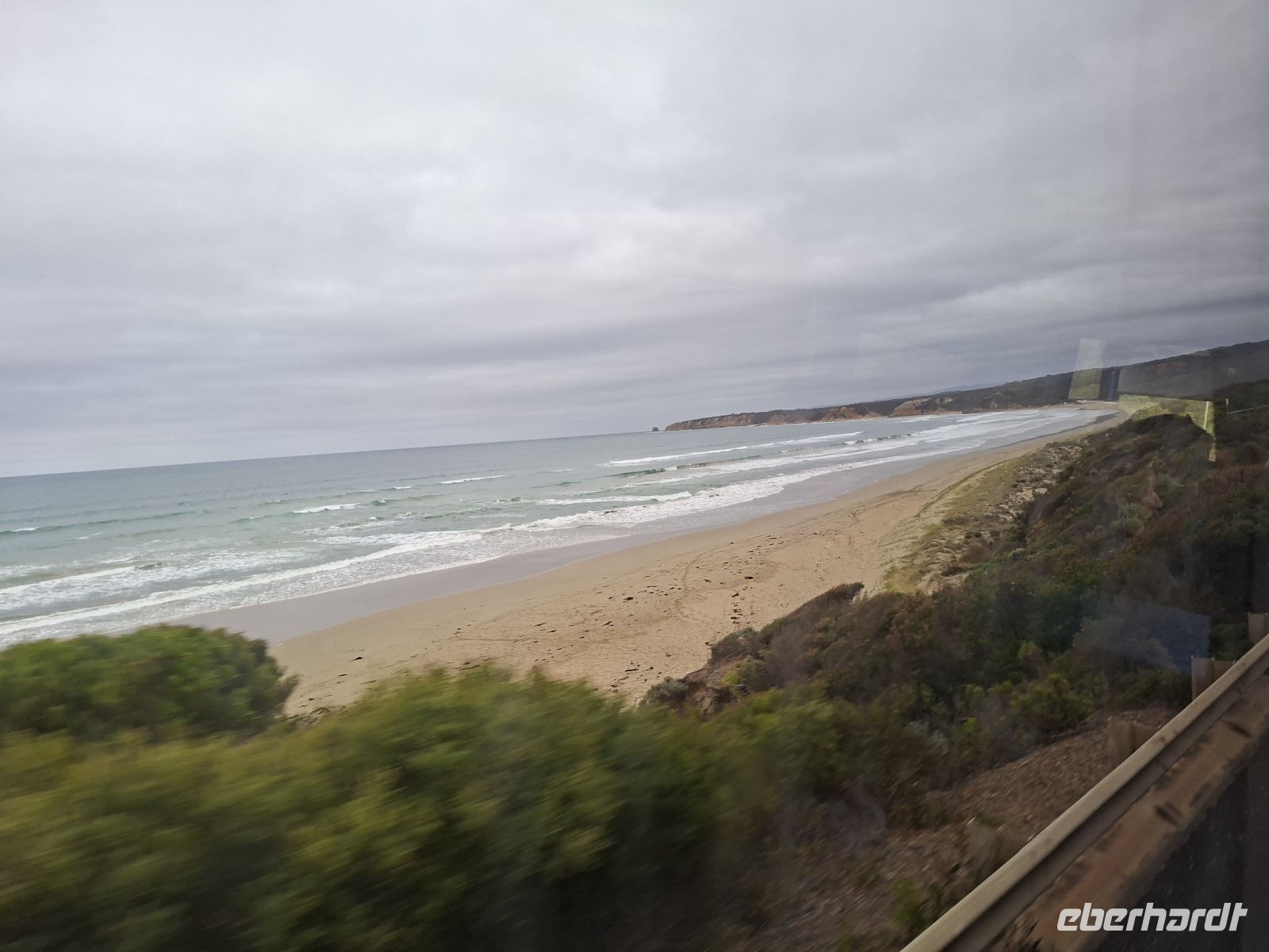 Einen nächsten Stopp legen wir an der Mündung des kleinen Flüsschens Campbelland River ein. Hier sorgte ein lokales Unwetter im Januar 2026 dafür, dass der Fluss in wenigen Stunden zur reißenden Flut wurde und hat zahlreiche Autos mit ins Meer gerissen. Noch heute versperren entwurzelte Bäume und viel Treibholz den Strand. Nach einer kurzen Fahrt stoppen wir noch einmal am Aussichtspunkt des Cape Patton. Endlich scheint die Sonne. Schließlich erreichen wir die Stadt Apollo Bay, wo wir am gleichnamigen Hotel stoppen und unser Mittagessen einnehmen.