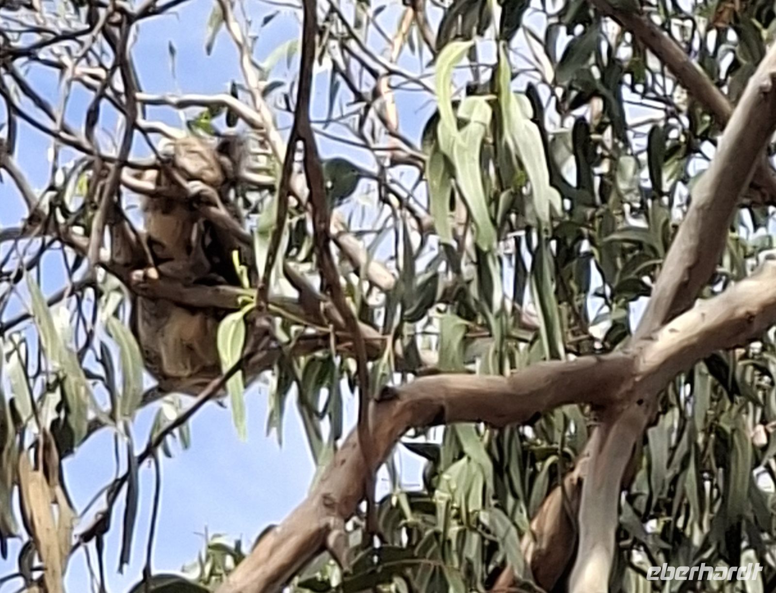 14.00 Uhr verlassen wir Apollo Bay und auch die Küstenstraße. Am Ortsausgang von Apollo Bay halten wir erneut auf einem Parkplatz an, denn Liz hat vom Fahrer erfahren, dass es da auf einem Eukalyptusbaum 2 Koalas zu sehen gibt. Diese possierlichen Tiere sind natürlich ein tolles Fotomotiv.