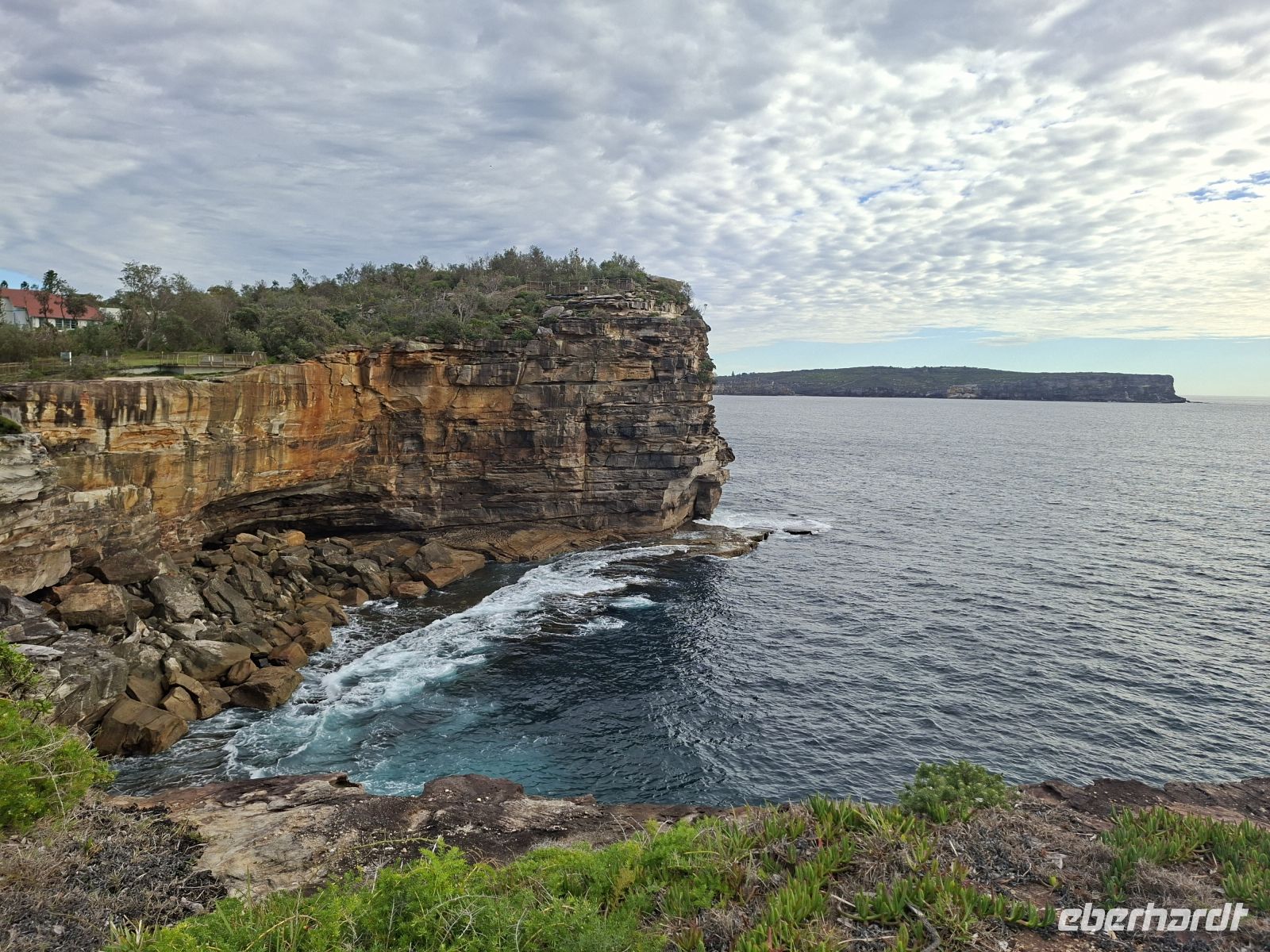 Nach dem Hotelfrühstück treffen wir uns mit unserer Reiseleiterin Margot. Mit dem Bus fahren wir zunächst in die Außenbezirke Sydneys. Für unseren ersten Stopp lässt uns unsere charmante Fahrerin Lilli in der Nähe der Watson Bay aussteigen. Gemeinsam spazieren wir nun etwas bergauf und erreichen einen Aussichtspunkt, von wo aus wir die natürliche Einfahrt in den weltberühmten Hafen von Sydney sehen können.