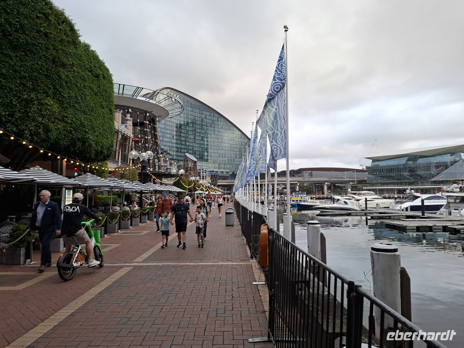 Unser heutiges Restaurant für das fakultative Abendessen befindet sich im Darling Harbour, einer angesagten Flaniermeile von Sydney. Wer nicht schon dort unterwegs war, geht mit mir um 18:30 Uhr zum Restaurant „Nick´s Seafood“, wo um 19 Uhr unser Dinner geplant ist. Auch im Anschluss haben wir noch genügend Zeit, um das Flair des Darling Harbour zu genießen, bevor wir wieder zum Novotel zurück gehen.