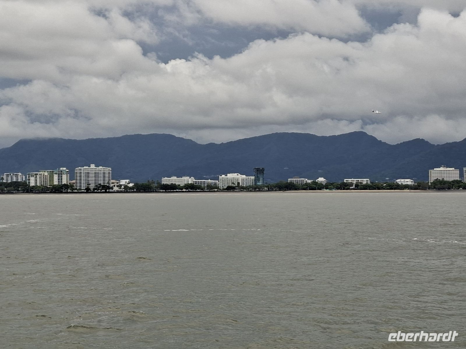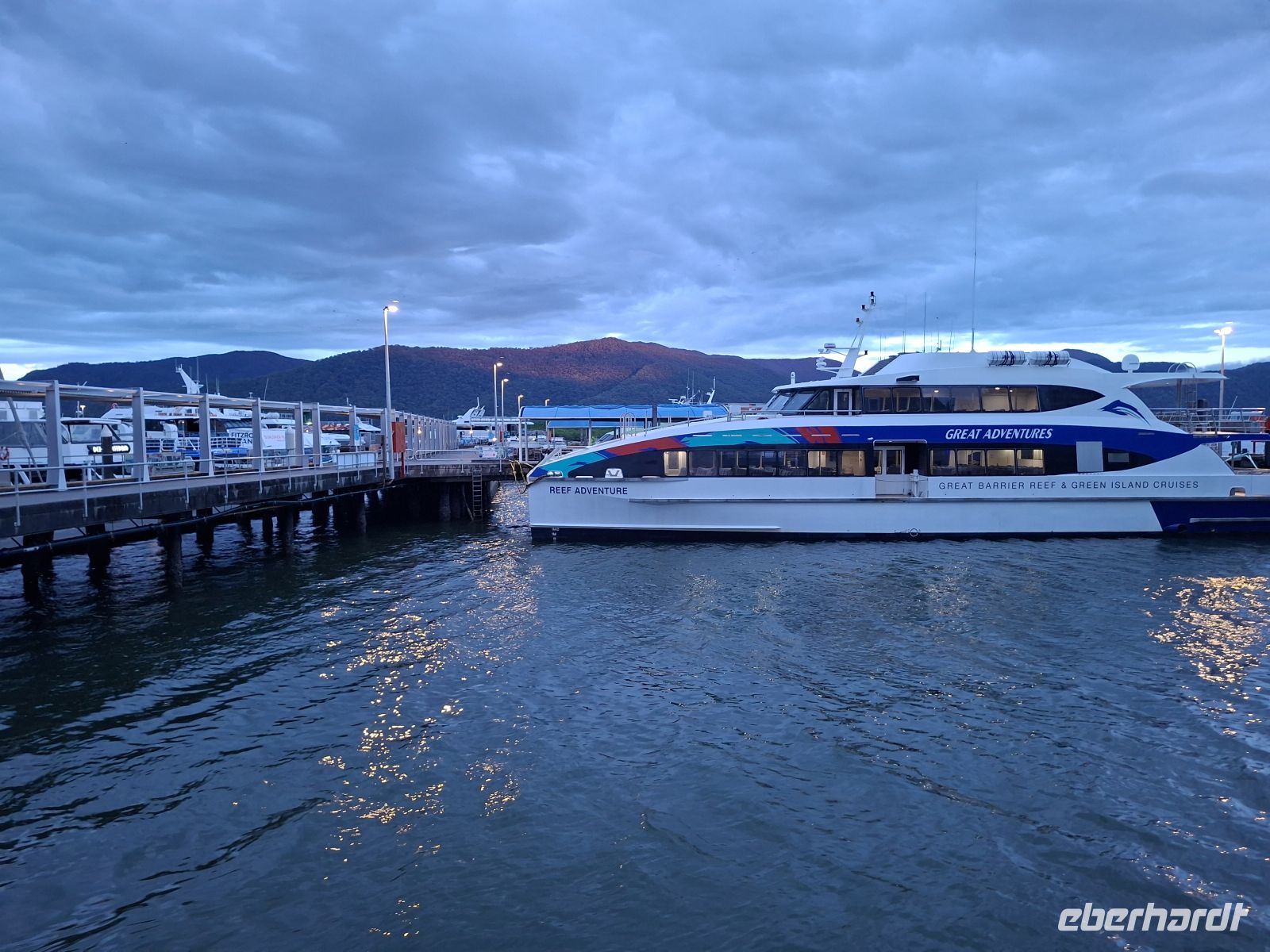 Um 17 Uhr legen wir wieder in Cairns an und verabschieden uns von der netten Crew. Ich glaube wir sind alle froh, dass wir diesen Tag nicht nur trocken, sondern sogar mit Sonnenschein erleben durften. Das sah am Morgen überhaupt nicht so aus.