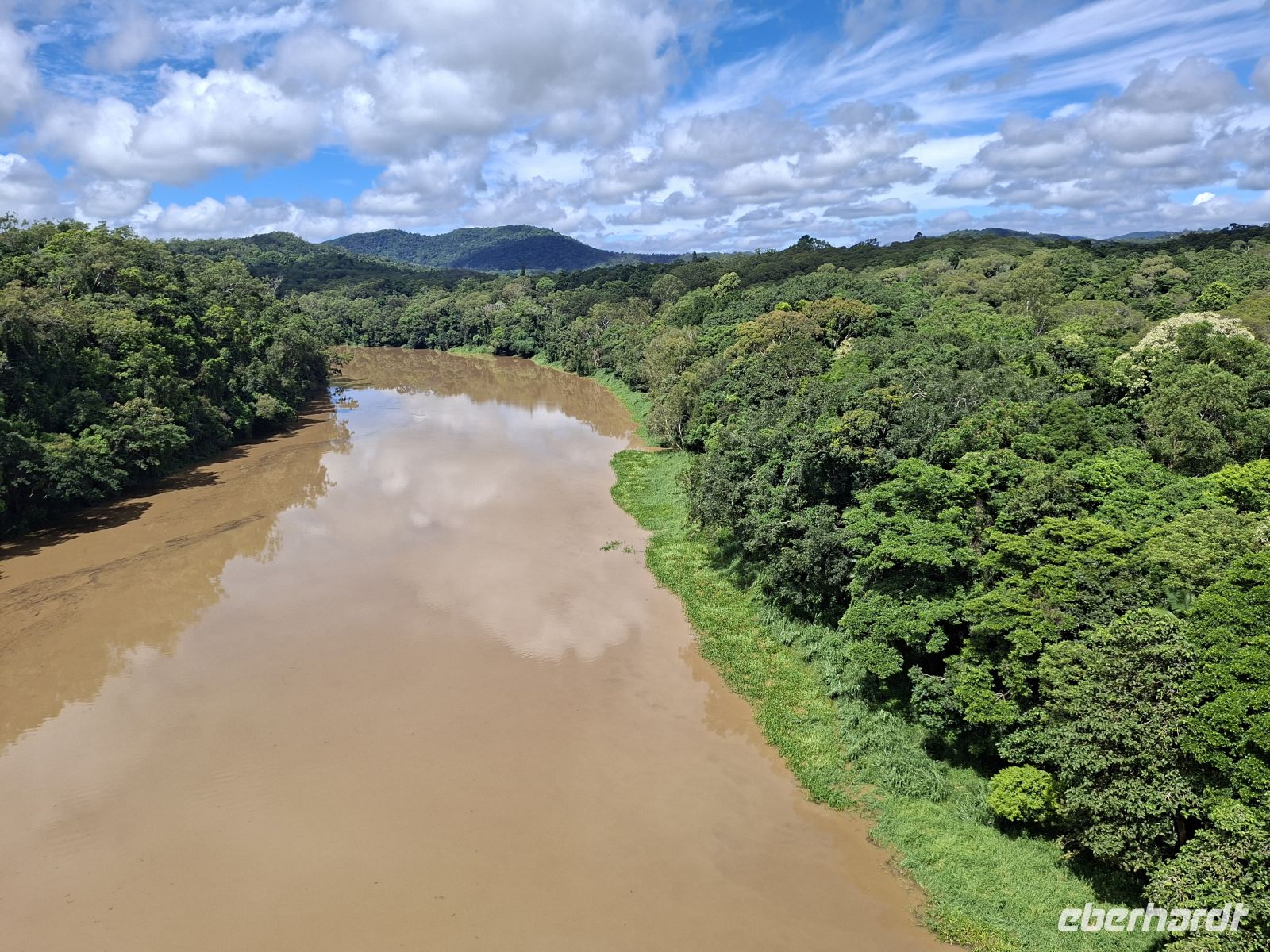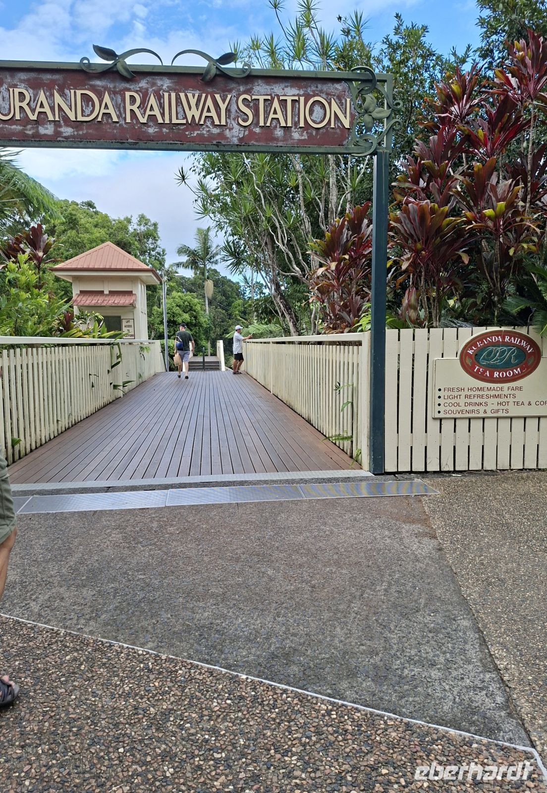 Weiter geht die Auffahrt zur 3. und letzten Station des Skyrail. Nun überqueren wir den wasserreichen Barron-River und erreichen die Stadt Kuranda. Bei einem kleinen Spaziergang durch den Ort vereinbaren wir unseren Treffpunkt am Bahnhof des Ortes und erkunden die Gegebenheiten für die nachmittags geplante Freizeit.