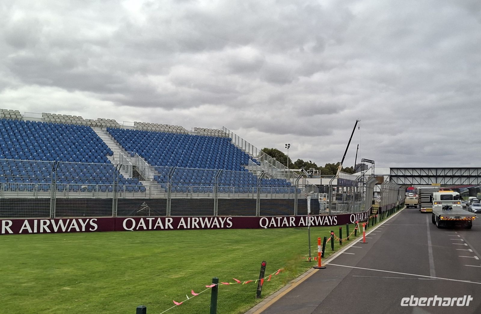 Um 12:00 Uhr treffen wir uns mit Liz und der Busfahrerin Fiona zur Stadtrundfahrt. Die Fahrt beginnt recht spektakulär, denn Fiona simuliert einen Start auf der Formel 1 Strecke im Albertpark, der wegen des bevorstehenden Rennens (06.03. – 08.03.2026) schon komplett vorbereitet ist.