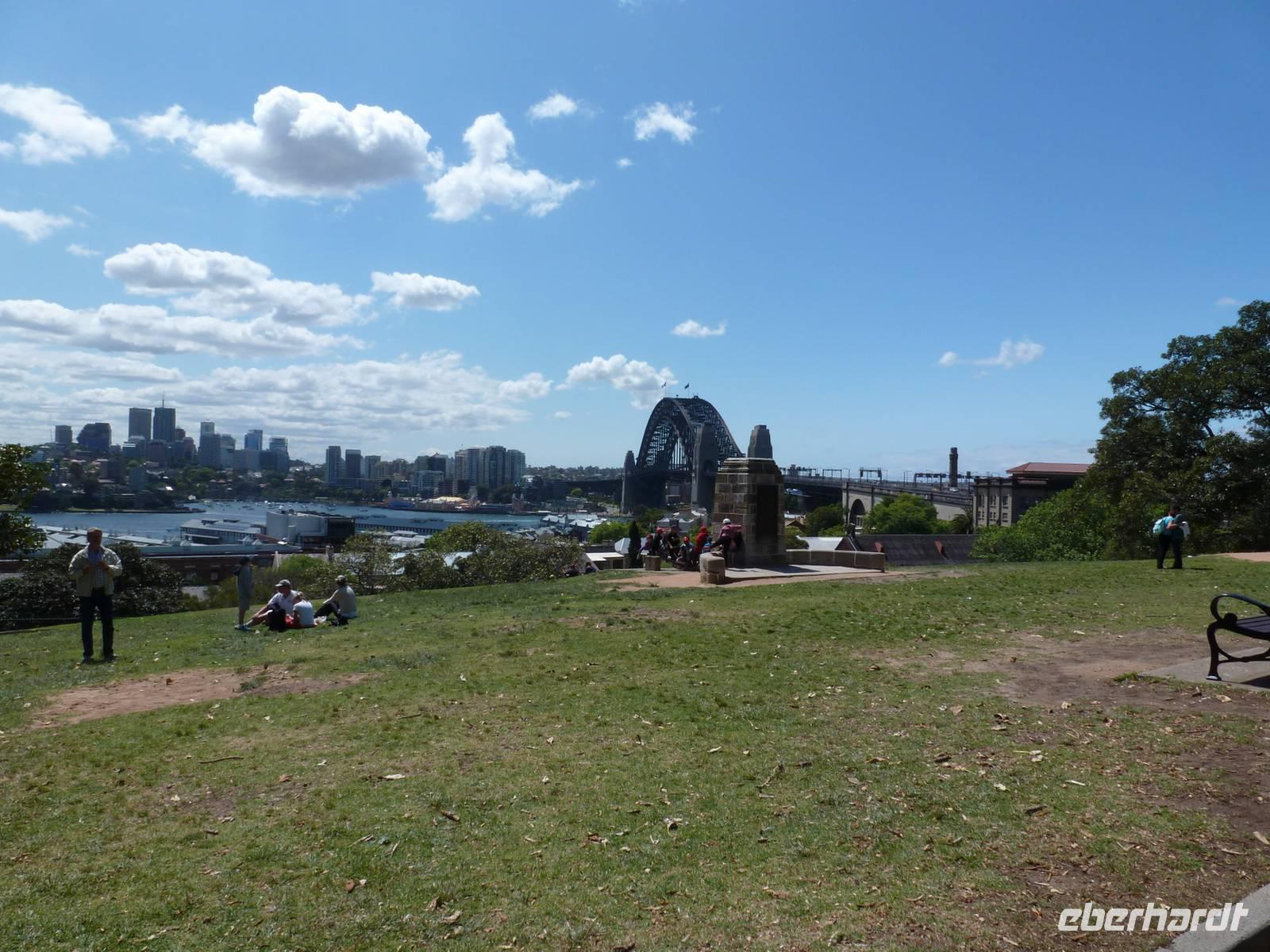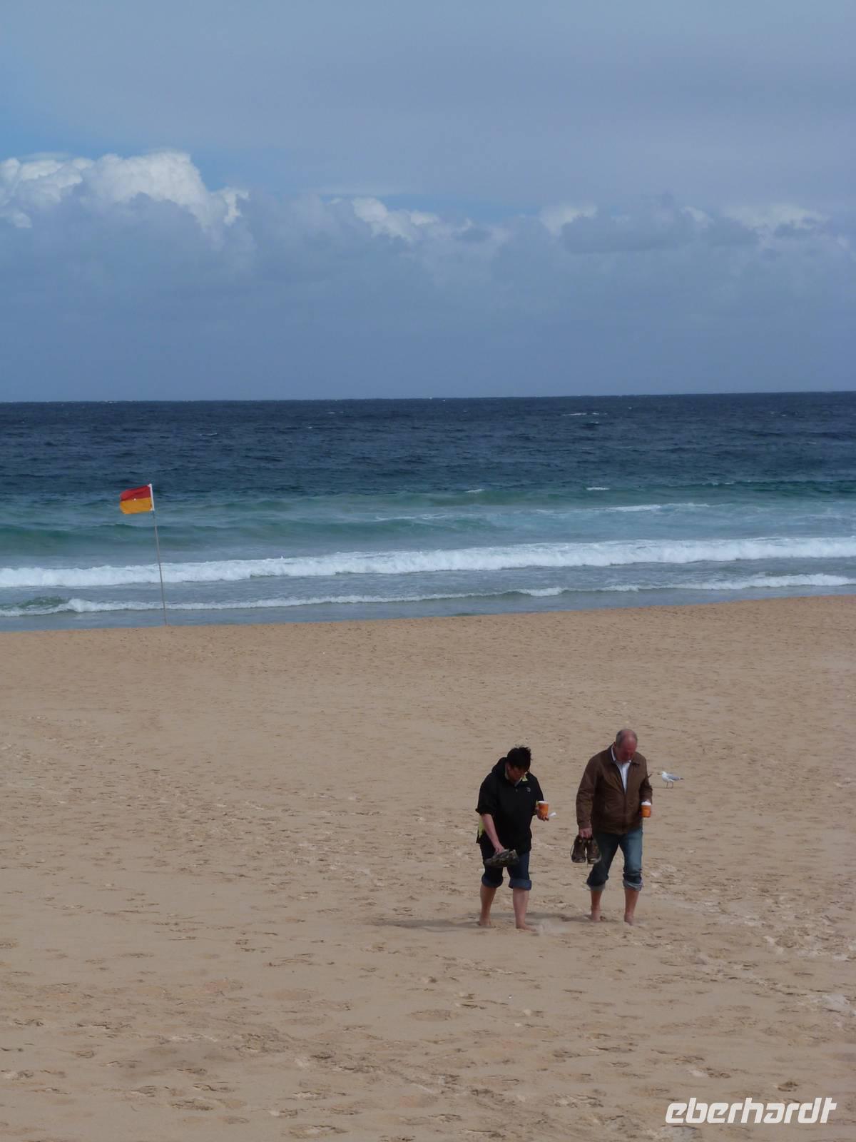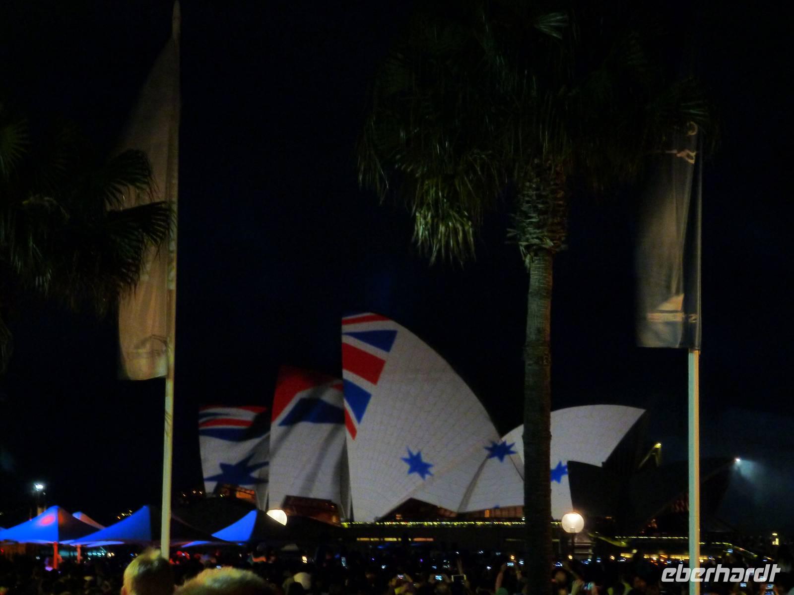 Heute verließen wir die Stadt und fuhren raus ins „Blaue"J. Die blauen Berge oder „Blue Mountains", welche wegen des Dunstes des Öls der vielen Eukalyptus Bäume so genannt werden, waren heut unser Ziel. Uli hatte einen tollen Tag geplant, die Sonne schien und einen großen, runden Geburtstag hatten wir auch dabei - es konnte also losgehen. Nach unserem Geburtstagsständchen fuhren wir vorbei am Olympiagelände von Sydney in den Wildpark „Featherdale". Dort besuchten wir Kängurus, Koalas, tasmanische Teufel, Wombats, Schlangen und Krokodile - unsere ersten Begegnungen mit der australischen Tierwelt. Weiter ging es nach Katoomba, wo wir zu einem „Spezialaussichtspunkt" spazierten um die Felsformationen der drei Schwestern zu bestaunen. Bei tollstem Sonnenschein hatten wir einen ganz tollen Ausblick. Nun war es schon Mittag und wir fuhren ins „Mountain Heritage Hotel" zum Mittagessen. In diesem traditionellen Hotel mit Restaurant ließen wir uns ein sehr gutes Essen schmecken und genossen die Atmosphäre und den tollen Ausblick. Danach sind wir durch den kleinen Ort Leura spaziert und haben die tollen Gärten, das Lolligeschäft oder den Weihnachtsladen entdeckt. Schließlich ist Uli mit uns zu ihrem „Spezialtipp" gefahren und wir sind einen schönen Weg entlang spaziert, von welchem aus wir einen tollen Blick auf die drei Schwestern und die endlos wirkenden Eukalyptuswälder der Blue Mountains hatten. Jetzt machten wir es uns in einem Park gemütlich und feierten bei Kuchen und typisch australischem Wein aus dem Pappkarton Jürgen sein Geburstag! Nun war es schon Nachmittag und wir fuhren begleitet von einem tollen Film über die australische Tierwelt zurück nach Sydney. Am Abend war Ausnahmezustand in Sydney, denn ein gigantisches Feuerwerk im Hafen war anlässlich des Hafengeburtstages geplant. Marineschiffe aus der ganzen Welt sind eingelaufen, um die australische Navi zu ehren. Und so sind wir ganz gespannt Richtung Hafen gelaufen und haben uns alle ein schönes Plätzchen gesucht, von wo aus wir das Feuerwerk bestaunen konnten. Und es war genial, das Opernhaus und die Brücke wurden mit einer Multimediashow über die Geschichte der australischen Marine angestrahlt und passend dazu das Feuerwerk! 2 Millionen Menschen waren wohl in der Stadt und unsere Eberhardt Gäste mittendrin! Das war ein unvergessliches Erlebnis am Samstagabend in Sydney!