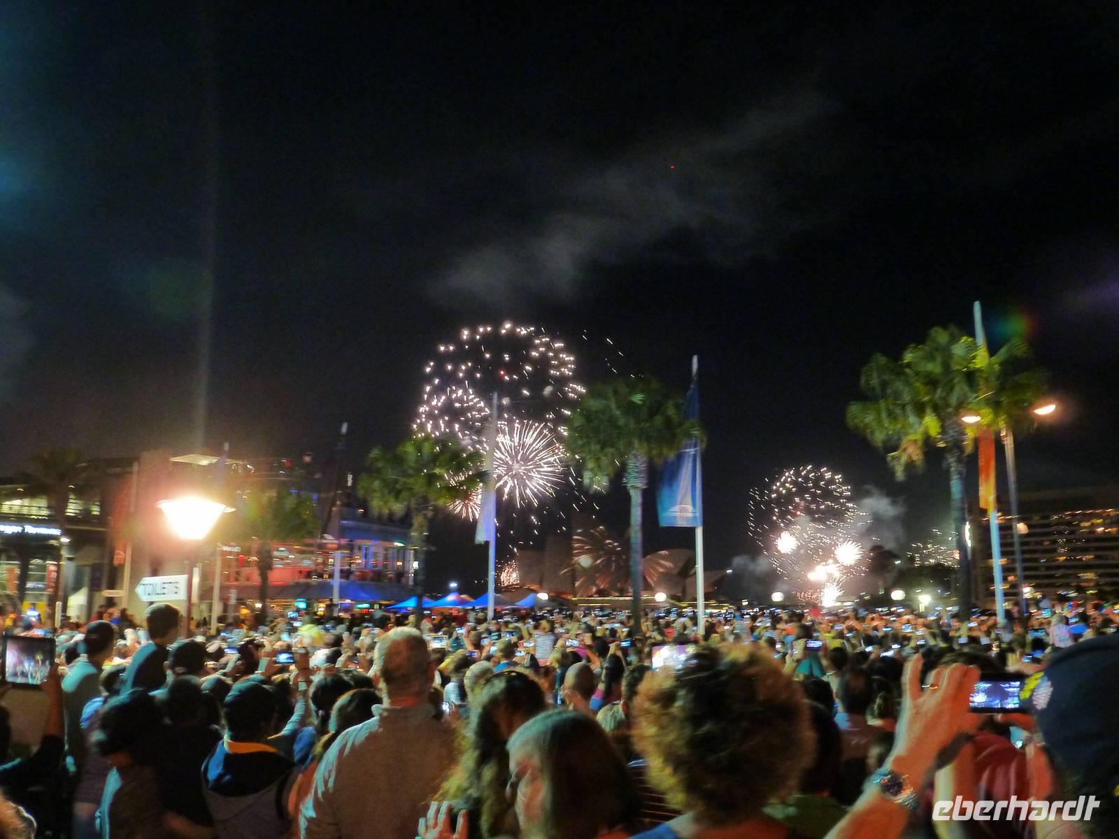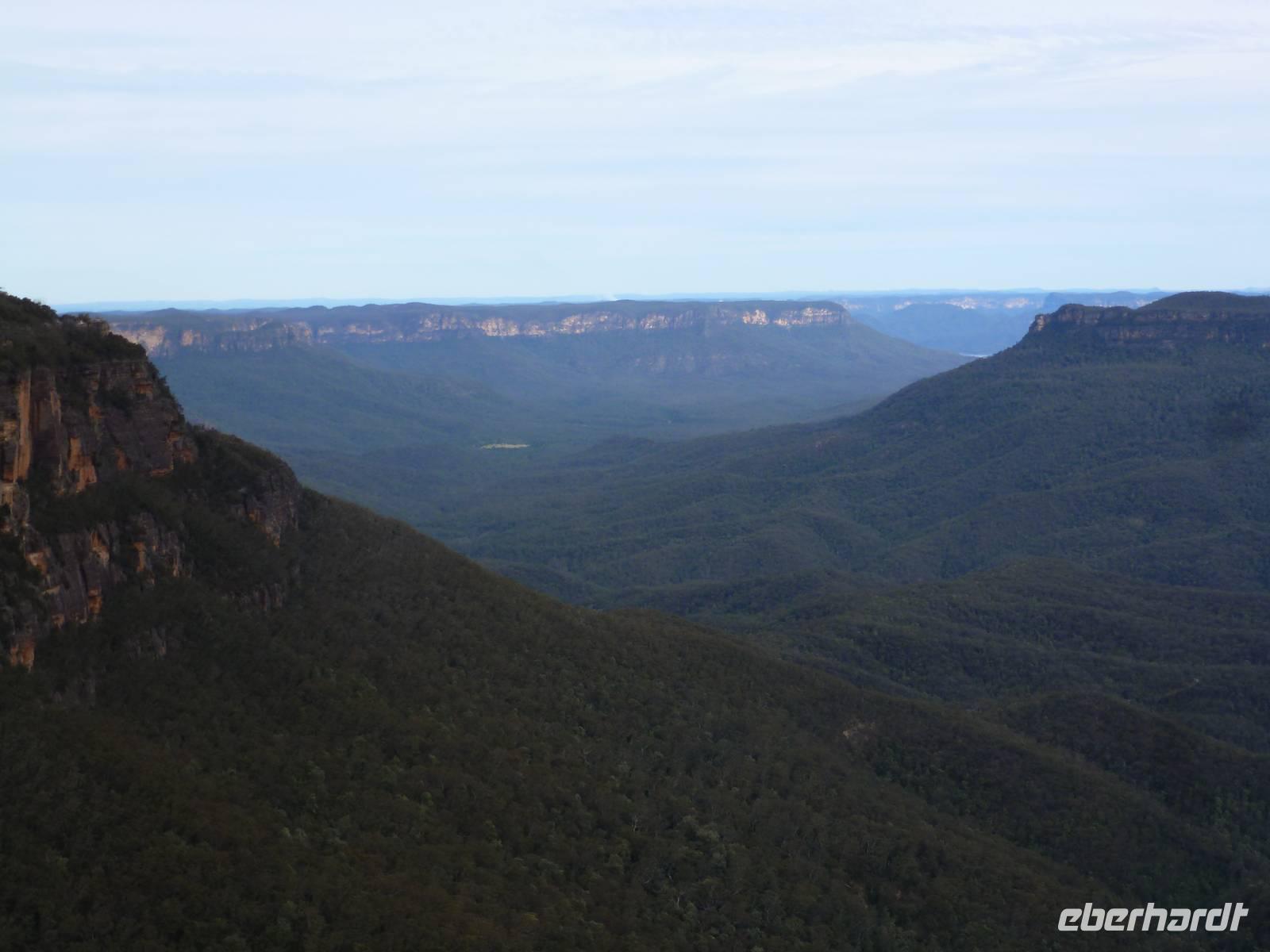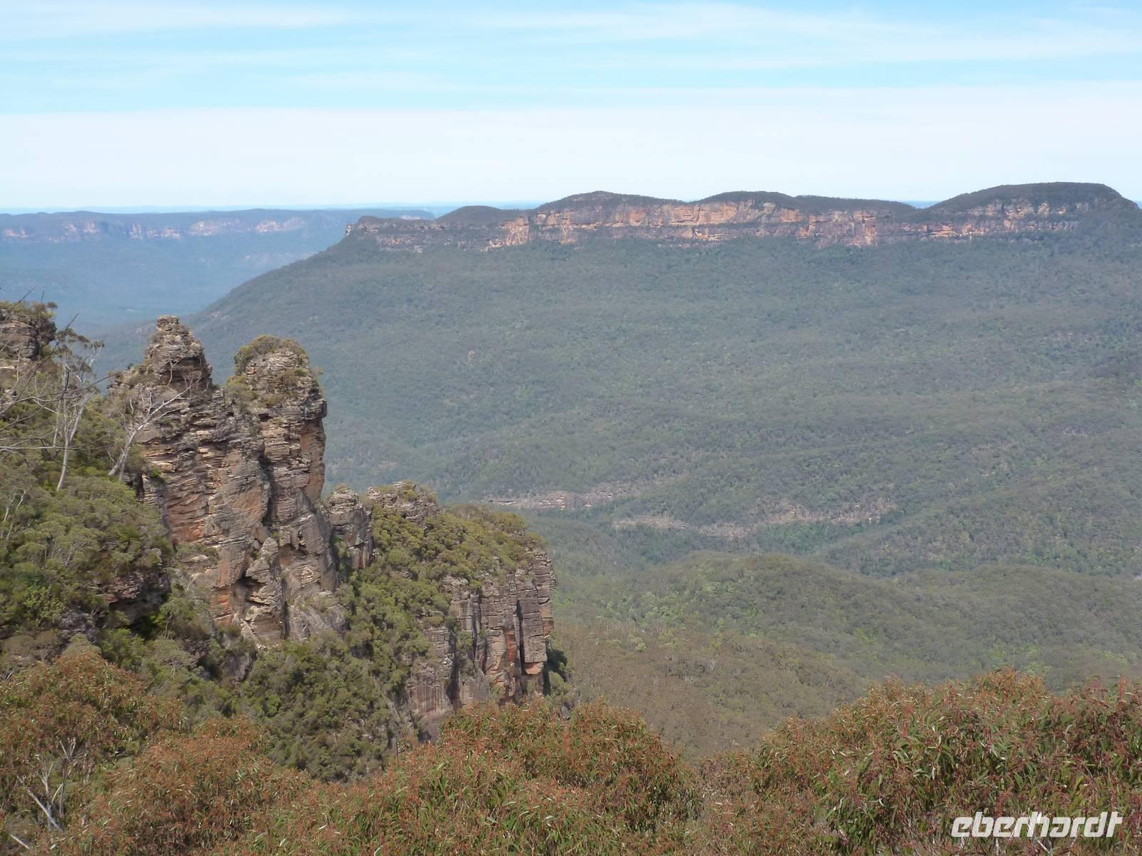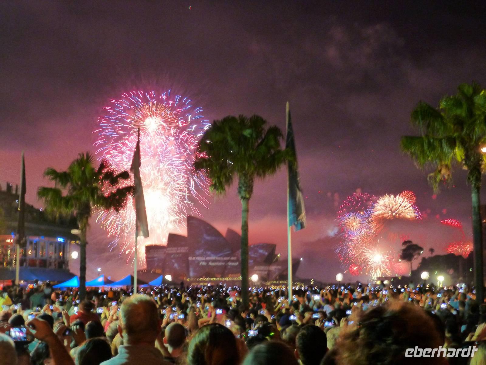Heute verließen wir die Stadt und fuhren raus ins „Blaue"J. Die blauen Berge oder „Blue Mountains", welche wegen des Dunstes des Öls der vielen Eukalyptus Bäume so genannt werden, waren heut unser Ziel. Uli hatte einen tollen Tag geplant, die Sonne schien und einen großen, runden Geburtstag hatten wir auch dabei - es konnte also losgehen. Nach unserem Geburtstagsständchen fuhren wir vorbei am Olympiagelände von Sydney in den Wildpark „Featherdale". Dort besuchten wir Kängurus, Koalas, tasmanische Teufel, Wombats, Schlangen und Krokodile - unsere ersten Begegnungen mit der australischen Tierwelt. Weiter ging es nach Katoomba, wo wir zu einem „Spezialaussichtspunkt" spazierten um die Felsformationen der drei Schwestern zu bestaunen. Bei tollstem Sonnenschein hatten wir einen ganz tollen Ausblick. Nun war es schon Mittag und wir fuhren ins „Mountain Heritage Hotel" zum Mittagessen. In diesem traditionellen Hotel mit Restaurant ließen wir uns ein sehr gutes Essen schmecken und genossen die Atmosphäre und den tollen Ausblick. Danach sind wir durch den kleinen Ort Leura spaziert und haben die tollen Gärten, das Lolligeschäft oder den Weihnachtsladen entdeckt. Schließlich ist Uli mit uns zu ihrem „Spezialtipp" gefahren und wir sind einen schönen Weg entlang spaziert, von welchem aus wir einen tollen Blick auf die drei Schwestern und die endlos wirkenden Eukalyptuswälder der Blue Mountains hatten. Jetzt machten wir es uns in einem Park gemütlich und feierten bei Kuchen und typisch australischem Wein aus dem Pappkarton Jürgen sein Geburstag! Nun war es schon Nachmittag und wir fuhren begleitet von einem tollen Film über die australische Tierwelt zurück nach Sydney. Am Abend war Ausnahmezustand in Sydney, denn ein gigantisches Feuerwerk im Hafen war anlässlich des Hafengeburtstages geplant. Marineschiffe aus der ganzen Welt sind eingelaufen, um die australische Navi zu ehren. Und so sind wir ganz gespannt Richtung Hafen gelaufen und haben uns alle ein schönes Plätzchen gesucht, von wo aus wir das Feuerwerk bestaunen konnten. Und es war genial, das Opernhaus und die Brücke wurden mit einer Multimediashow über die Geschichte der australischen Marine angestrahlt und passend dazu das Feuerwerk! 2 Millionen Menschen waren wohl in der Stadt und unsere Eberhardt Gäste mittendrin! Das war ein unvergessliches Erlebnis am Samstagabend in Sydney!
