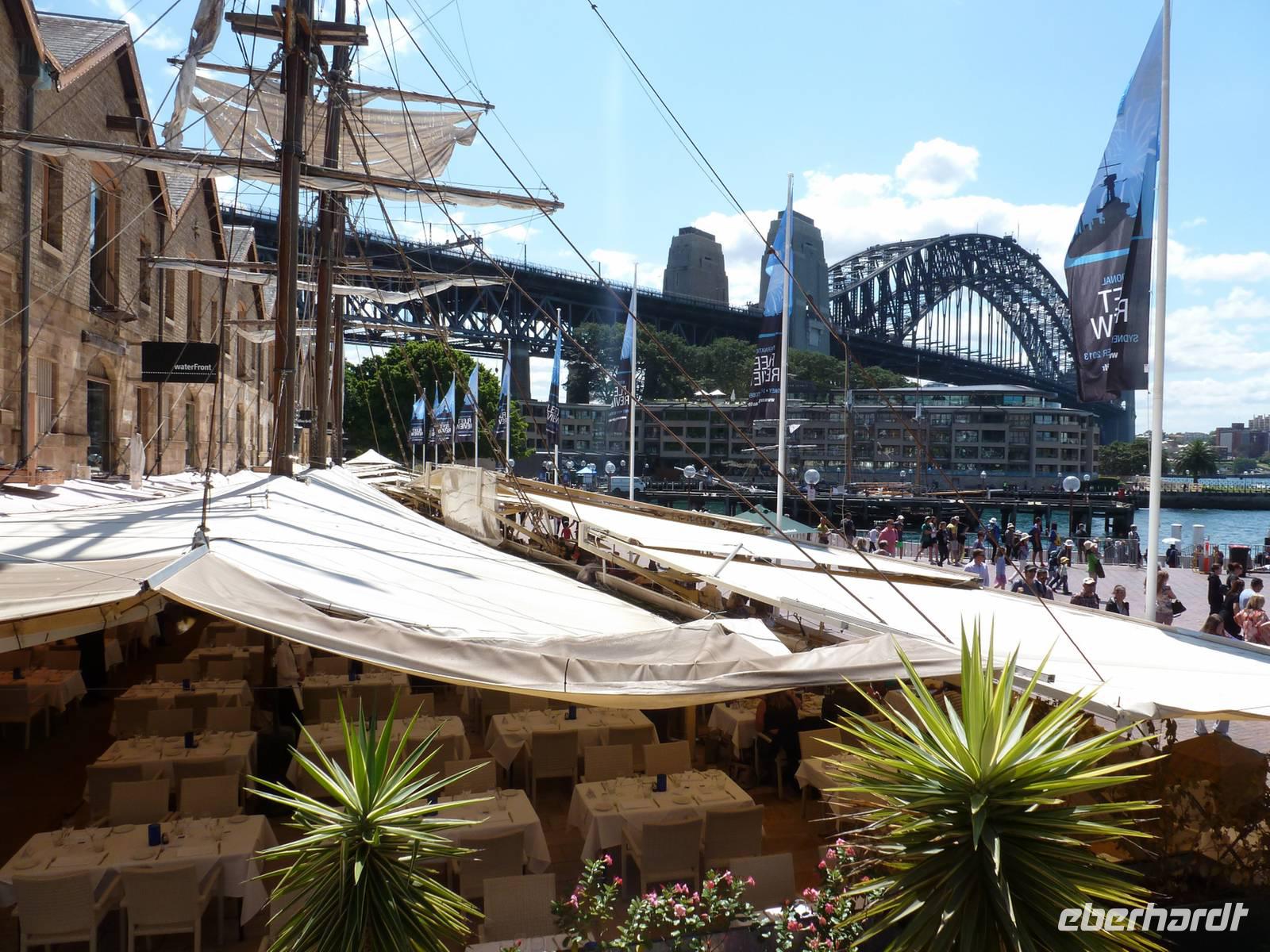 Heute haben wir nach einem Vormittag zur freien Verfügung die Stadt gemeinsam zu Fuß entdeckt. Uli ist mit uns durch das älteste Stadtviertel, „The Rocks" in der Nähe des Hafens spaziert. Wir haben enge Gassen, alte Häuser und urige Pubs entdeckt, bevor wir zum Opernhaus gelaufen sind. Bei einer exklusiven Führung hat uns Gabi dieses einzigartige Gebäude, welches in diesem Jahr sein 40-jähriges Jubiläum feiert, gezeigt. Wir haben den Dramatheater, den Konzertsaal und den Opernsaal gesehen. Die Geschichte seines Baues wurde uns auch ganz toll erklärt. Weiter ging es zum Circular Quay, der großen Schiff - und Fähranlegestelle, wo wir mit einem Katamaran durch den Hafen von Sydney gefahren sind. Bei tollstem Sonnenschein haben wir vom Sonnendeck aus die Hafenbrücke, das Opernhaus und die vielen Kriegsschiffe bestaunt, welche aus Anlass des „Fleet Review", des 100. Geburtstag des Hafens aus aller Welt nach Sydney zu Besuch gekommen sind. Es war nämlich an diesem Wochenende eines der größten Feste in Sydney und wir waren dabei! Nach der Katamaranfahrt spazierten alle durch die Straßen von Sydney, bevor wir uns am Abend zu einem tollen Abendessen im Restaurant Waterfront mit Blick auf die Oper und die Hafenbrücke wiedertrafen. Es ist ein ausgezeichnetes Restaurant und wir genossen französische Zwiebelsuppe, sehr guten Baramundi Fisch und leckeren Kuchen. Später sind wir die George Straße zurück zum Hotel spaziert und sind glücklich und zufrieden ins Bett gefallen.