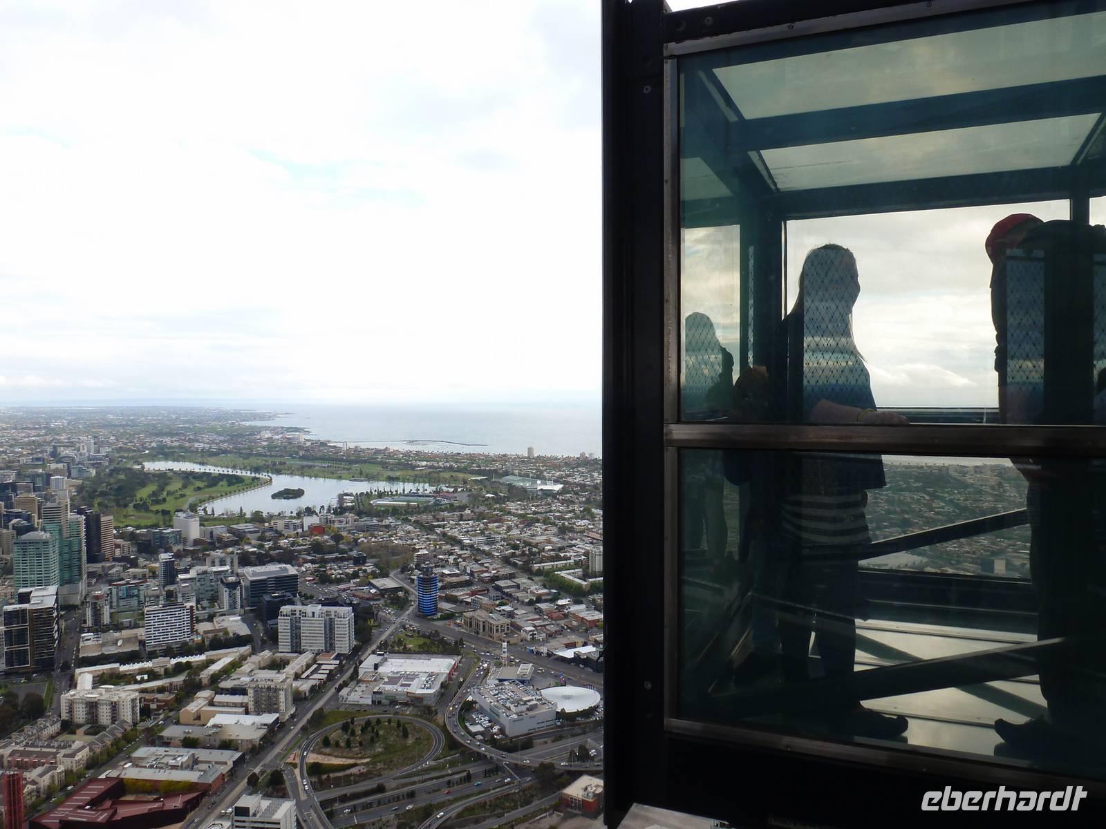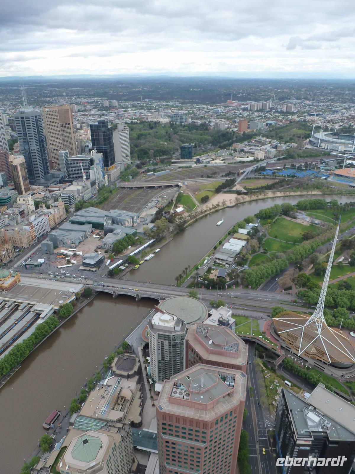 Nachdem wir die Uhren letzte Nacht auf Sommerzeit umgestellt haben, setzten wir heute unsere Reise fort: Uli und Max fuhren uns nach dem Frühstück zum Flughafen. Uli war so lieb und überreichte uns eine DVD, welche ihr Mann Bernd gestern Abend vom Feuerwerk aus dem Fernsehen aufgenommen und für uns gebrannt hat. Ein tolles Geschenk! Nun hieß es Abschied nehmen und wir sagten Bye Bye zu der lieben Uli, checkten ganz unproblematisch ein und flogen mit der „Virgin australia" 1,5 Stunden nach Melbourne! Dort angekommen begrüßte uns Ina Becker, eine Reiseleiterin die seit 13 Jahren in Melbourne lebt und uns die nächsten 3 Tage durch ihre Wahlheimat führen wird. Wir fuhren durch das Standviertel der Hauptstadt Victorias, St. Kilda. Weiter ging es mitten auf die Rennstrecke der Formel 1 - unsere Gäste waren begeistert, über die Strecke und vorbei an den Boxenstopps zu laufen. Weiter ging es zum botanischen Garten, wo wir in einem kleinen Café einen kleinen aber feinen Mittagssnack zu uns nahmen. Danach bestiegen wir die Aussichtsterrasse des Gebäudes des Kriegserinnerungsdenkmals „Shrine of Rememberence" , von wo aus wir eine tolle Sicht auf die Skyline Melbournes hatten. Weiter ging es mit dem Bus und dem netten Buschauffeur Brandon durch die Innenstadt, vorbei am Parlament und weiteren tollen Sehenswürdigkeiten bis zu den Arkaden. Durch diese spazierten wir zu Fuß und bestaunten die Kaffeekultur der Australier - draußen vorm Café zu sitzen ist „In". Ja und dann fuhren wir in unser Hotel Travelodge, welches genau neben dem Eureka Turm und am Fluß Yarra gelegen ist. Nach dem problemlosen Check In trafen wir uns „freizeitmäßig" wieder und machten uns auf zum nächsten Abenteuer: wir fuhren in die 88. Etage des Eureka Turms und genossen einen wunderbaren Ausblick auf die Stadt und die Bucht...traumhaft! Einige sind nachher noch mit ins Beer Brazz zum Abendessen gekommen und so hatten wir alle einen schönen Abend in Melbourne.