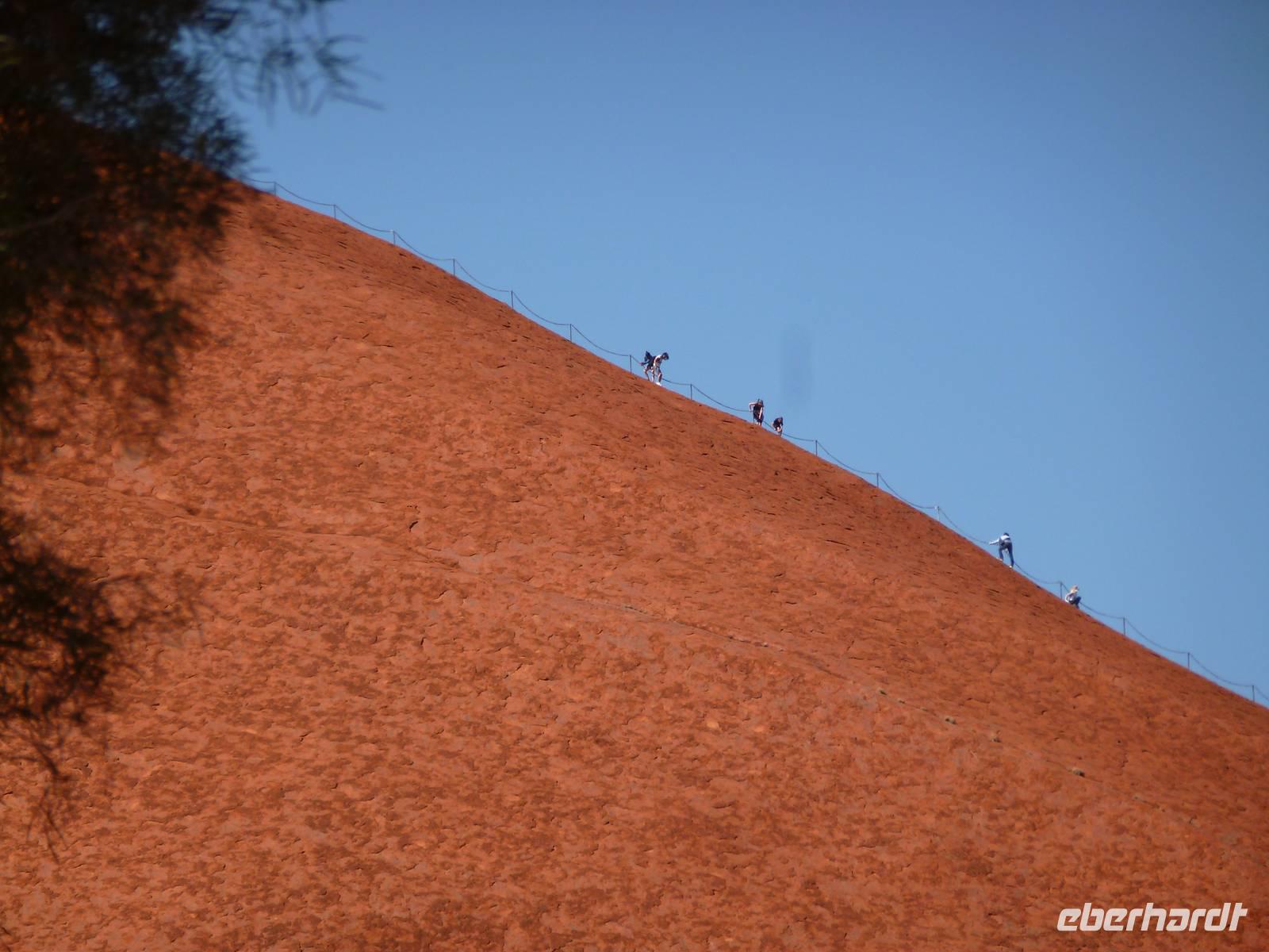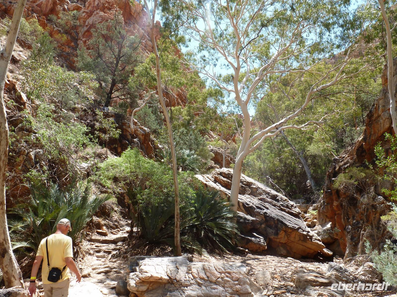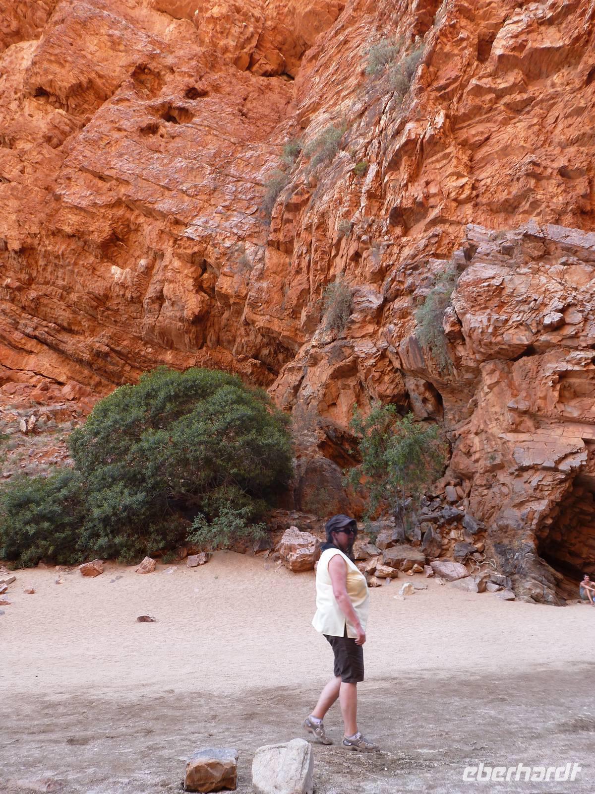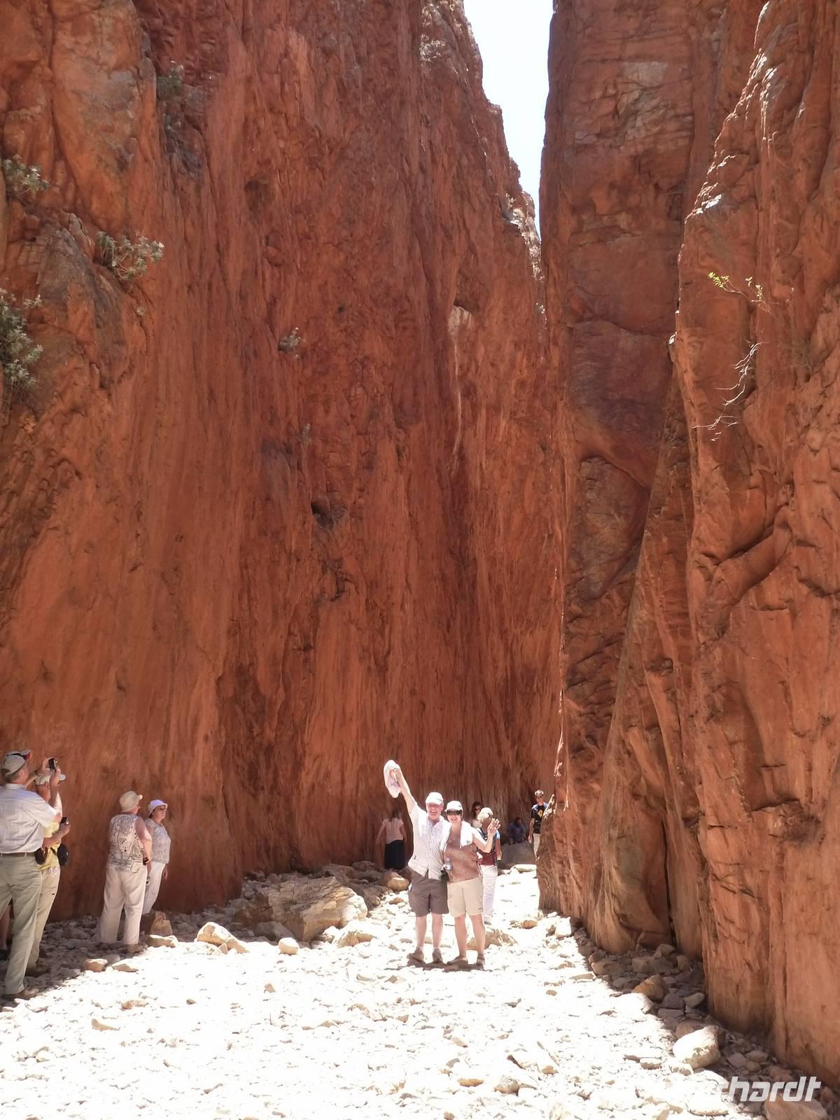 Das Gebiet um Alice Springs mit seinen Gebirgszügen, seiner einzigartigen Flora&Fauna und seiner Tierwelt stand heute auf dem Programm. Früh fuhren wir mit Marcel in den Desert Park ganz in der Nähe der Stadt. Wir waren erstaunt, wie viel Leben es hier draußen in der Wüste gibt. In diesem tollen Park sahen wir die Tiere & Pflanzen des Outbacks: bunte Vögel, Kängurus, Schlangen, Spinnen, Buschratten sowie grüne Bäume und Sträucher, Buschkokosnüsse und Spinifix. Es war echt interessant und die zwei Stunden vergingen wie im Flug. Nachdem wir noch einen Film über das hiesige Leben aus Sicht der Ureinwohner und der Weißen gesehen haben fuhren wir weiter in die Mac Donald Ranges. Ein über 200km langer Gebirgszug aus rotem Sandstein mit tollen Schluchten und Spalten. Unser erster Stopp war die Felsspalte Standley Chasm, wo wir einen wunderschönen Spaziergang hinein in die Spalte unternahmen - es war wunderschön und als wir wieder rauskamen, erwartete uns ein typisch australisches Barbeque - Hühnchenspieße, Bratwürste und Beefsteaks mit tollen Salaten und hausgemachtem Brot..hmmmm! Weiter ging es zur romantischen Simpsons Gap, einer natürliche Lücke im Gebirgszug. Wir spazierten 10 Minuten bis hinter und dort sahen wir bei der langsam tiefer stehenden Sonne die kleinen Fels Wallabies - das sind kleine Kängurus, welche hier in den Felshöhlen leben. Und die Gap an sich ist auch wunderschön, hohe rote Felswände, ockerfarbener Sandboden und blaues Wasser... Schließlich spazierten wir zurück und fuhren zurück nach Alice Springs. Wir besuchten noch die alte Telegraphenstation, aus welcher die Stadt ab 1871 erwuchs.. Ja und den Abend haben einige Gäste auf eigene Faust in der Stadt, gemütlich im Zimmer oder im Pub Bojangles mit gutem Essen&Bier ausklingen lassen...