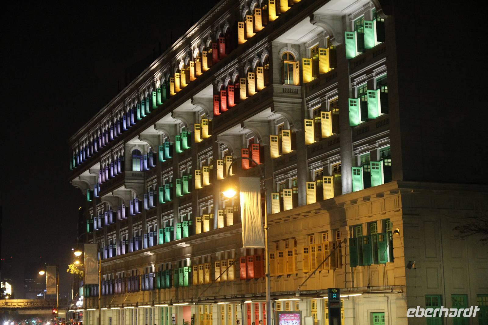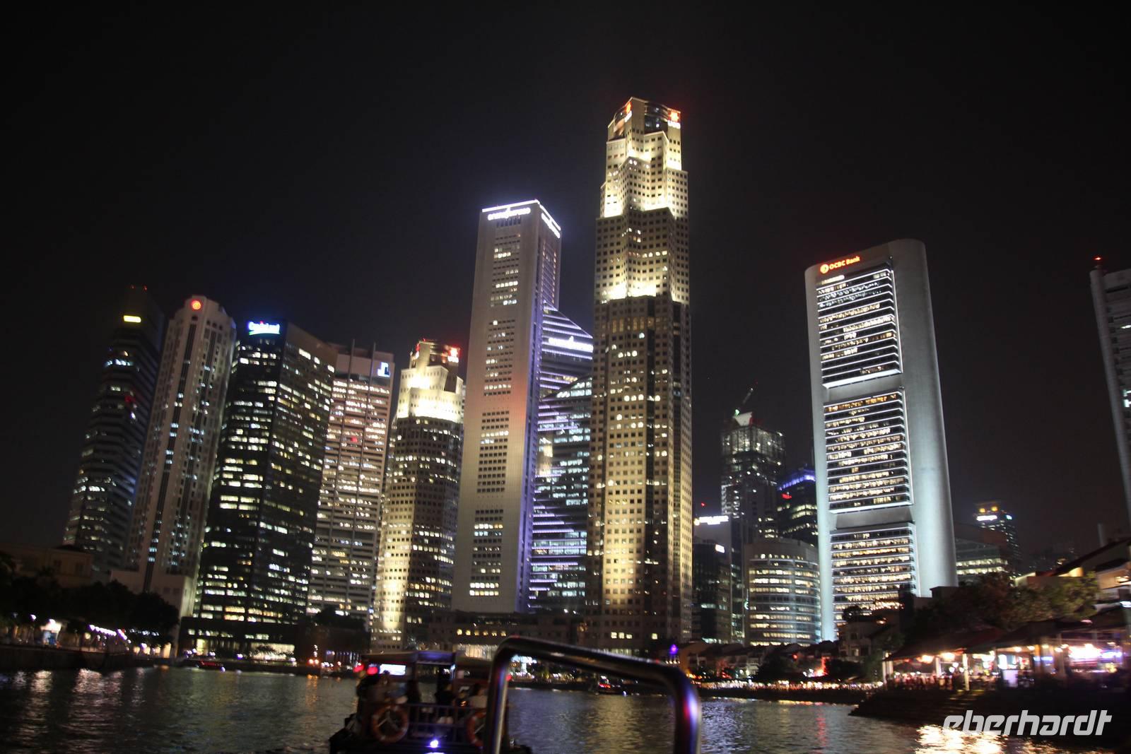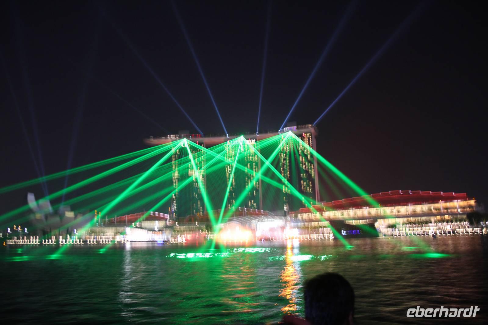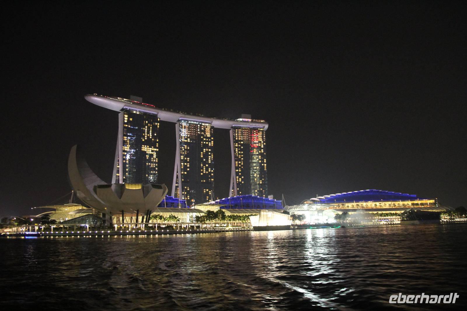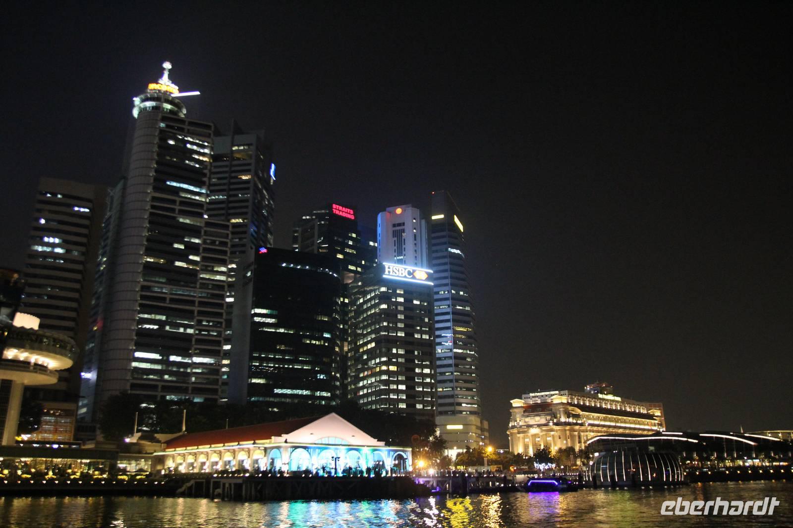 Durch die Zeitverschiebung landeten wir dann erst am Nachmittag des Folgetages auf dem Changi Airport in Singapur. Einen Tag hatten wir nun Zeit für unsere Erlebnisse hier, nicht viel Zeit, doch unser eigentliches Ziel ist ja auch Australien. Nachdem wir in unserem Hotel, dem Grand Park City Hall Hotel, eingecheckt haben, ging es wenig später auch auf eine gemeinsame Runde los. Mit unserer Reiseleiterin Martine spazierten wir zum Singapur River, wo wir an einer abendlichen Bootsfahrt teilnahmen, um uns ein erstes Bild zu machen. Wir waren doch recht beeindruckt von dem Lichtermeer entlang der Skyline und sogar die abendliche Lasershow am Marina Bay Sands Hotel konnten wir miterleben. Ein wirklich tolles Erlebnis, auch wenn uns die feucht-warmen Temperaturen doch etwas zu schaffen machten. Nach der Erkundungstour ging es dann noch zu einem Fischlokal, wo wir verschiedenste Spezialitäten probieren konnten, bevor wir dann geschafft in die Betten fielen.