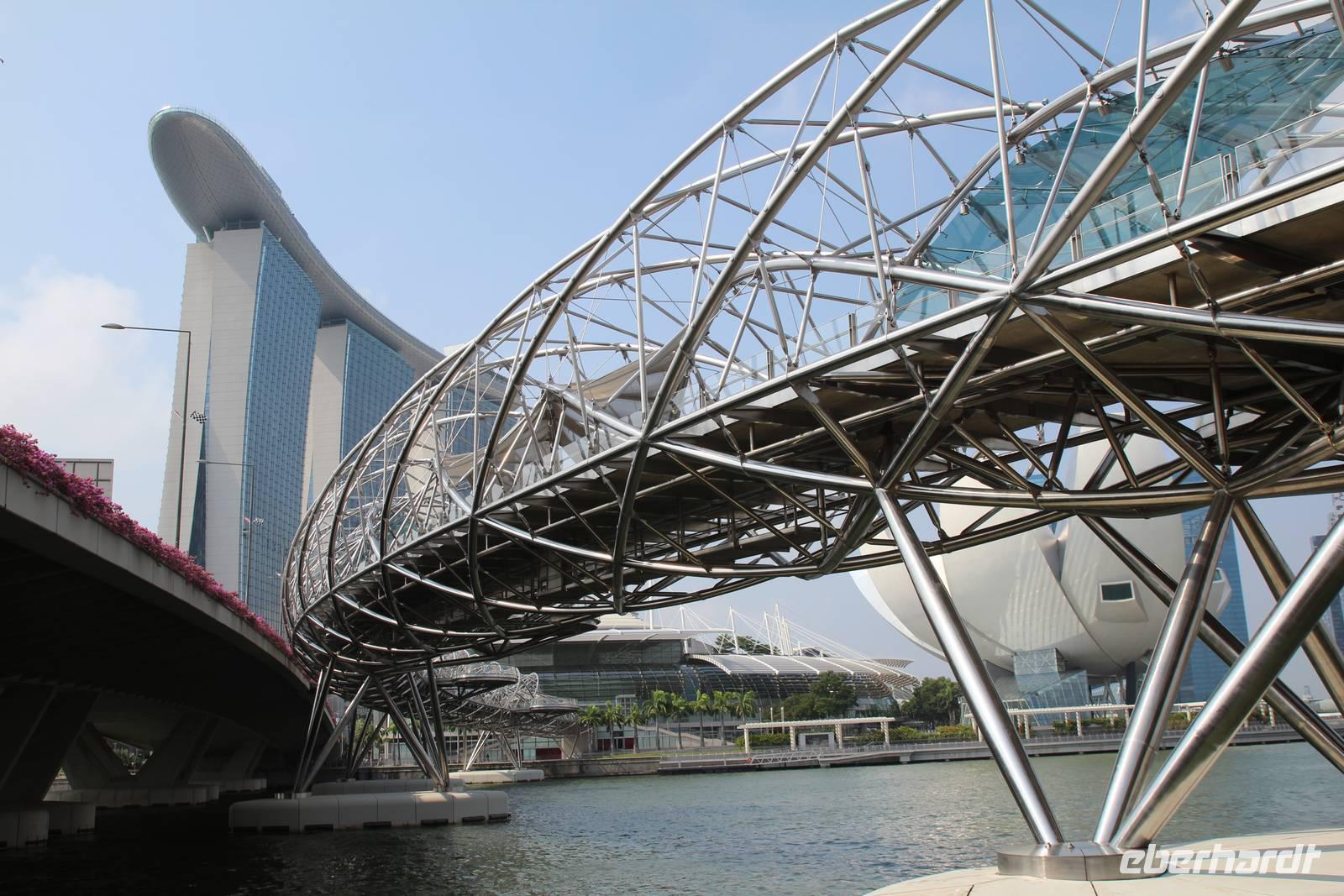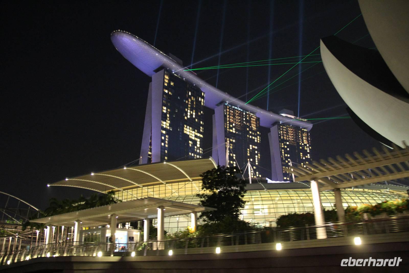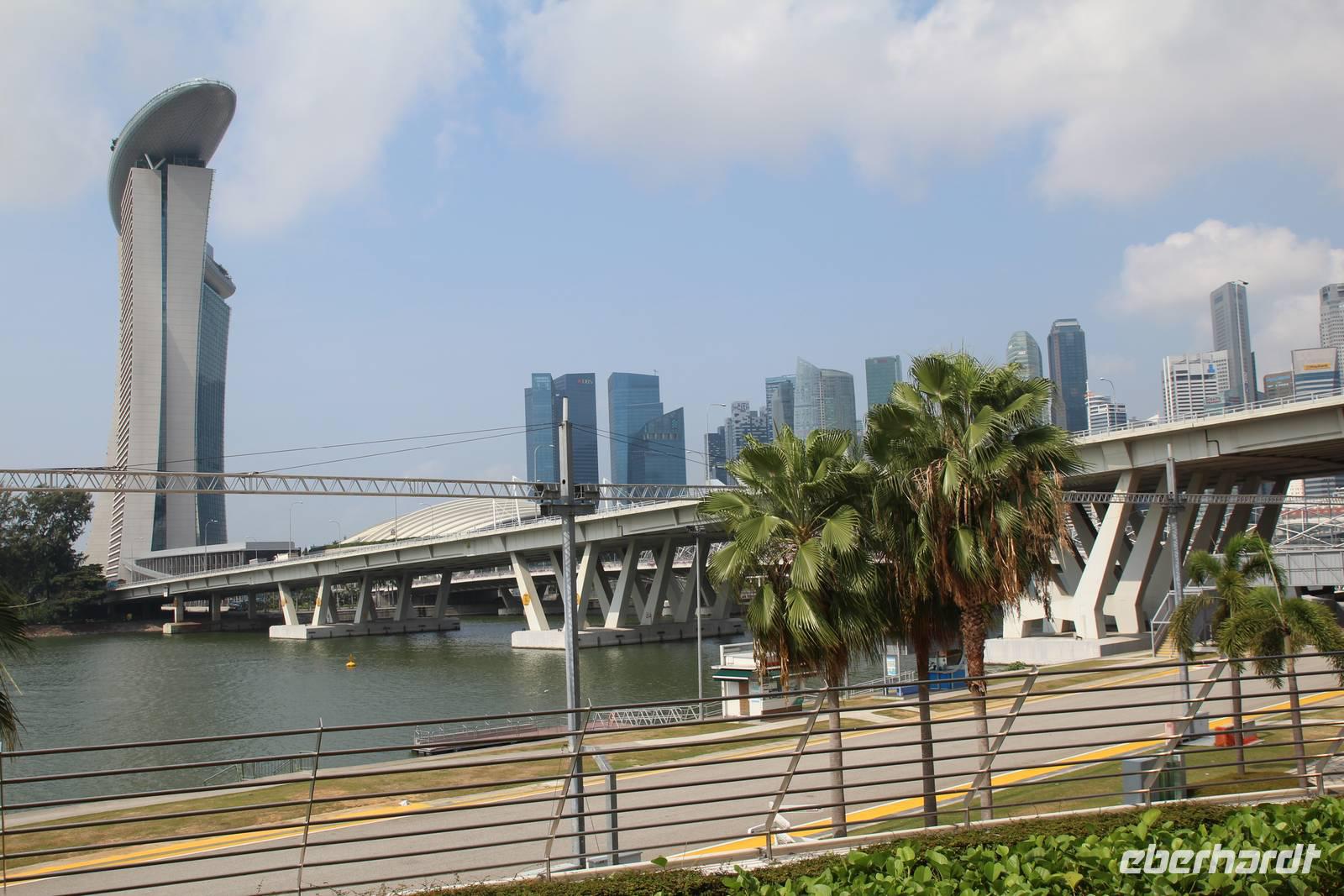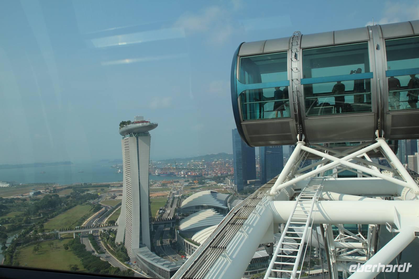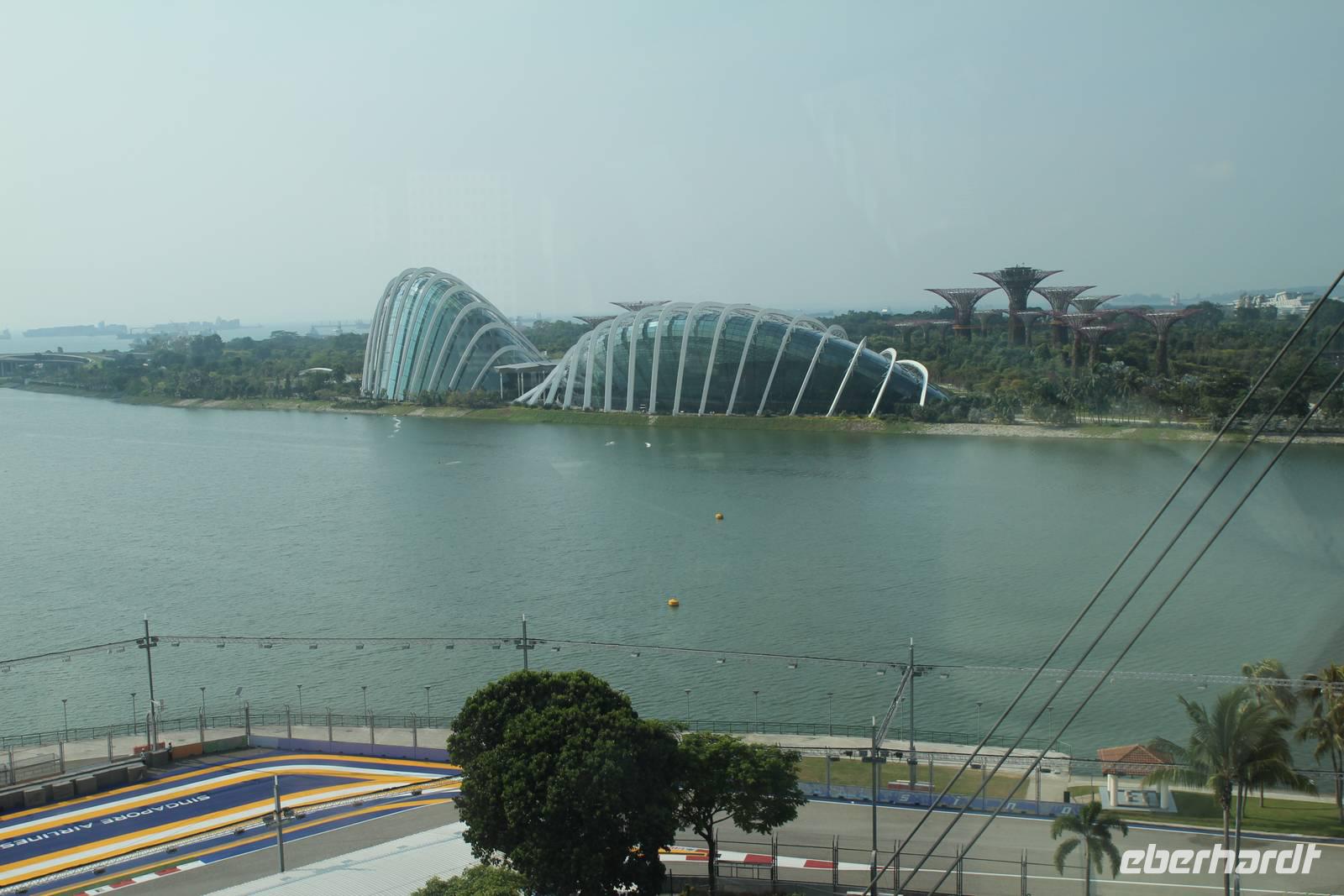 Am folgenden Morgen hatten dann doch einige mit dem Jetlag zu kämpfen, nicht jeder konnte die Nacht so genießen, wie er sich das vorgestellt hat. Aber Meckern hilft da nix, am Morgen ging es los. Um uns einen noch bessere Überblick über Singapur zu verschaffen, ging es zum Singapore Flyer. Da am Wochenende zuvor der Formel1-Grand-Prix in Singapur stattfand, konnten wir über die zum Teil noch sichtbare Strecke einen kleinen Abstecher machen. Aber nun ging es nach oben, der Singapore Flyer brachte uns während der 30-minütigen Fahrt auf bis zu 165 Meter Höhe, was uns einen guten Ausblick auf Singapurs Skyline verschaffte. Den weiteren Vormittag nutzten wir dann noch individuell: Ein Blick ins Marina Bay Sands Hotel, einen Besuch der „Gardens of the Bay" oder auch noch ein wenig Ruhe im Hotel.