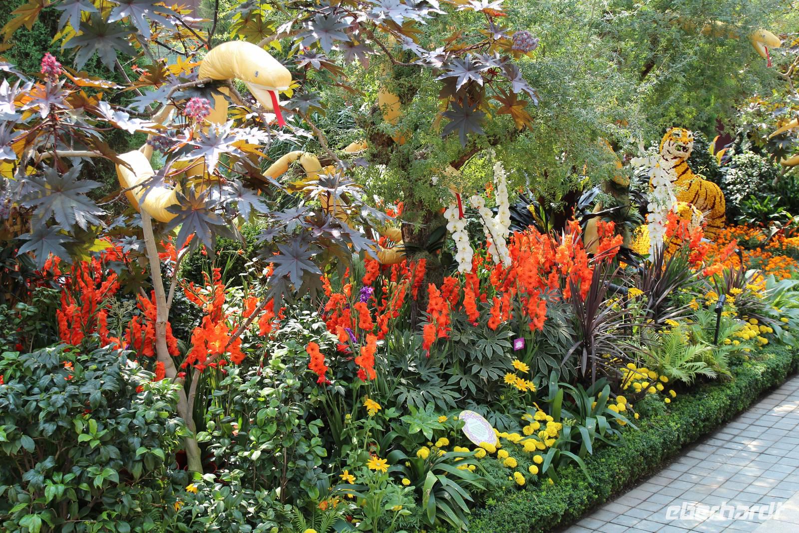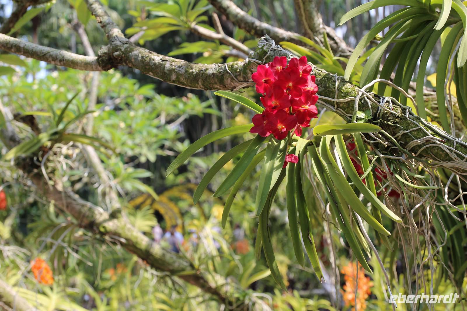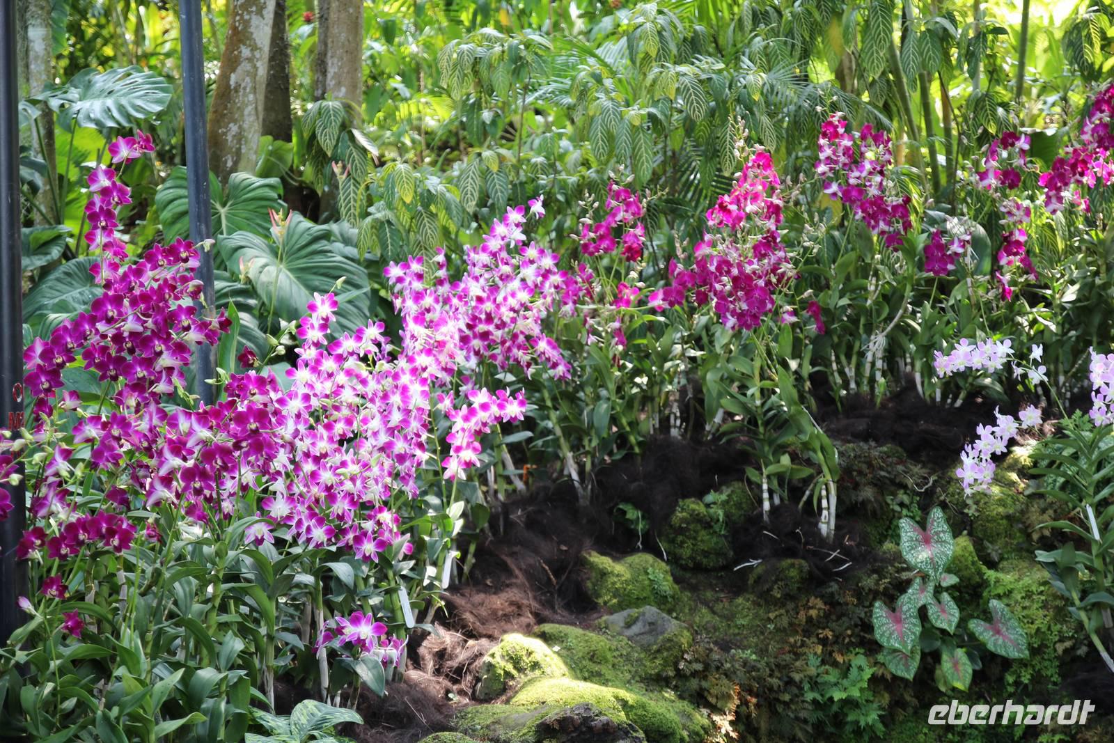 Nach dem Mittag starteten wir dann gemeinsam mit Reiseleiterin Martine auf eine Stadtrundfahrt. Unser Bus brachte uns zunächst nach Chinatown, wo wir den Thian Hock Keng Tempel besichtigten und anschließend über den Markt bummelten. Weiter ging ist in den Botanischen Garten von Singapur, wo wir in den Orchideengarten gingen. Hier erwarteten uns über 60.000 Orchideen der verschiedensten Arten, angeblich sollte es auch eine Orchidee, die nach Angela Merkel benannt ist, geben. Leider konnten wir diese im Garten nicht finden. Als letzten Stopp fuhren wir nun noch nach Little India, wo es doch um einiges hektischer zuging, als wir den dortigen Markt unsicher machten. Aber alle gelangten wieder sicher zurück zum Bus, der uns nun schon wieder zum Flughafen brachte, von wo es per Nachtflug weiter nach Sydney ging.