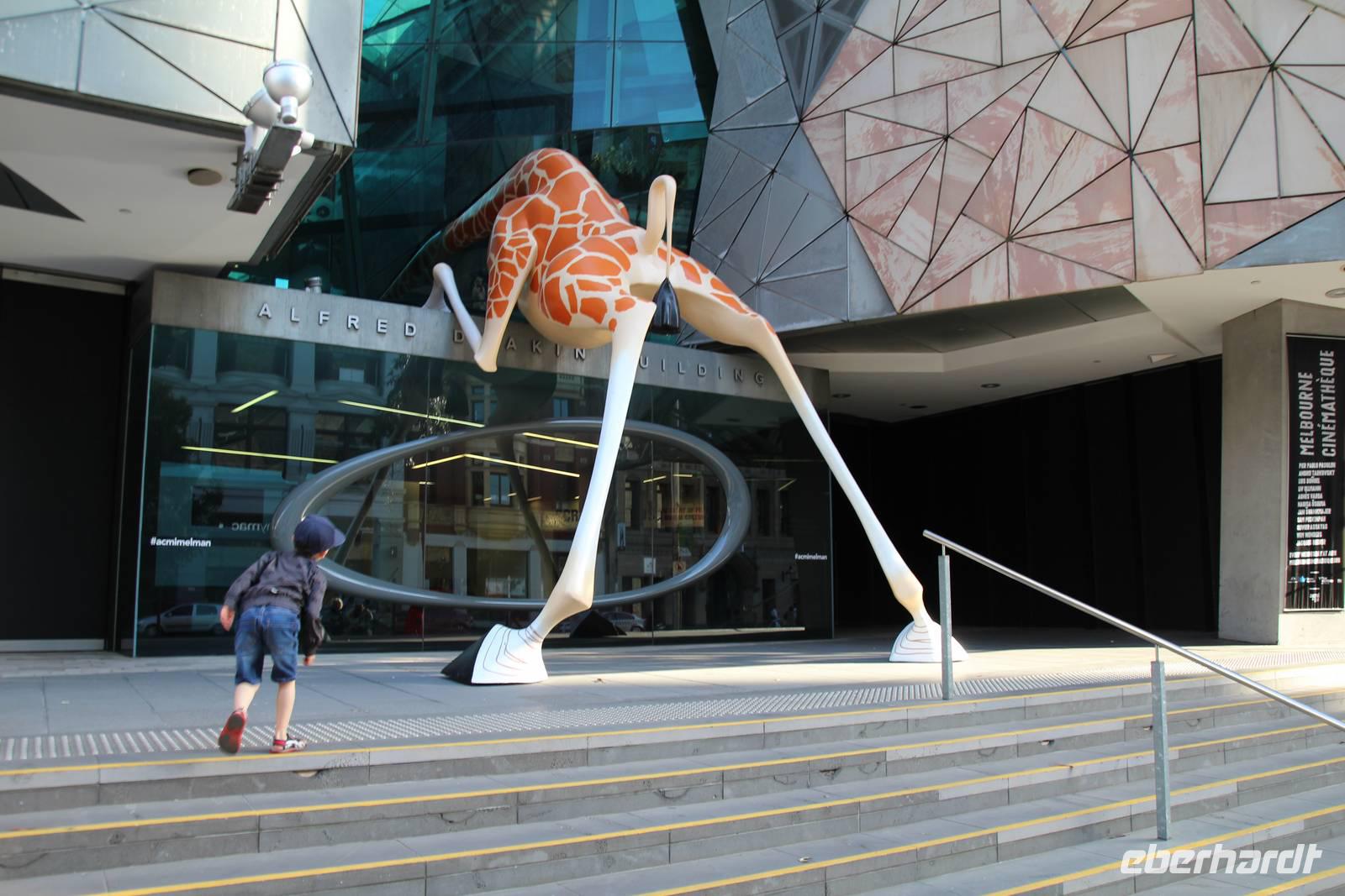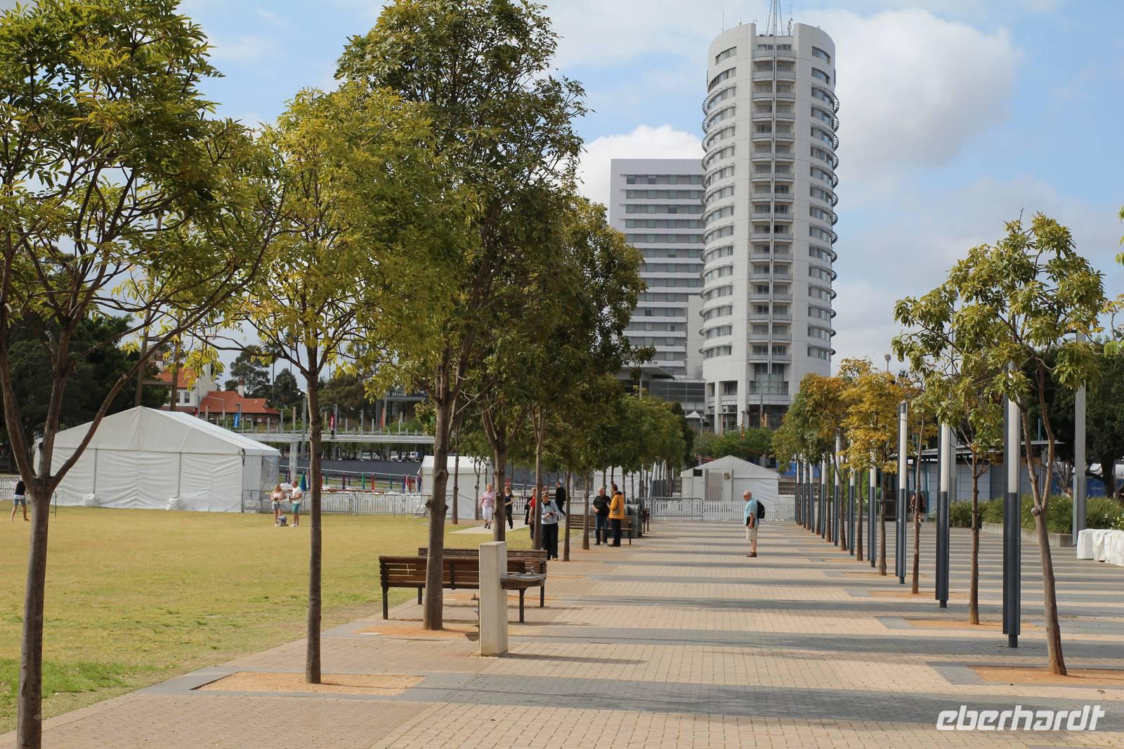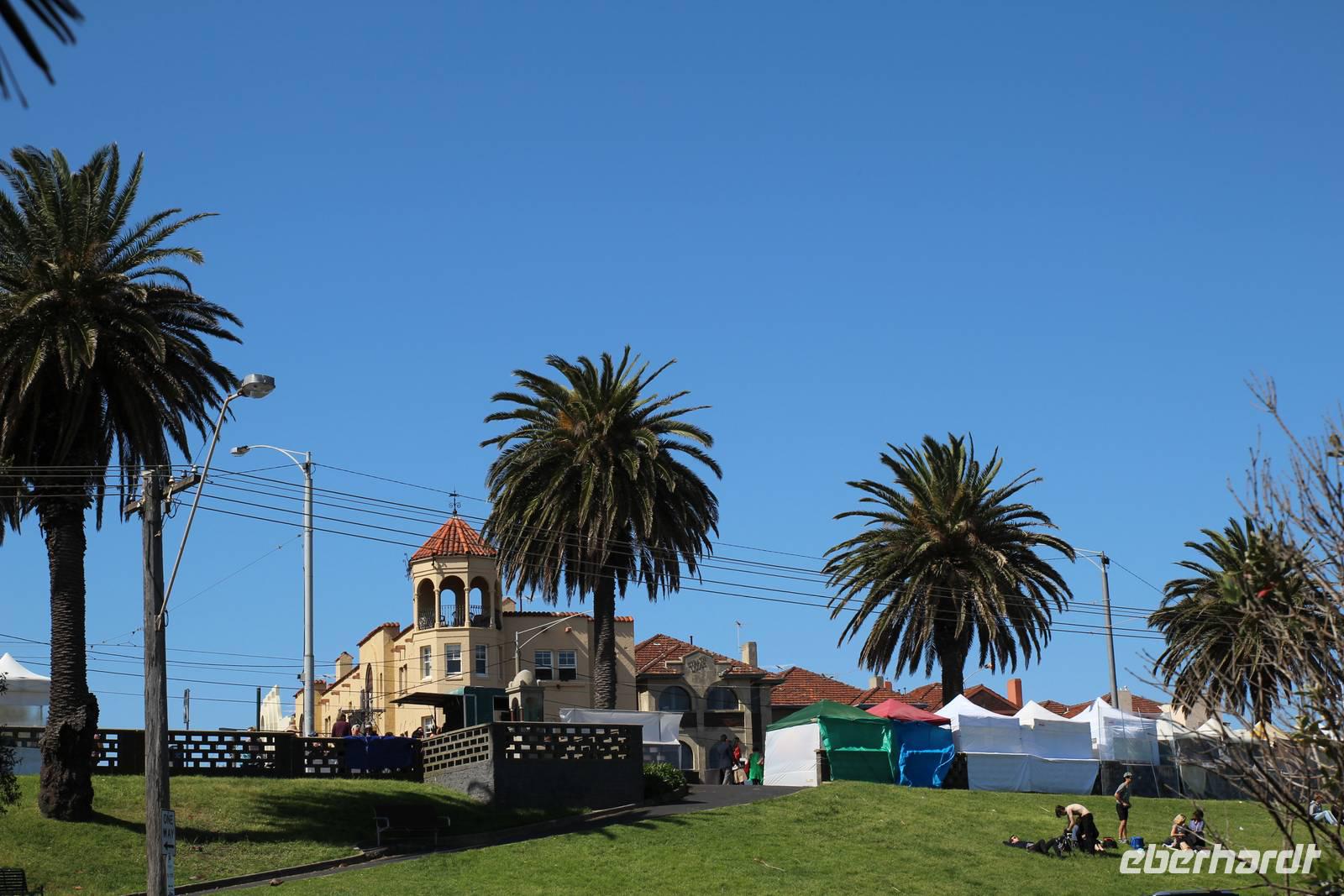Anschließend blieb uns noch ein wenig Freizeit, so dass wir auch über den Künstlermarkt entlang der Esplanade schlendern konnten. Der ist nur jeden Sonntag, also hatten wir da durchaus etwas Glück. Auf dem Rückweg in die Stadt machten wir noch einen Fotostopp am Kriegsdenkmal „Shrine of Remembrance", bevor wir dann auch an unserem Hotel, dem Mercure Treasury Gardens, ankamen und ein wenig zur Ruhe kommen konnten.