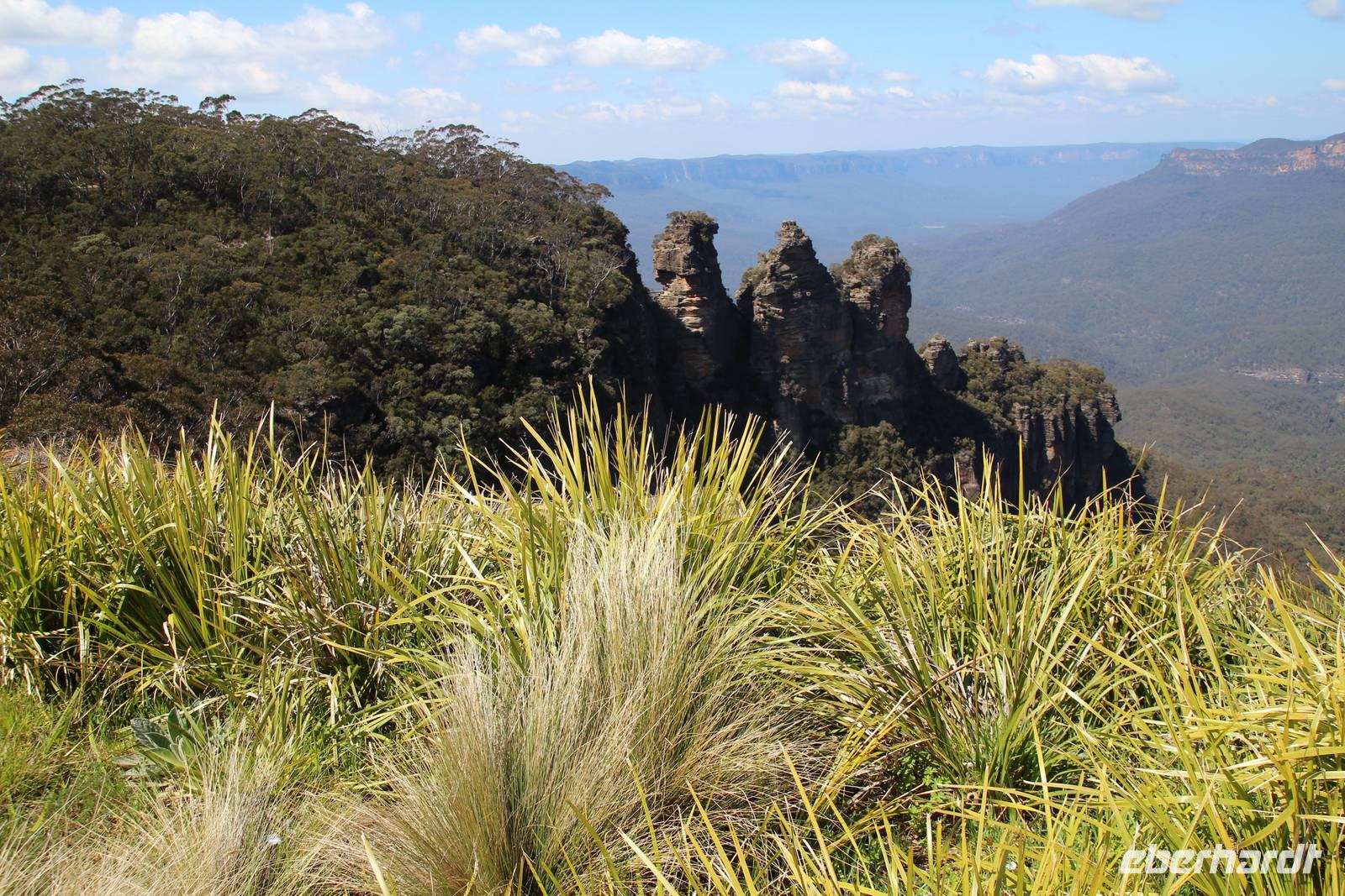 Nachdem wir die letzten Tage nur in den Städten Singapur und Sydney unterwegs waren, ging es heute endlich mal hinaus in die Natur, wo sicherlich der eigentliche Reiz einer Australien-Reise liegt. Unser Ziel heute waren die „Blue Mountains". Auf dem Weg dorthin stoppten wir kurz am Olympiazentrum von Sydney, wo im Jahre 2000 die olympischen Sommerspiele stattfanden. In den „Blue Mountains" angekommen, besichtigten wir auf verschiedenen Pfaden die Felsformation der drei Schwestern und auch die Berge erschienen uns heute in ihrer bekannten blauen Farbe. Bevor es dann zum Mittag ging, machten wir noch einen kurzen Stopp im Städtchen Leura, wo wir uns in einem Bonbon-Geschäft mit kleineren Leckereien eindeckten oder das Schaufenster eines Weihnachtsgeschäfts bestaunten. Zum Mittag ging es dann in einen Golf-Club, wo wir mit einem 3-Gänge-Menü gestärkt worden.