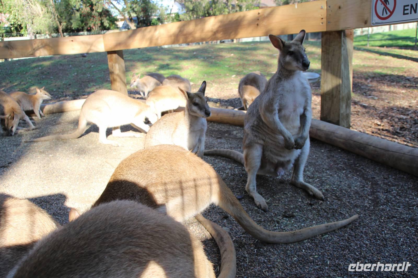 Anschließend ging es auch schon langsam wieder auf den Rückweg nach Sydney, aber natürlich hatten wir noch Zeit für einen Abstecher, der uns in den Featherdale Wildlife Park führte. Hier hatten wir zum ersten Mal Kontakt zu den australischen Tieren, so fanden wir hier neben Koalas und Kängurus auch tasmanische Teufel, Wombats und viele andere typisch australische Tiere. Mit einigen machten wir dann natürlich auch ein kleines gemeinsames Porträt.
