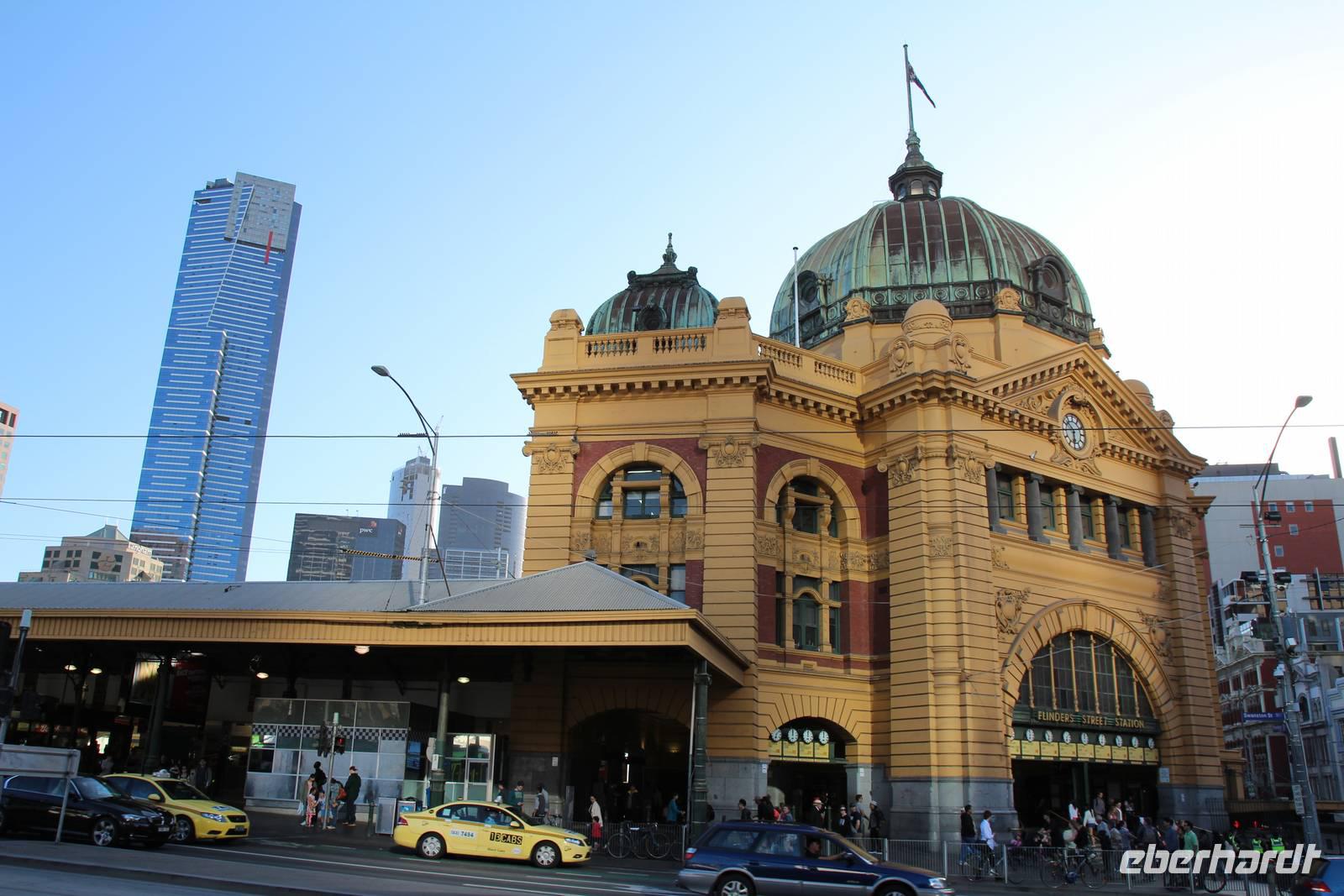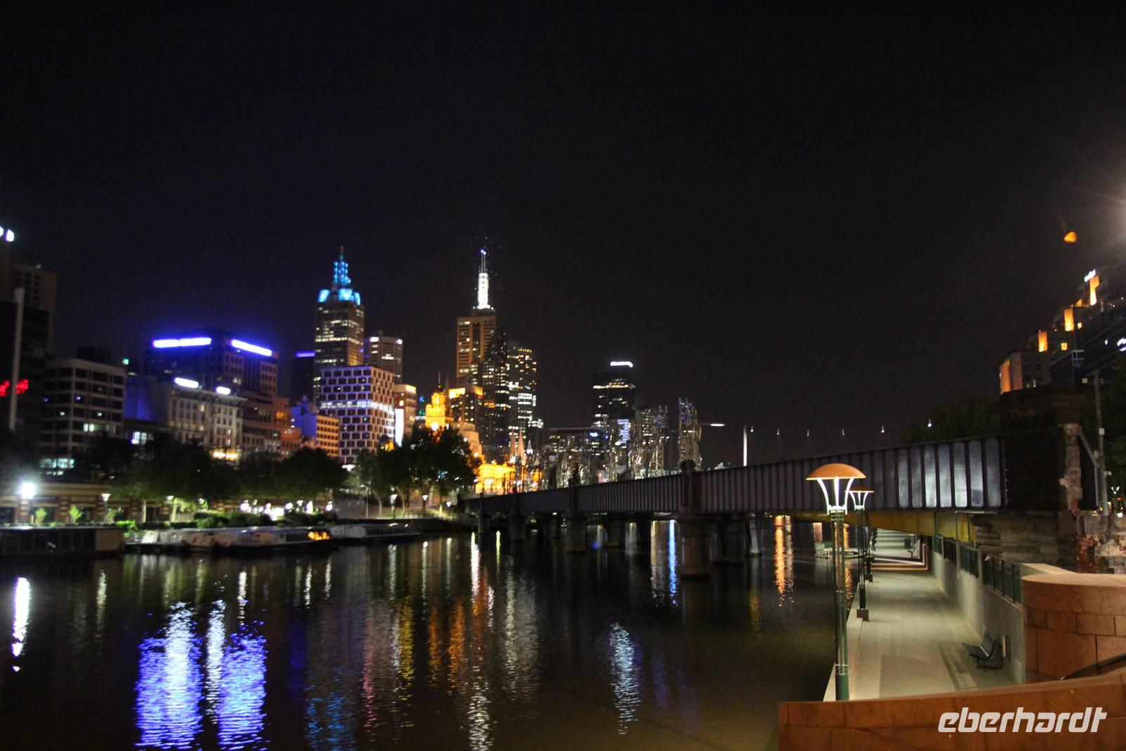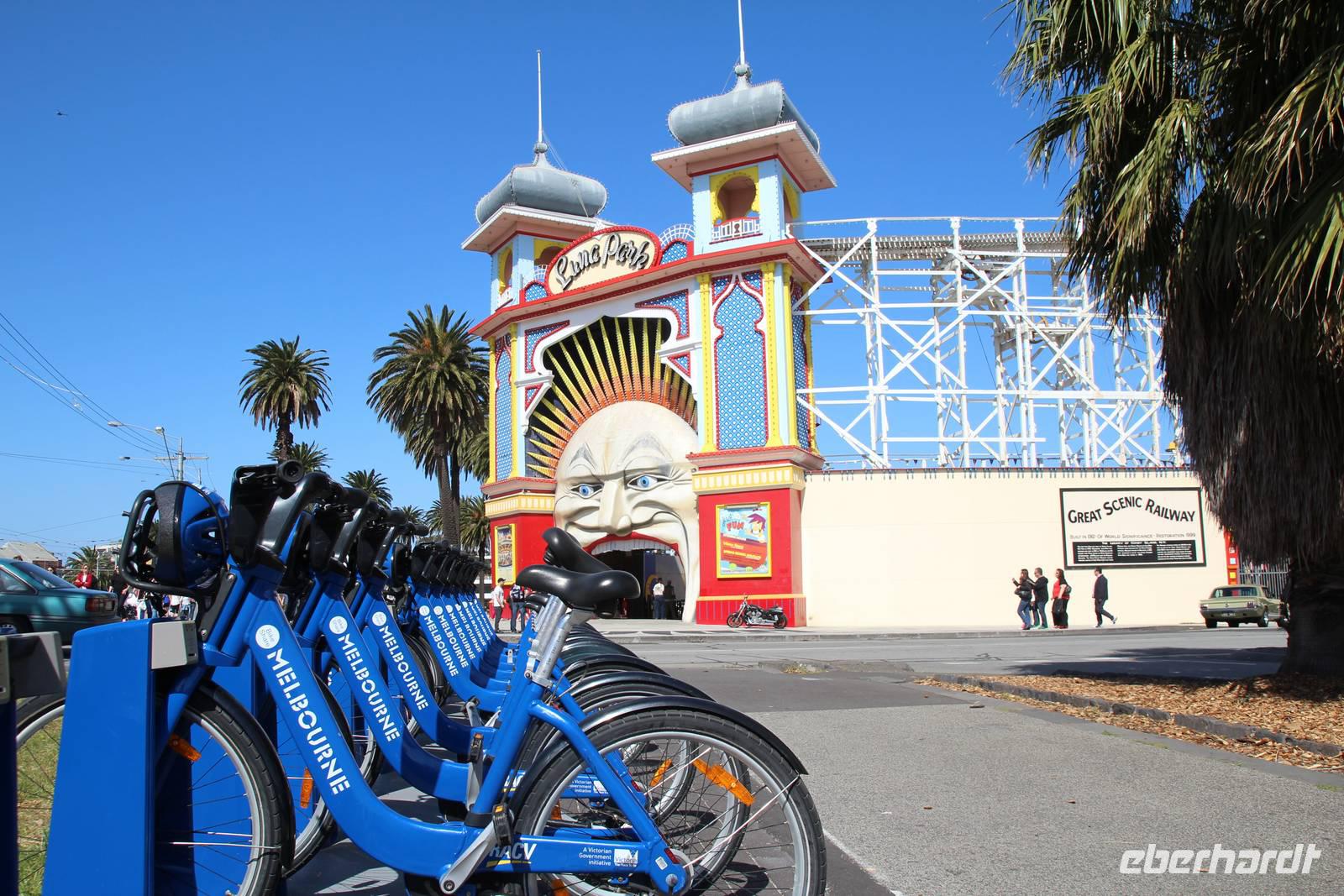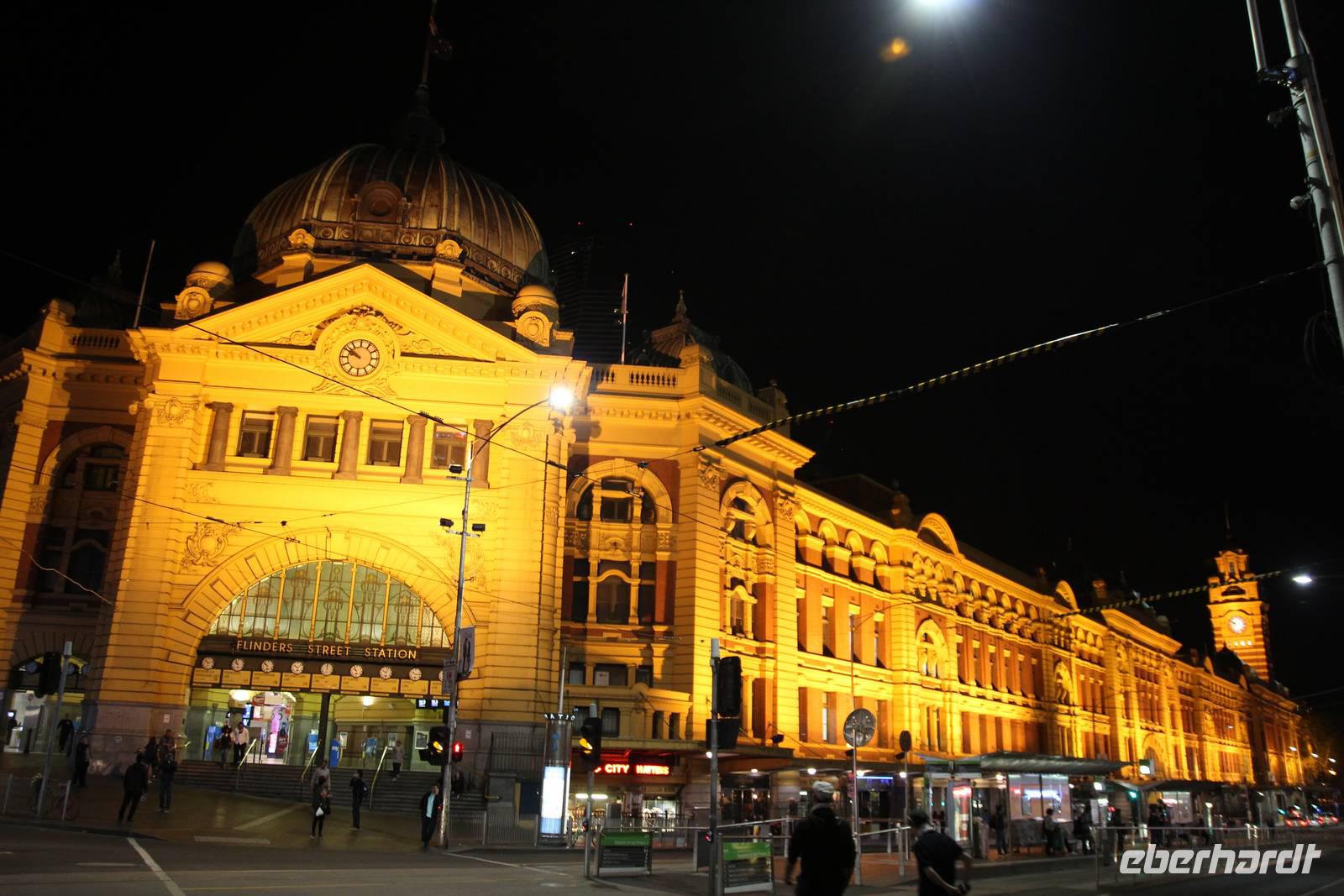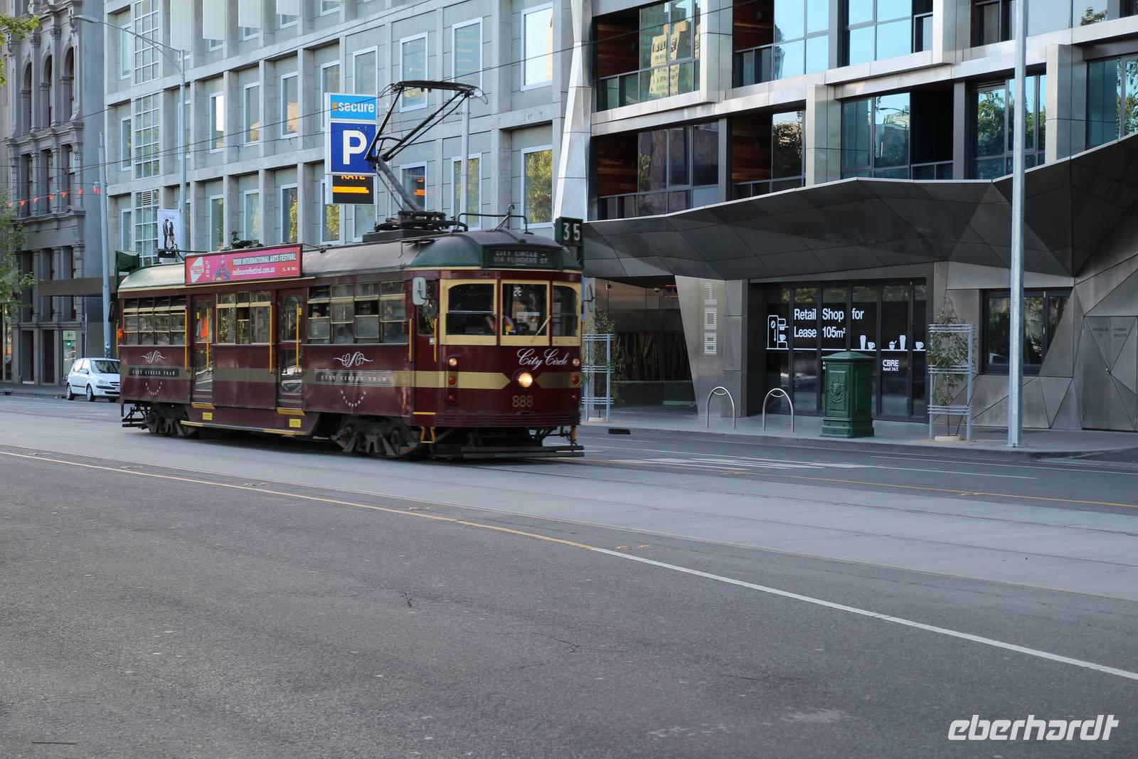 Nachdem wir alle unsere Gepäck hatten war die Mittagszeit schon fast ran, doch es stand auch eine Stadtrundfahrt mit auf dem Plan, die den Tagesablauf doch etwas stressig gestaltete, aber Ausruhen konnten wir uns ja auf dem Flug. Zunächst ging es direkt ins Zentrum vom Melbourne hinein, denn bevor wir hier unser Hotel beziehen können, ist es Abend und dann sind die Geschäfte schon geschlossen. Also stürzten wir uns hinein ins Getümmel und machten die Geschäfts-Arkaden unsicher. Viel Zeit war nicht, aber einen kleinen Einblick konnten wir zumindest gewinnen, bevor wir weiter zum Albertpark fuhren. Auch hier fanden wir Anzeichen von der bekannten Grand-Prix-Strecke von Melbourne. Zum Mittagessen fuhren wir dann in den Stadtteil St. Kilda, welcher direkt am Strand liegt und auch als Naherholungsgebiet für die Einwohner von Melbourne gilt. Im Restaurant Pamish wurden wir dann zum späteren Mittag bei einem 3-Gänge-Menü versorgt.