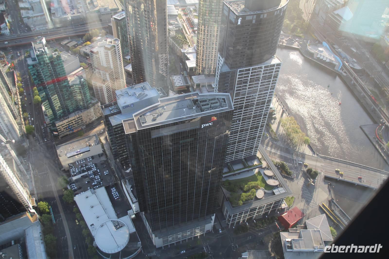 Den Abend konnte dann jeder individuell gestalten, mit mir kamen einige auf einen Spaziergang zum Eureka-Tower, wo man einen Ausblick von der 88. Etage genießen konnte. Auch auf die Glasplattform getrauten sich einige, bevor wir von hier auf den Sonnenuntergang blickten. Um unseren Hunger dann zu stillen, gingen wir gemeinsam ins Bar & Grill Restaurant The Breslin, welches selbst sehr urig und vom Essen sehr lecker war.