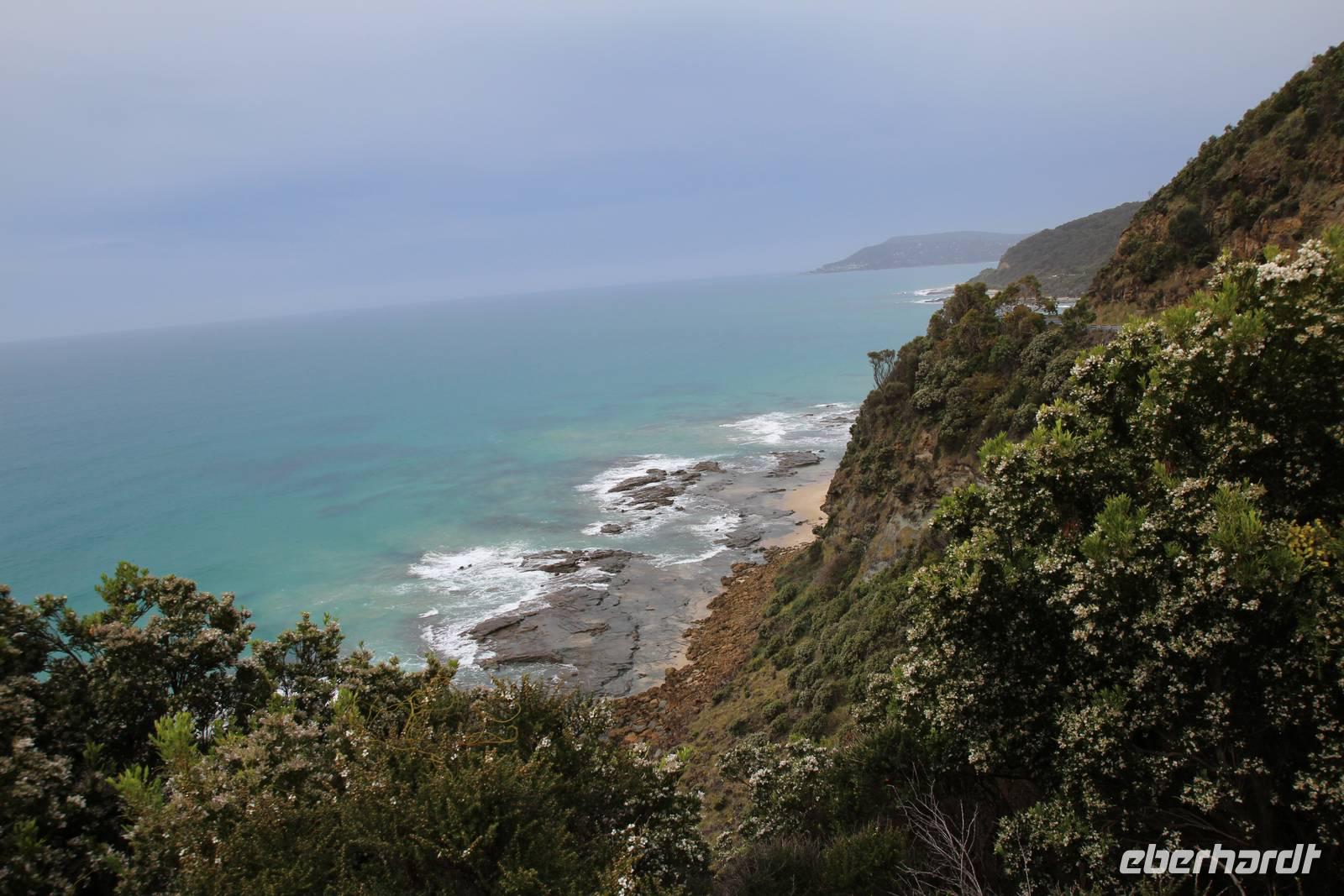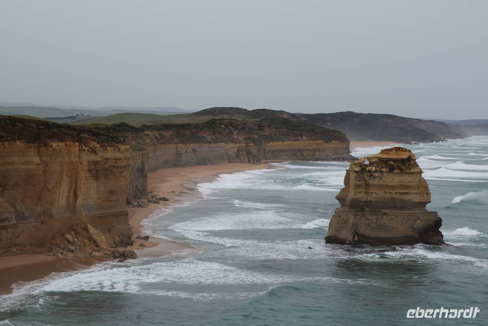 Auf dem heutigen Plan standen gute 600 Kilometer Fahrt mit dem Bus, denn wir wollten einen Teil der Great Ocean Road mit seiner Hauptattraktion, den 12 Aposteln, entdecken. Entsprechend früh starteten wir am Hotel, um auch ausreichend Zeit zu haben. Unseren ersten Zwischenstopp legten wir im Dorf Anglesea ein, welches doch noch sehr verschlafen war. Und auch das Wetter erinnerte an einen Montag, denn es war bedeckt und es regnete heute auch ab und zu, was wir aber auch überlebt haben.
