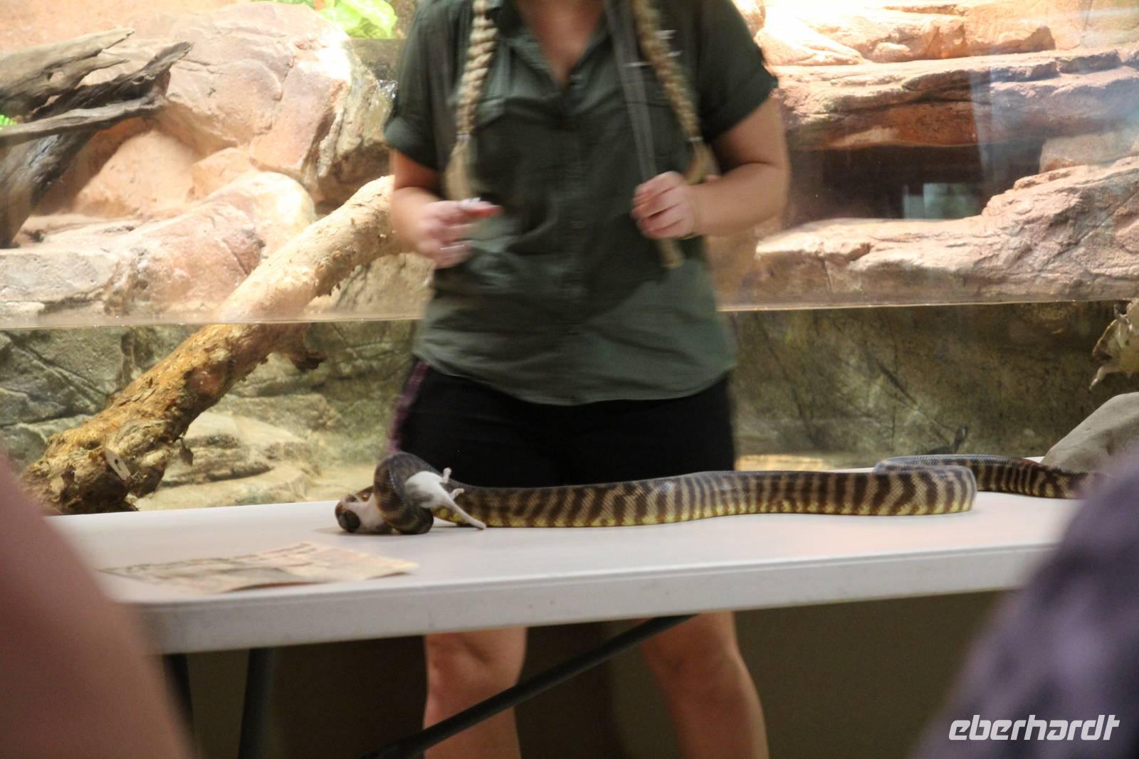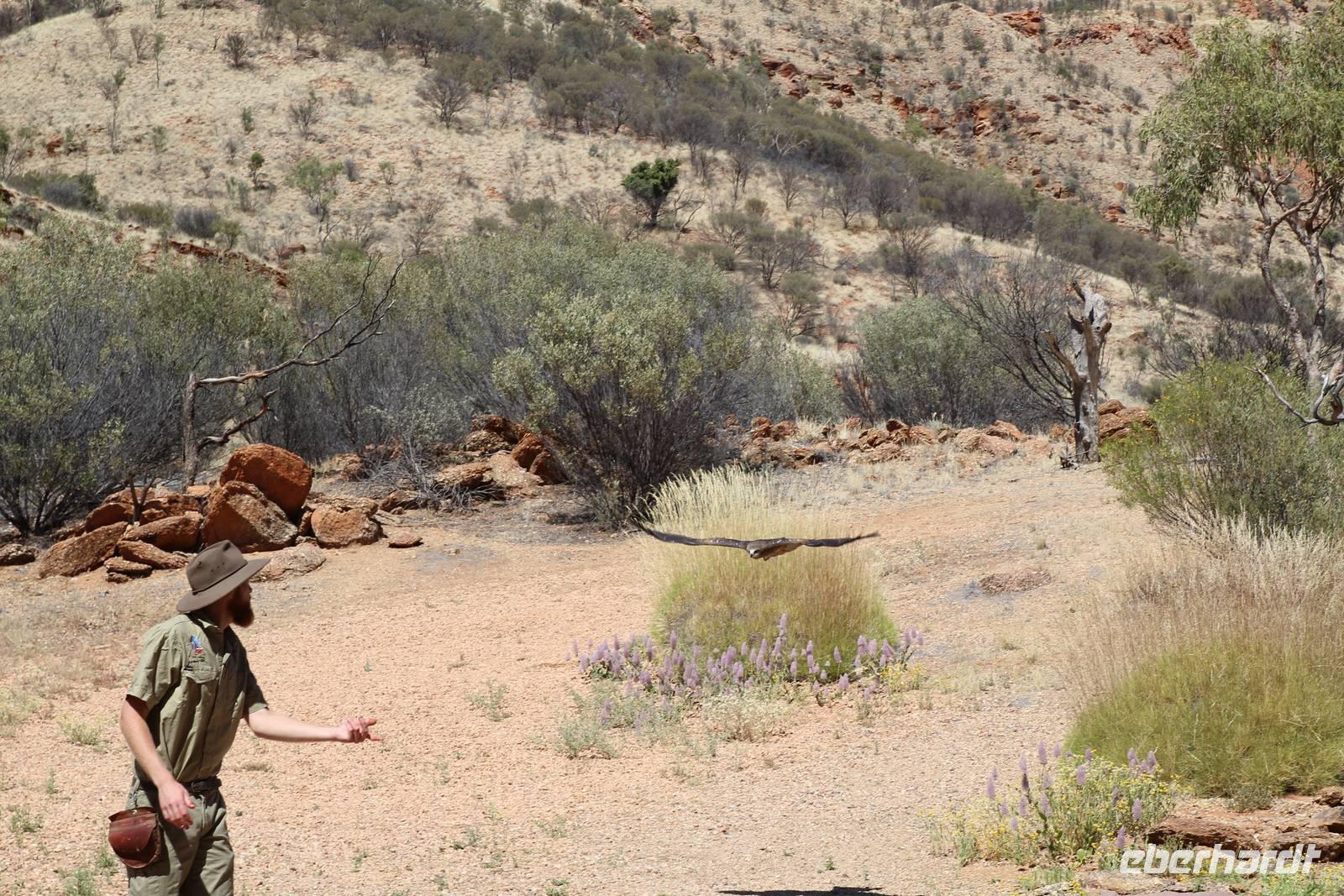 Am zeitigen Vormittag ging es heute zunächst zum Desert-Park von Alice Springs. Hier besuchten wir u.a. eine Vorstellung über die Lebensweise der Aborigines und auch eine Vogelflugshow, wo uns diverse Vögel des Outbacks vorgestellt wurden. Neben weiteren australischen Tieren gab es auch ein Reptilienhaus, wo wir uns locker den ganzen Vormittag vertreiben konnten.