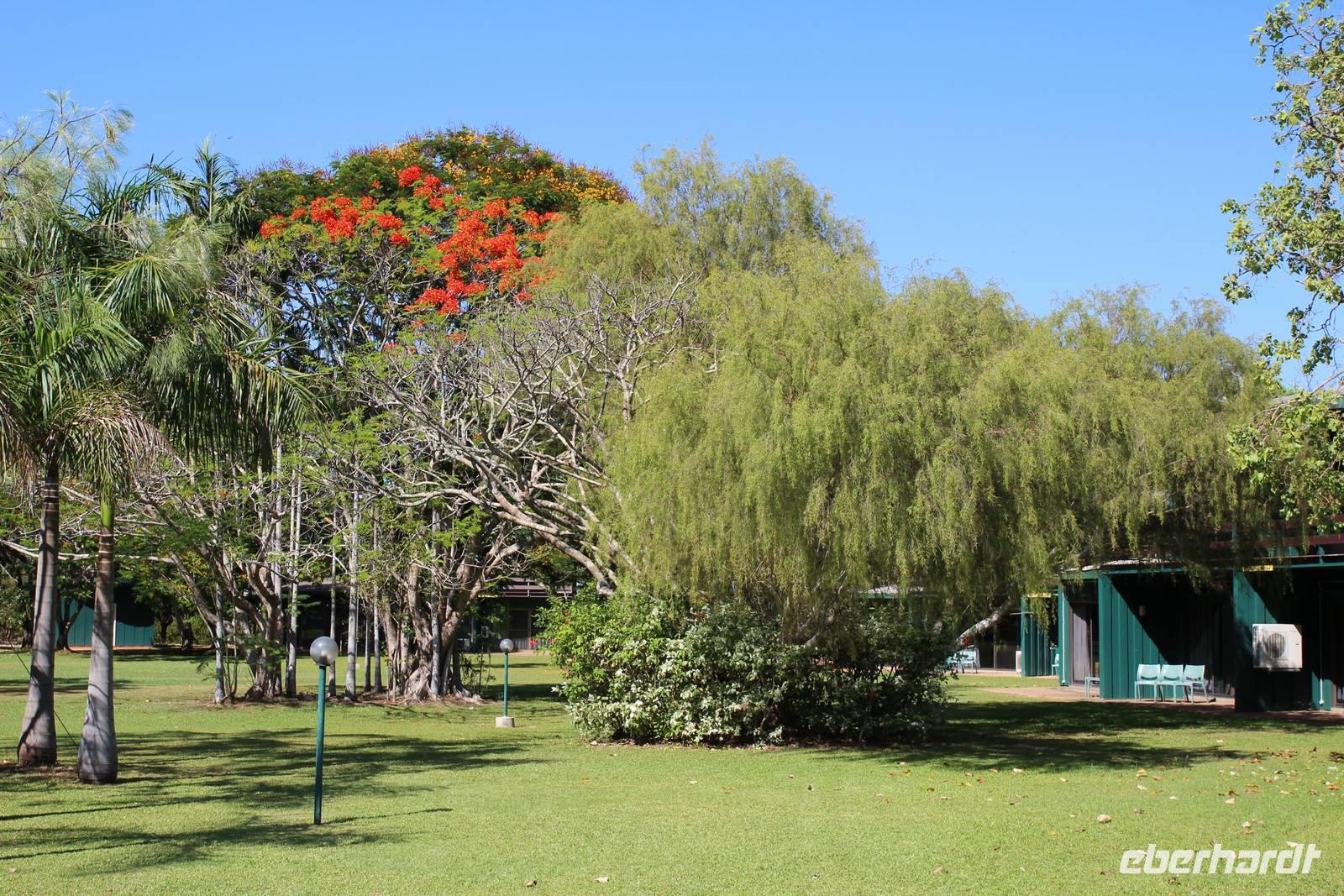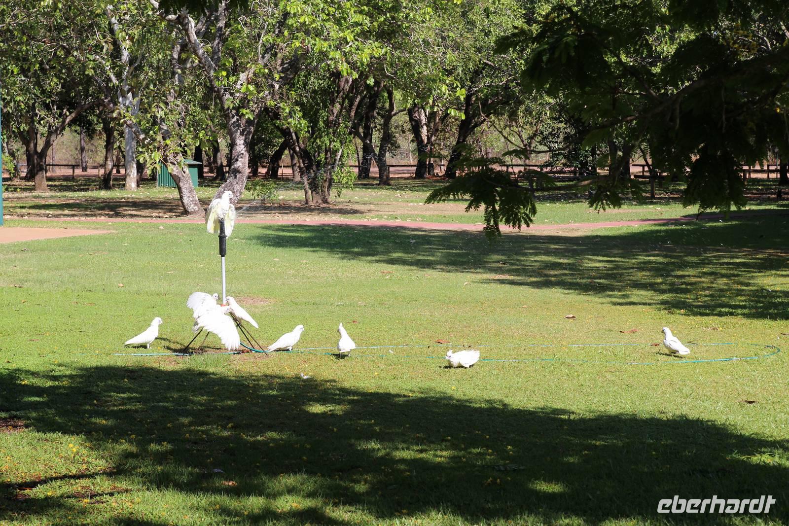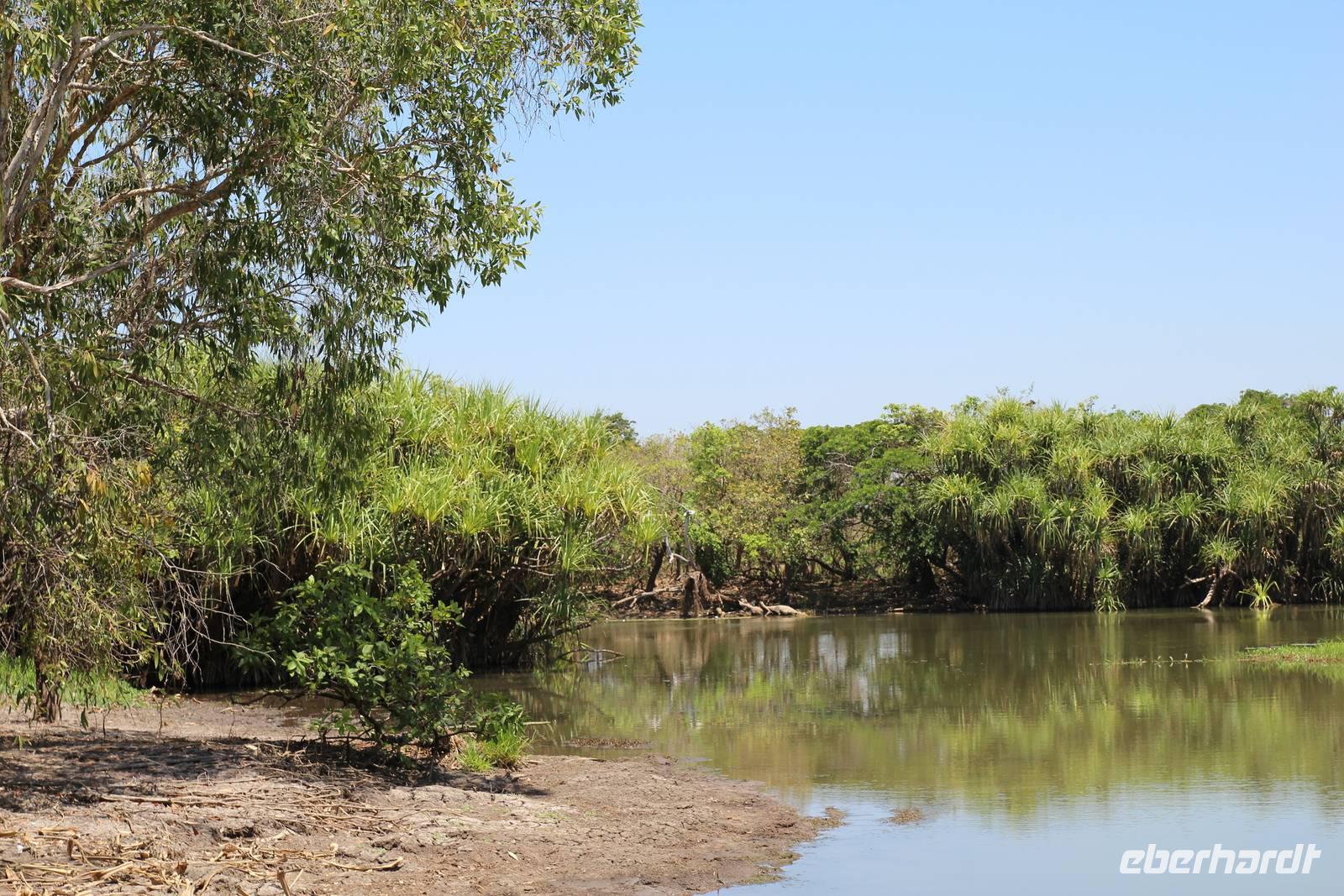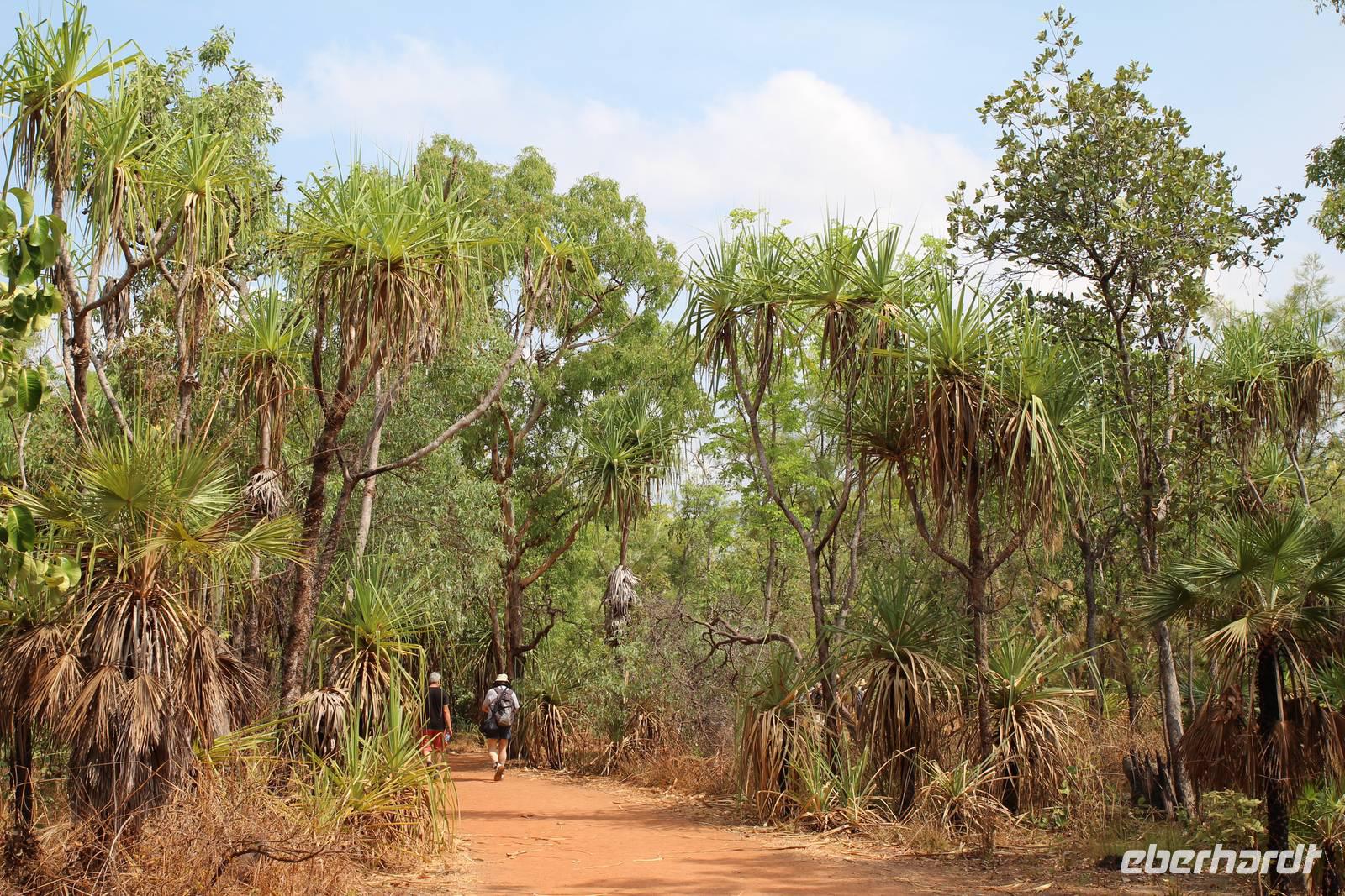 Nachdem wir auf dieser Fahrt keinem Krokodil zum Opfer gefallen sind, konnten wir unsere Reise durch den Kakadu-Nationalpark fortsetzen, zunächst gab es aber eine Mittagsrast in einem nagegelegenen Hotel Resort. Am Nachmittag unternahmen wir dann noch eine kleine Wanderung im Anbangbang Billabong, bevor wir dann auch schon wieder zum Hotel zurückkehrten, wo es dann für alle ein Eis gab. Es war auch wieder Zeit, ein wenig zu relaxen, bevor wir dann bei einem exklusiven Buffet zum Abendessen verwöhnt wurden. Nachdem Abendessen saßen wir dann zum Teil noch etwas zusammen und ein Dingo schlich dabei um uns herum.