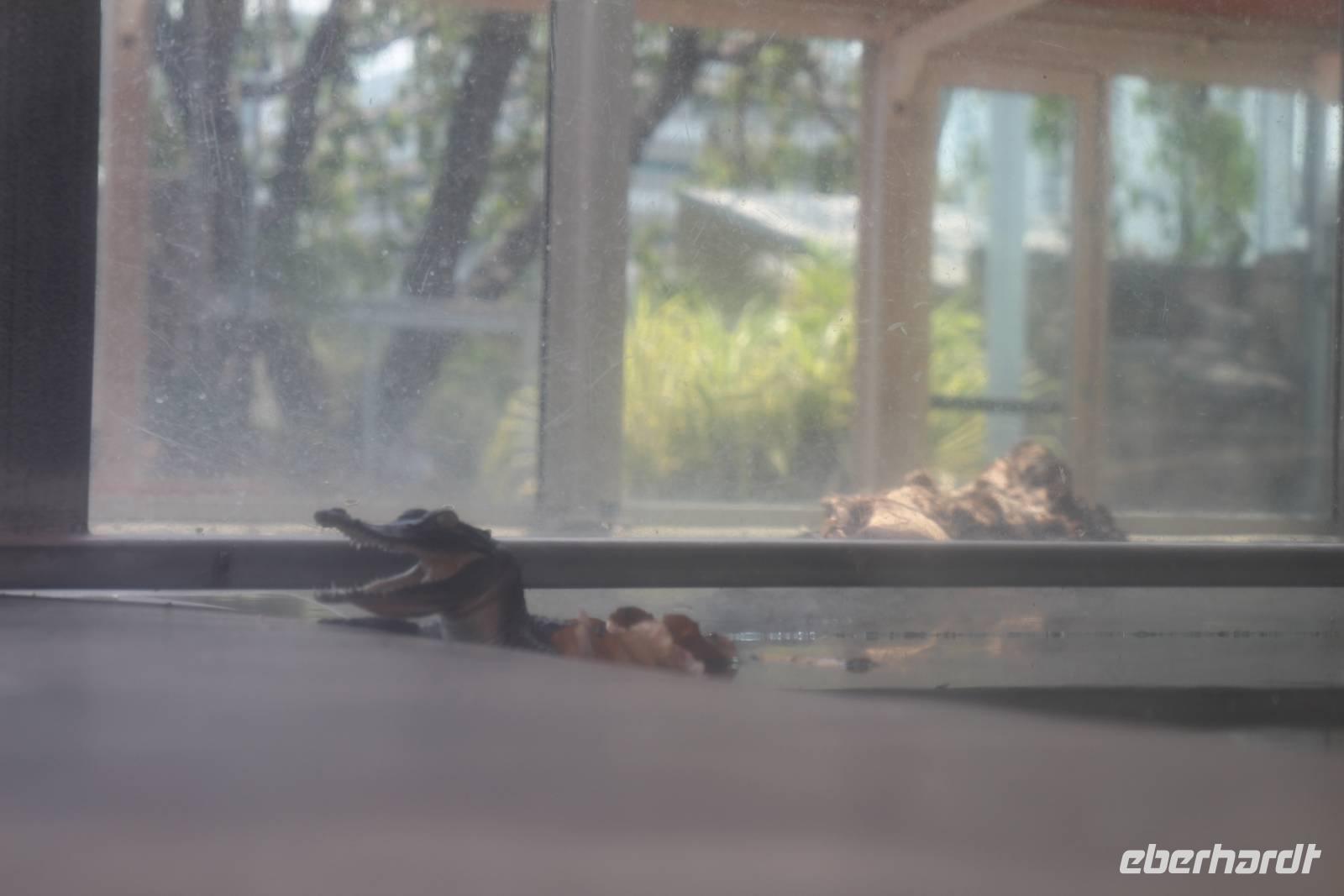 Die ungünstigen Flugzeiten hatten zur Folge, dass wir den Tag noch in Darwin verbringen mussten. Leider bietet die Stadt nicht all zu viel, denn sie ist doch eher Ausgangspunkt für Ausflüge in den Kakadu-Nationalpark oder zumindest ganze Tagesausflüge. Dennoch versuchten wir die Zeit jeder auf seine Art sinnvoll zu nutzen. Einige blieben um Hotel um mal einen Tag auszuspannen, ich war mit mehreren noch auf dem Weg zum Crocosaurus Cove. Hier konnten wir nochmal einige Krokodile sehen, von ganz kleinen Baby-Krokodilen bis zu ausgewachsenen Exemplaren. Dennoch war das ein anderes Erlebnis als wenn man sie in freier Naturbahn sieht. Auch verschiedene Reptilien, Schlangen und Schildkröten wurden hier gehalten und vorgestellt. Wir durften sogar - ein wenig Mut vorausgesetzt - einen Bearded Dragon und eine Schange festhalten.