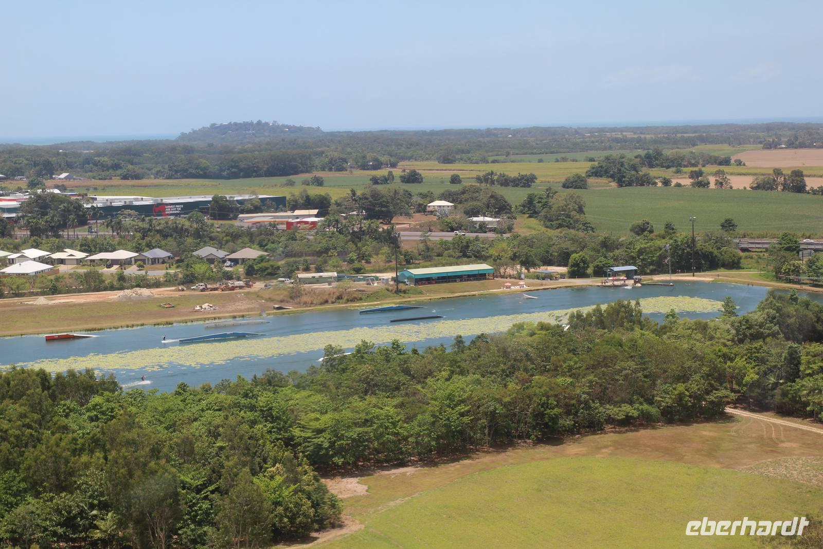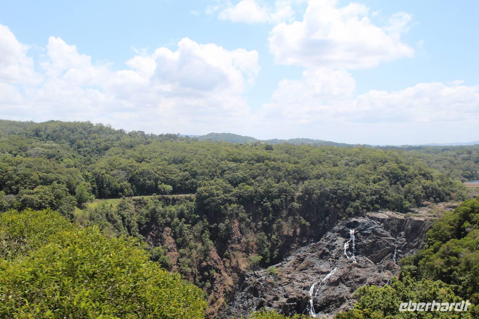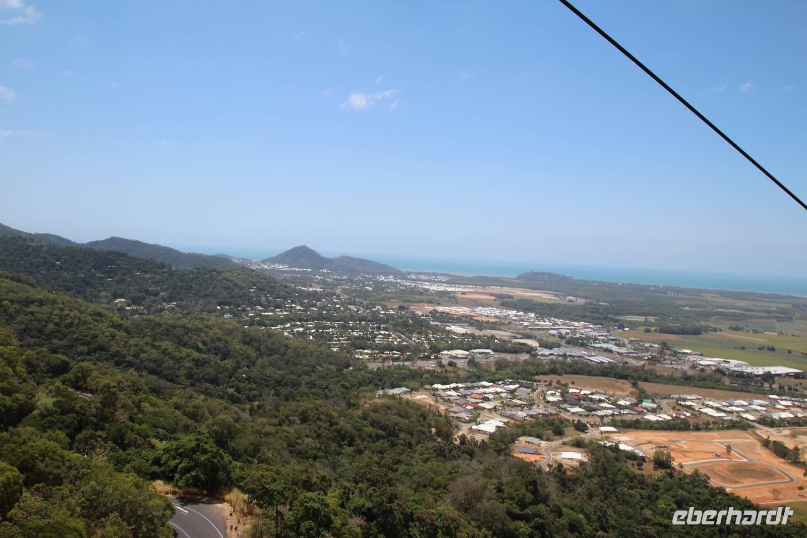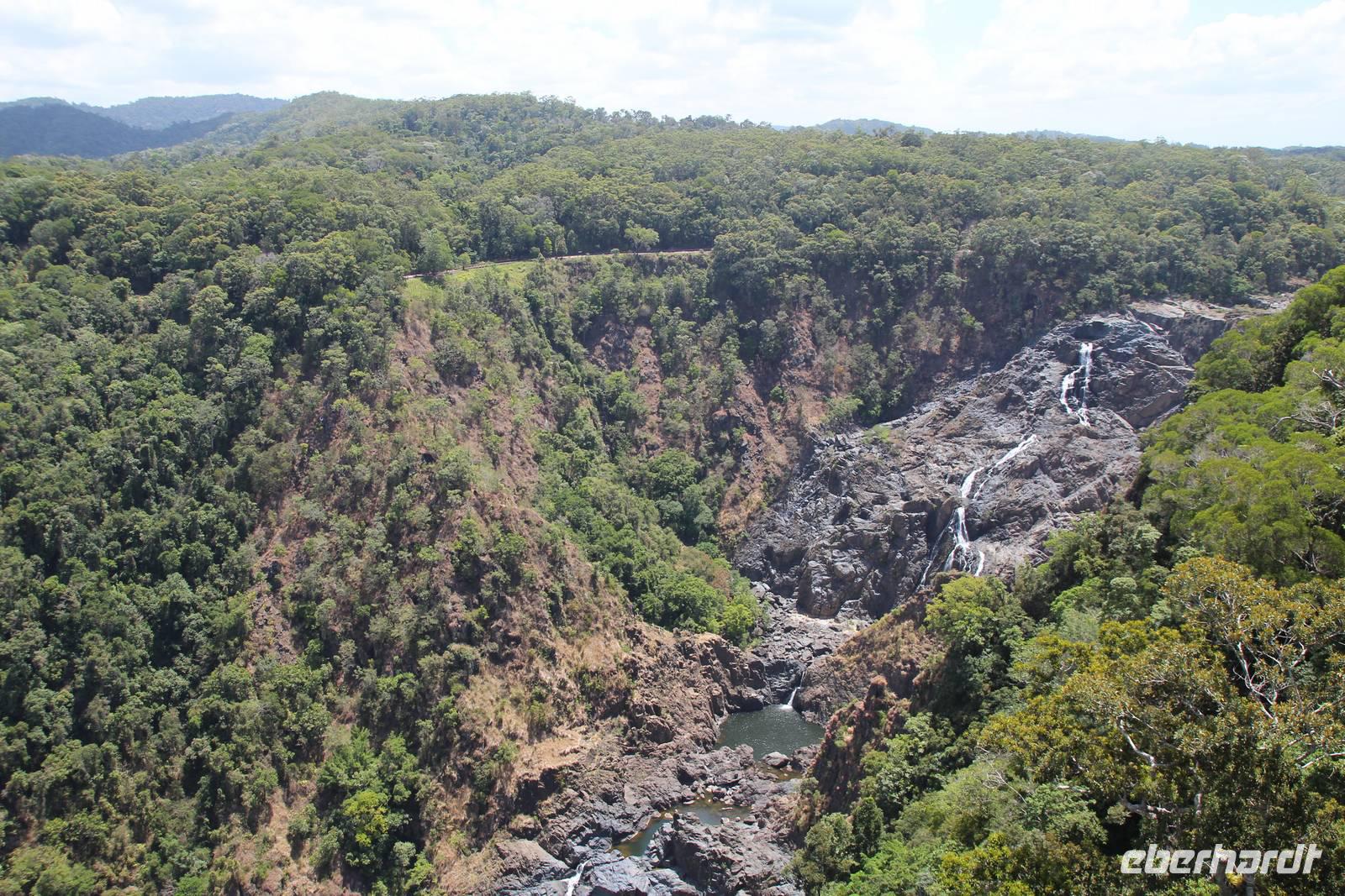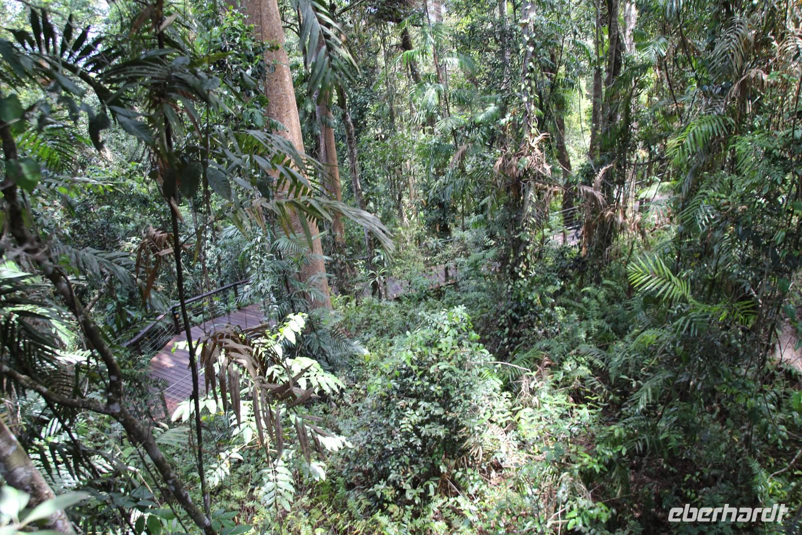 Danach ging es weiter mit der Skyrail. Die Seilbahn brachte uns auf der ersten Strecke zunächst zum Red Peak, dem höchsten Punkt der Seilbahn, zu dem wir schon knapp 15 Minuten unterwegs waren. Hier unternahmen wir einen kleinen Spaziergang durch den Regenwald, bevor es mit der Seilbahn weiter ging. Auf der weiteren gut 30minütigen Fahrt über den Dächern des Regenwalds kamen wir auch schon an den Barron Wasserfällen vorbei. An der Station fuhren wir aber vorbei, da wir die Wasserfälle schon auf dem Rückweg nach Cairns im Plan hatten. So erreichten wir dann zu späteren Mittagszeit das Örtchen Kuranda. Zur Eingewöhnung an die Heimat fanden sich auch einige in einem deutschen Lokal ein, wo es die typisch deutschen Würste und natürlich auch deutsches Bier gab. Die weitere Zeit nutzten wir dann hier noch ein wenig zum Bummeln und für die letzten Andenken.