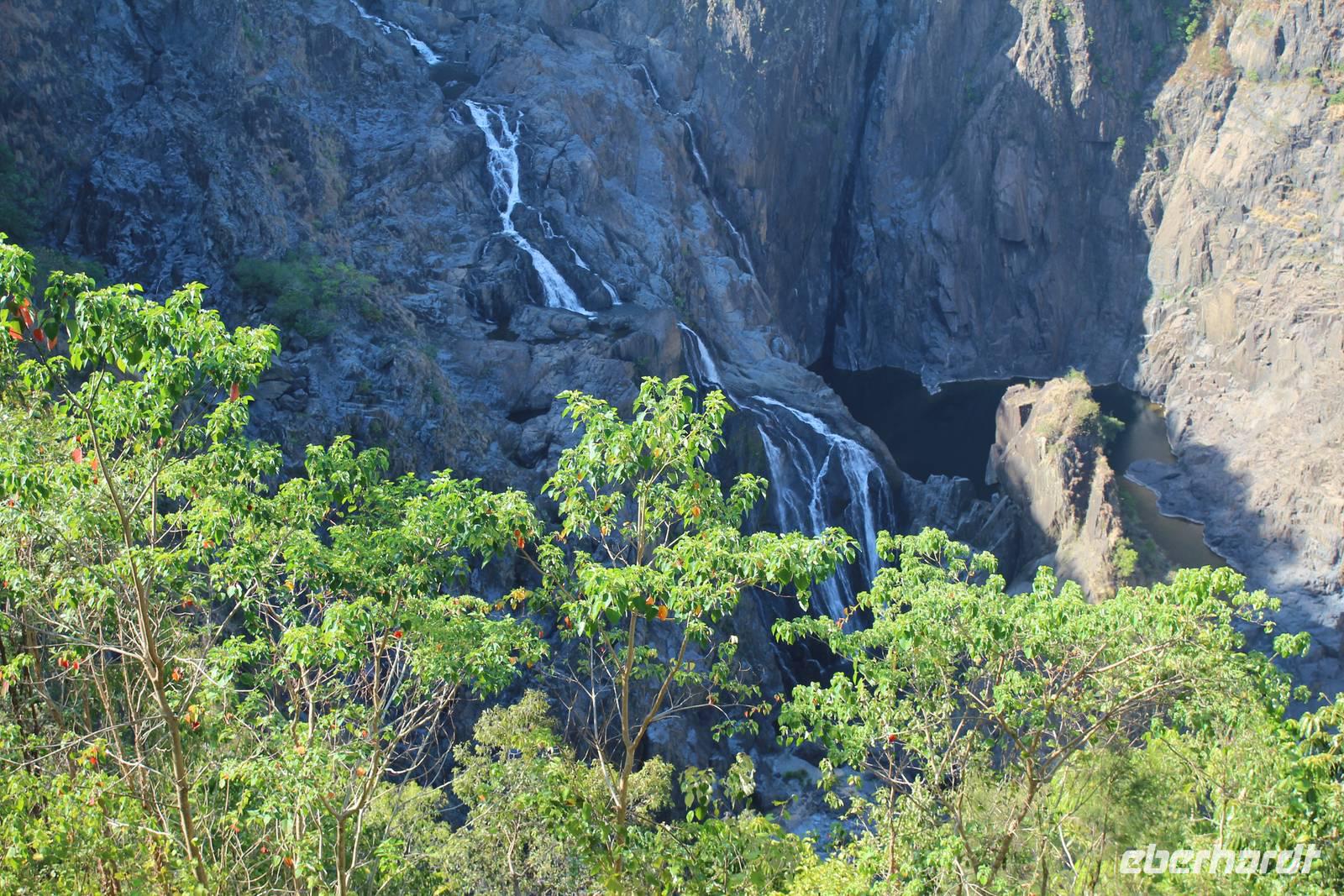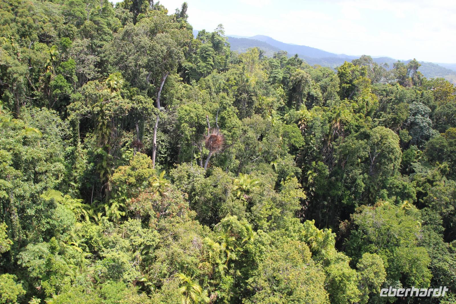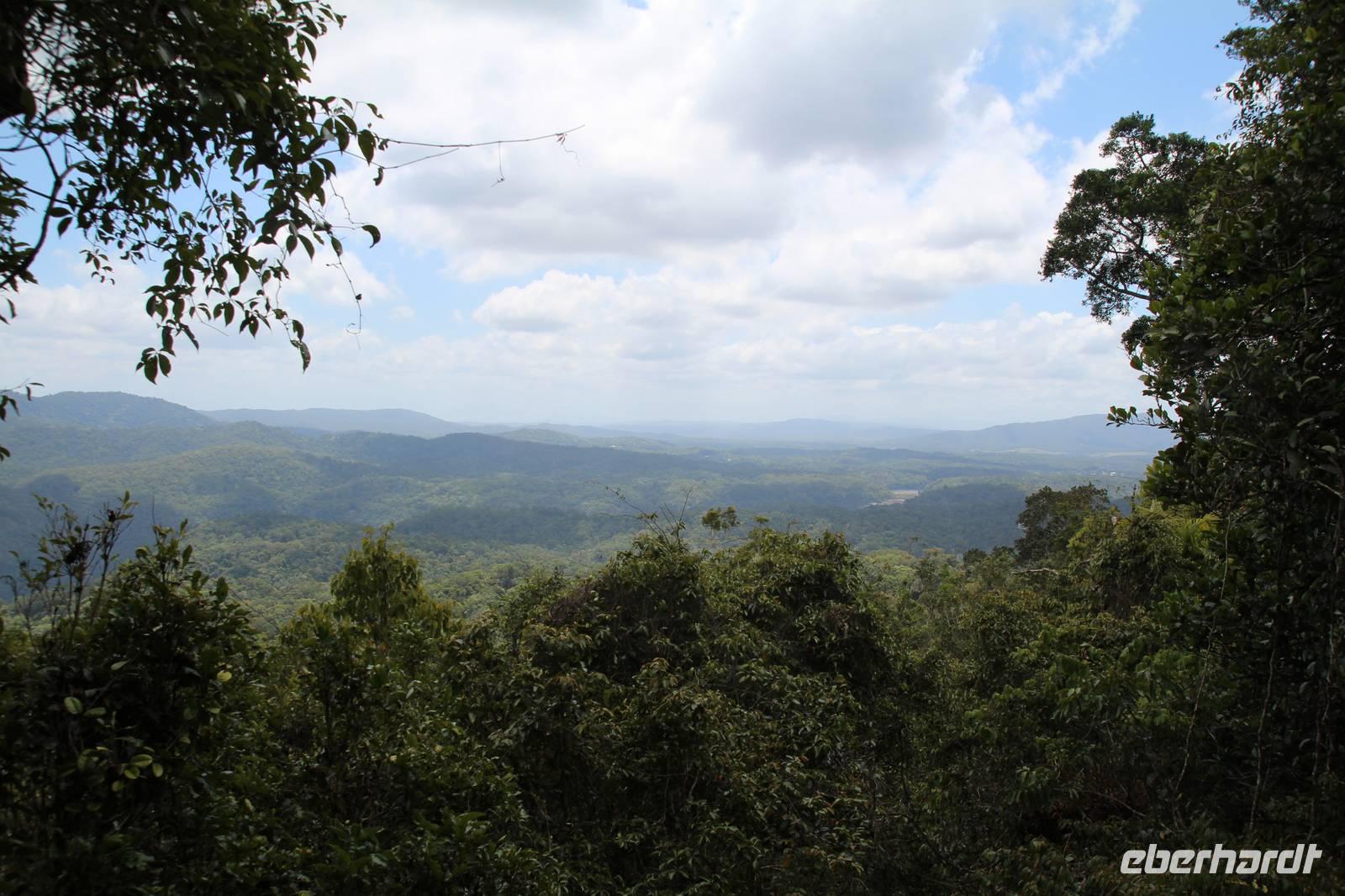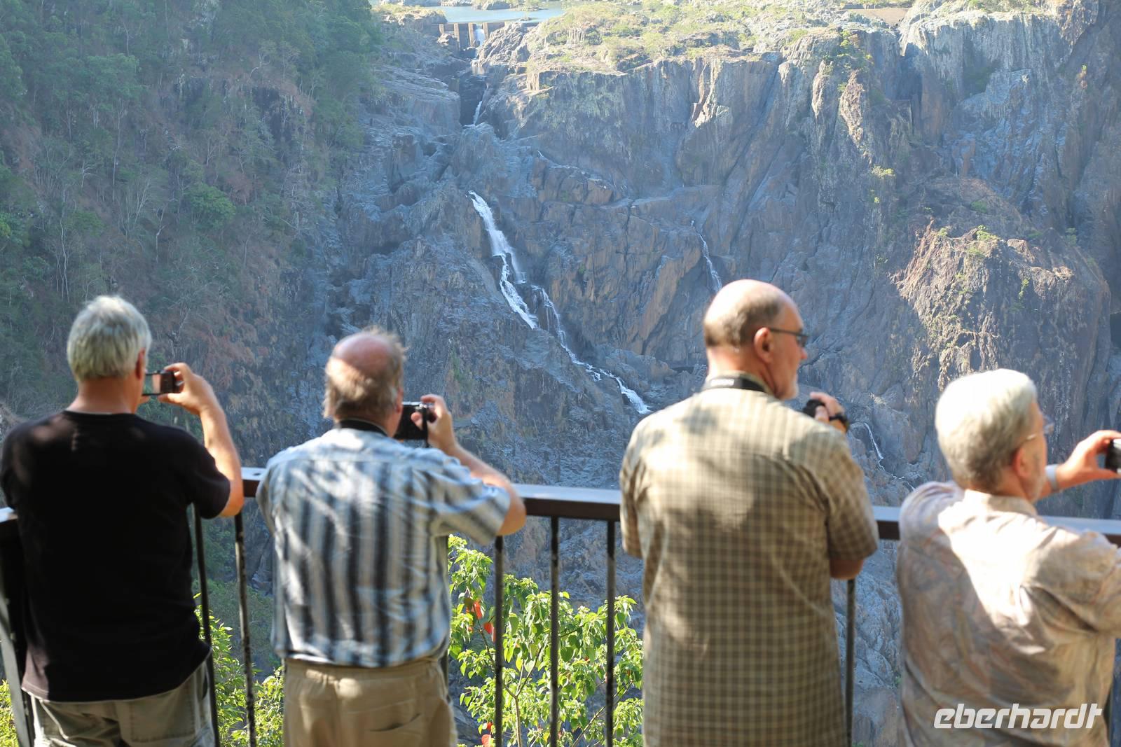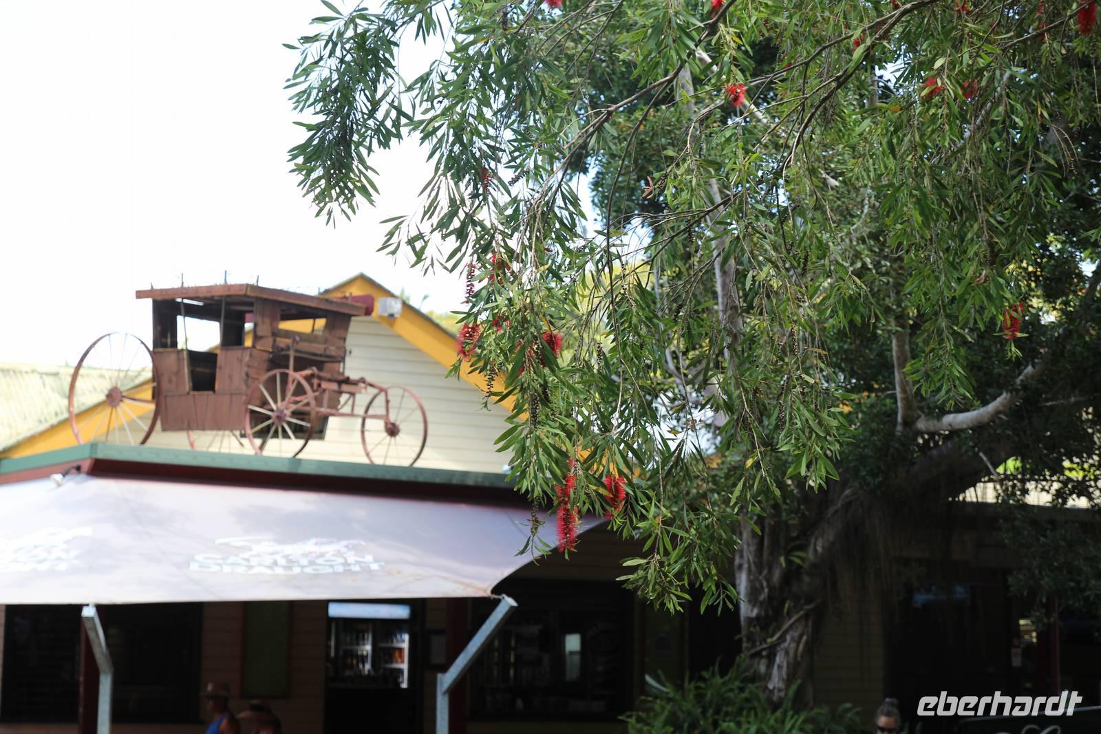 Danach ging es weiter mit der Skyrail. Die Seilbahn brachte uns auf der ersten Strecke zunächst zum Red Peak, dem höchsten Punkt der Seilbahn, zu dem wir schon knapp 15 Minuten unterwegs waren. Hier unternahmen wir einen kleinen Spaziergang durch den Regenwald, bevor es mit der Seilbahn weiter ging. Auf der weiteren gut 30minütigen Fahrt über den Dächern des Regenwalds kamen wir auch schon an den Barron Wasserfällen vorbei. An der Station fuhren wir aber vorbei, da wir die Wasserfälle schon auf dem Rückweg nach Cairns im Plan hatten. So erreichten wir dann zu späteren Mittagszeit das Örtchen Kuranda. Zur Eingewöhnung an die Heimat fanden sich auch einige in einem deutschen Lokal ein, wo es die typisch deutschen Würste und natürlich auch deutsches Bier gab. Die weitere Zeit nutzten wir dann hier noch ein wenig zum Bummeln und für die letzten Andenken.