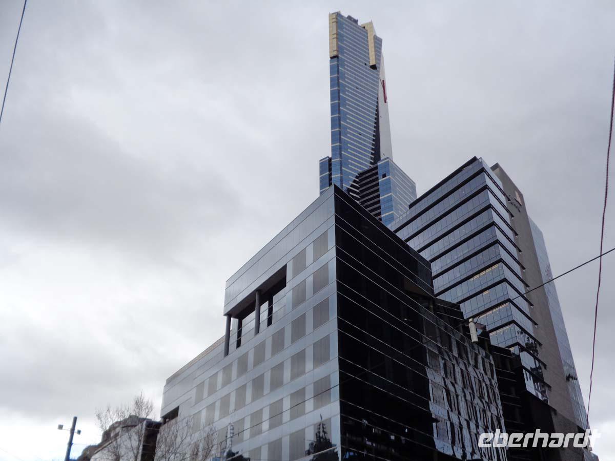Nach dem Fürhstück an Board landen wir schon gegen kurz nach 6 Uhr morgens in der Hauptstadt des Bundelandes Victoria. Wir sind angekommen. Die Einreise verläuft völlig problemlos und schon nach kurzer Zeit empfängt uns Kirstin, um uns auf dem Transfer zu Hotel zu begleiten. Wir werden sie heute Mittag wieder sehen. Wir beziehen erst einmal unsere Zimmer im Hotel mitten in der City. Unschlagbar zentral liegt unser Hotel. Doch wir nehmen uns etwas Zeit bevor wir direkt nebenan in den Eureka Tower gehen. Ein Lift katapultiert uns hier in den 88. Stock auf eine Aussichtsplattform, von wo aus wir die Stadt bestens überschauen können. Mittags treffen wir Kirstin wieder und beginnen unsere Stadtrundfahrt durch Melbourne. Diese führt uns zunächst zum Victoria Market, einem der größten Märkte Australiens, wo wir alles an Lebensmittel finden, was der Australische Boden und das Meer hergibt. Natürlich noch vieles mehr vom Nippes bis zum Haushaltsgerät. Nach einem Stopp am Melbourne Museum und der historischen, königlichen Ausstellungshalle in einem Viertel, dass sehr schöne alte Häuser aufweist, besuchen wir die Patrics Cathedral. Von hier aus sind es nur ein paar Schritte in den Fitzroy garden, in welchem sich das Cooks Cottage befindet. Thomas Cook betrat ja 1770 als erster Europäer diesen Kontinent. Als das Haus seiner Eltern in England zum Verkauf stand, schlug Melbourne zu und ließ es kurzer Hand ab-, und in Australien wieder aufbauen. Hier erwischt uns ein kräftiger Regenschauer, jedoch können alle noch rechtzeitig in das Cafe flüchten und bei Kuchen und einem Getränk den Platzregen überbrücken. Nach der Fahrt am Olympiagelände vorbei erklimmen wir noch den Shrine of Rememberence, ein Denkmal für die Gefallenen der Weltkriege. An der Oper vorbei, reisen wir durch die Flinders Street im Central Buisines District zurück zu unserem Hotel. Wir gehen abends 5 Minuten zu Fuß zu einem recht berühmten Restaurant direkt am Fluß. Hier muss man Tische vorbestellen, sonst wartet man lange bis einer frei wird, oder gar vergebens. Das Essen ist eine Wucht sehr lecker und sehr reichlich. Vor allem der Lachsspieß und des Rumpsteak sind eine Wucht. Sehr lange dehnen wir den Abend jedoch nicht aus. Der Jetlag schlägt zu und der Schlafmangel macht sich doch mitunter bemerkbar.