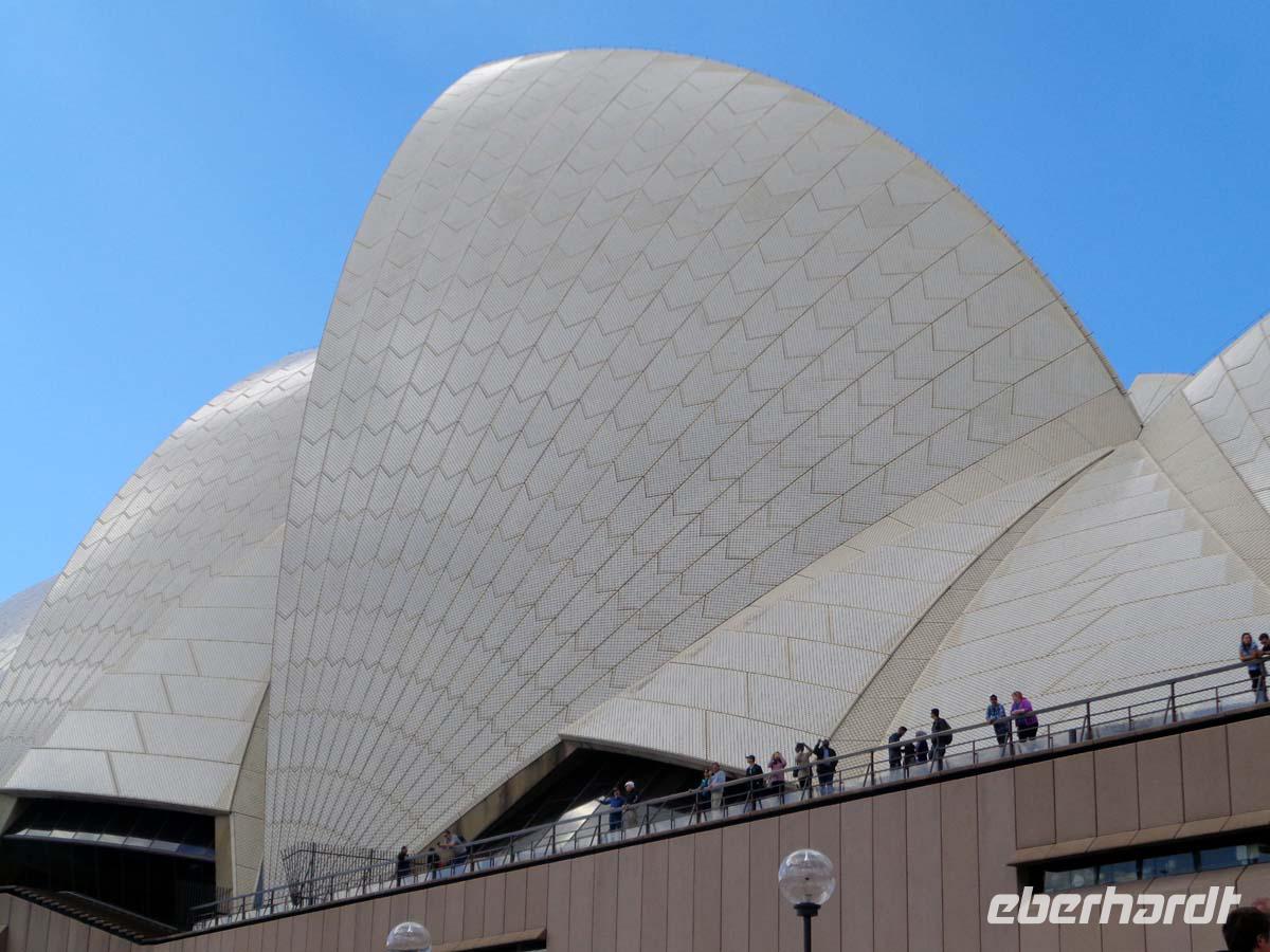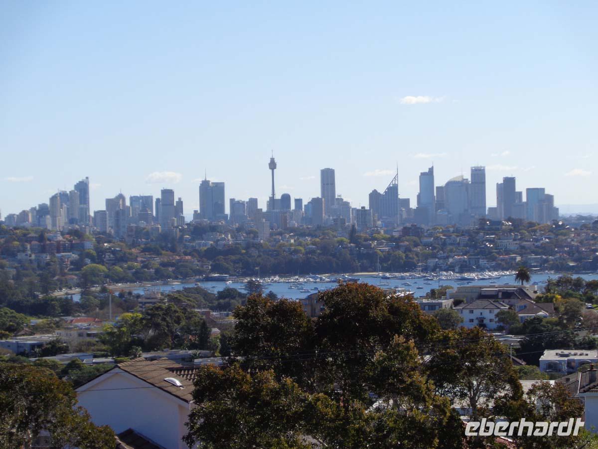 Nur eine gute Stunde fliegen wir heute nach Sydney. Die Metropole mit fast 5 Millionen Einwohnern empfängt uns bei strahlendem Sonnenschein. Die Temperatur ist schon etwas milder als in Melbourne. Unsere Gästeführerin steht schon mit Stadtplänen für uns bereit und so unternehmen wir zuerst eine ausgedehnte Stadtrundfahrt. Zunächst reisen wir zum weltberühmten Bondi Beach mit herrlichem feinen Sand und nehmen im dortigen Kaffee einen kleinen Snack zu uns. Weiter geht es zum Aussichtspunkt Dover Hights mit schönem Blick auf die Skyline. Durch den Stadteil Paddington erreichen wir South Head mit Blick auf Sydneys Hafeneinfahrt und danach Mrs. Macquarries Point direkt gegenüber der Oper und der Harbour Brigde, unter welcher wir ebenfalls noch einen Stop einlegen. Durch das historische Viertel The Rocks und am Darling Harbpour mit dem Aquarium vorbei erreichen wir am Abend unser Hotel und lassen uns das Abendessen schmecken..