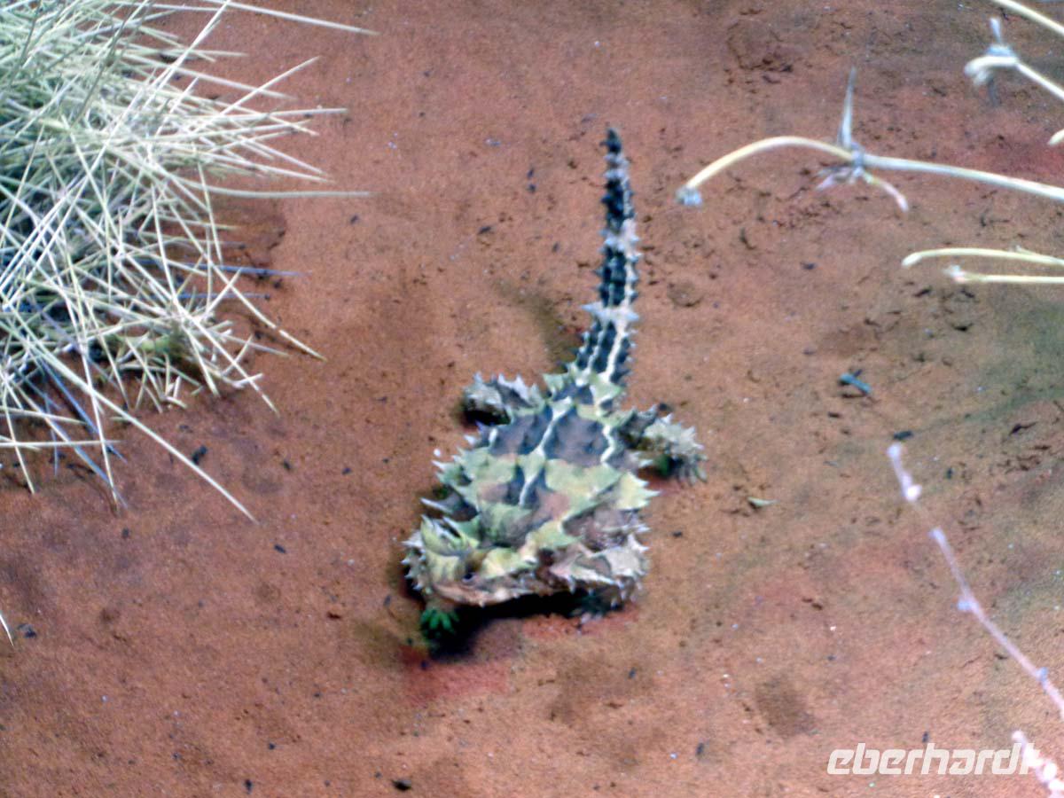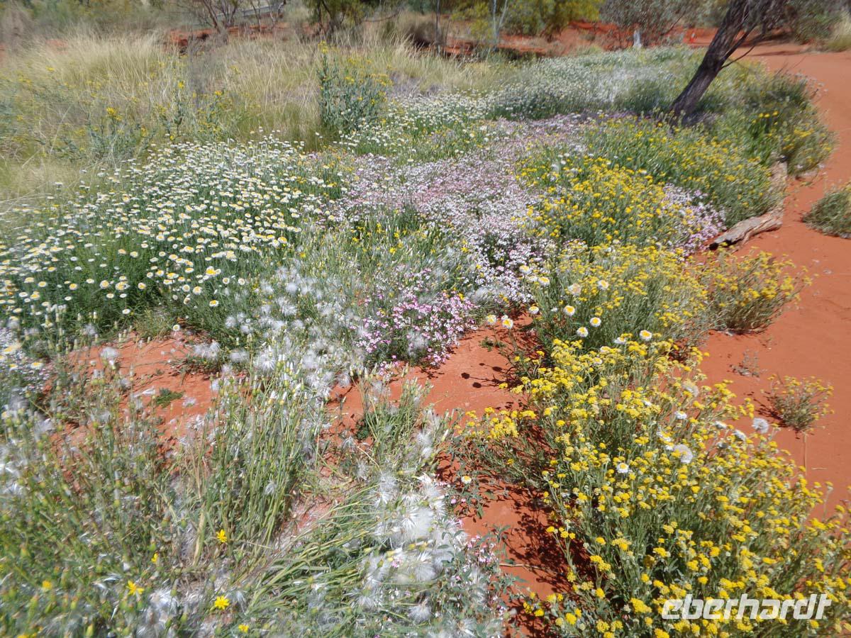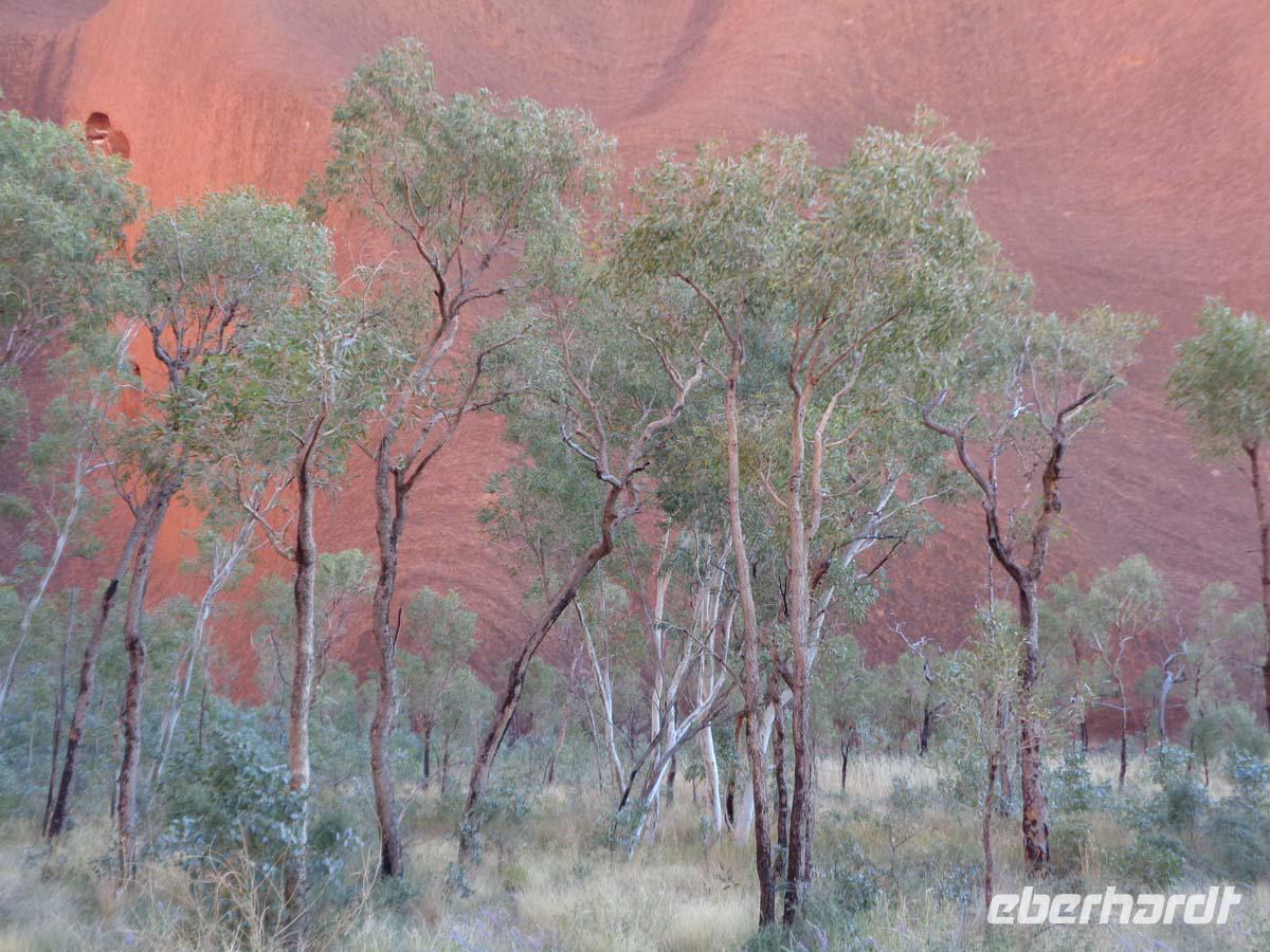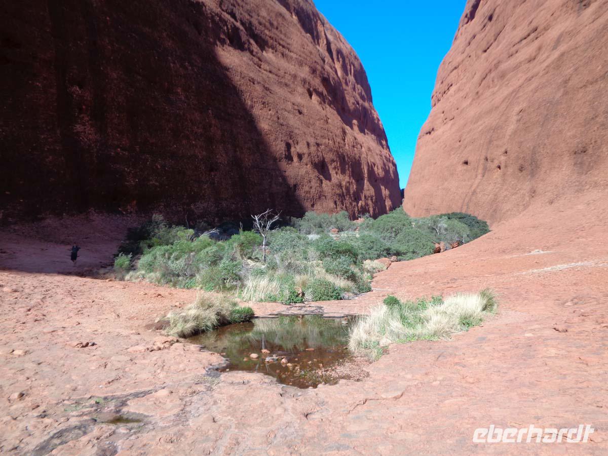 Der Vormittag steht im Zeichen des Desert Parks, in dem verschiedenen Tier- und Pflanzenarten vorgestellt werden. Gleich zu Beginn zieht eine Flugschau die Besucher an. Man kann sich wunderbar in der weitläufigen Anlage ergehen und viel über die Natur erfahren. Auch ein Nachttierhaus gibt es und es erstaunt, was sich des Nachts so alles draußen tut. Australien besitzt die giftigsten Spinnen und Schlangen der Welt. Wir bekommen sie gottlob nur hinter Glas zu Gesicht. Am frühen Nachmittag zeigt uns Carsten eine Schlucht namens Standley Chasem. Der Weg hindurch ist nicht anstrengend. Ein Mittagessen im nahe gelegenen Restaurant rundet den Besuch ab. Ein zweiter Spaziergang findet an einem ausgetrockneten Flußbett statt. In diesem stehen große Bäume namens Red River gum. Wasser muss sich also noch im Untergrund befinden. Leider halten die Wallabys, also die kleinen Felsenkängurus wohl gerade Mittagsschlaf. Theoretisch sollte man sie hier erblicken können. Aber wir haben ja keinen Termin mit ihnen vereinbart. Die Landschaft ist trotzdem wunderschön. Simpson Gap heißt dieser verwunschene Platz. Nachmittags sind wir schon wieder in der Stadt. Hier besichtigen wir noch die alte Telegraphenstation, quasi die ehemalige Verbindung zur Außenwelt. Einige gehen danach noch gucken und shoppen, andere nutzen die Gelegenheit zu einem erfrischenden Bad im Pool.