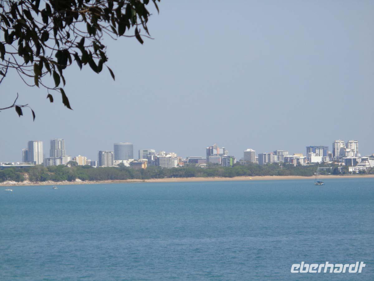 Bevor wir Alice Springs verlassen, besuchen wir noch zwei Besonderheiten, die den weiten Entfernungen im dünn besiedelten Outback geschuldet sind. Zu einen ist dort die School oft the air zu nennen, in der die Kinder zu Hause über Bildschirm unterrichtet werden. Sie treffen sich in der Regel nur 2 mal im Jahr. Ähnlich wichtig sind die Flying doctors. Mit ihren Maschinen fliegen sie zu den entferntesten Farmen, wenn dort jemand Hilfe braucht. 1928vom Missionar John Flynn gegründet, finanzieren sie sich über staatliche Zuschüsse und Spenden. Auch wir fliegen heute wieder. Unser Flug bingt uns nach Darwin ganz im Norden des Kontinents. Dort werden wir schon von Esther erwartet, die uns mit einer Rundfahrt zunächst einen groben Überblick über die Stadt gibt. Darwin wurde mehrmals durch Zyklone stark zerstört und so ist die Bebauung der Stadt sehr neu und mehr oder weniger funktional. Wir nutzen den Nachmittag um durch das Zentrum zu schlendern, das sehr stark auf Rucksacktouristen eingestellt ist. Im Coles Supermarket decken wir uns mit allem ein, was man noch so braucht und nehmen heute unser Abendessen im Hotel zu uns.