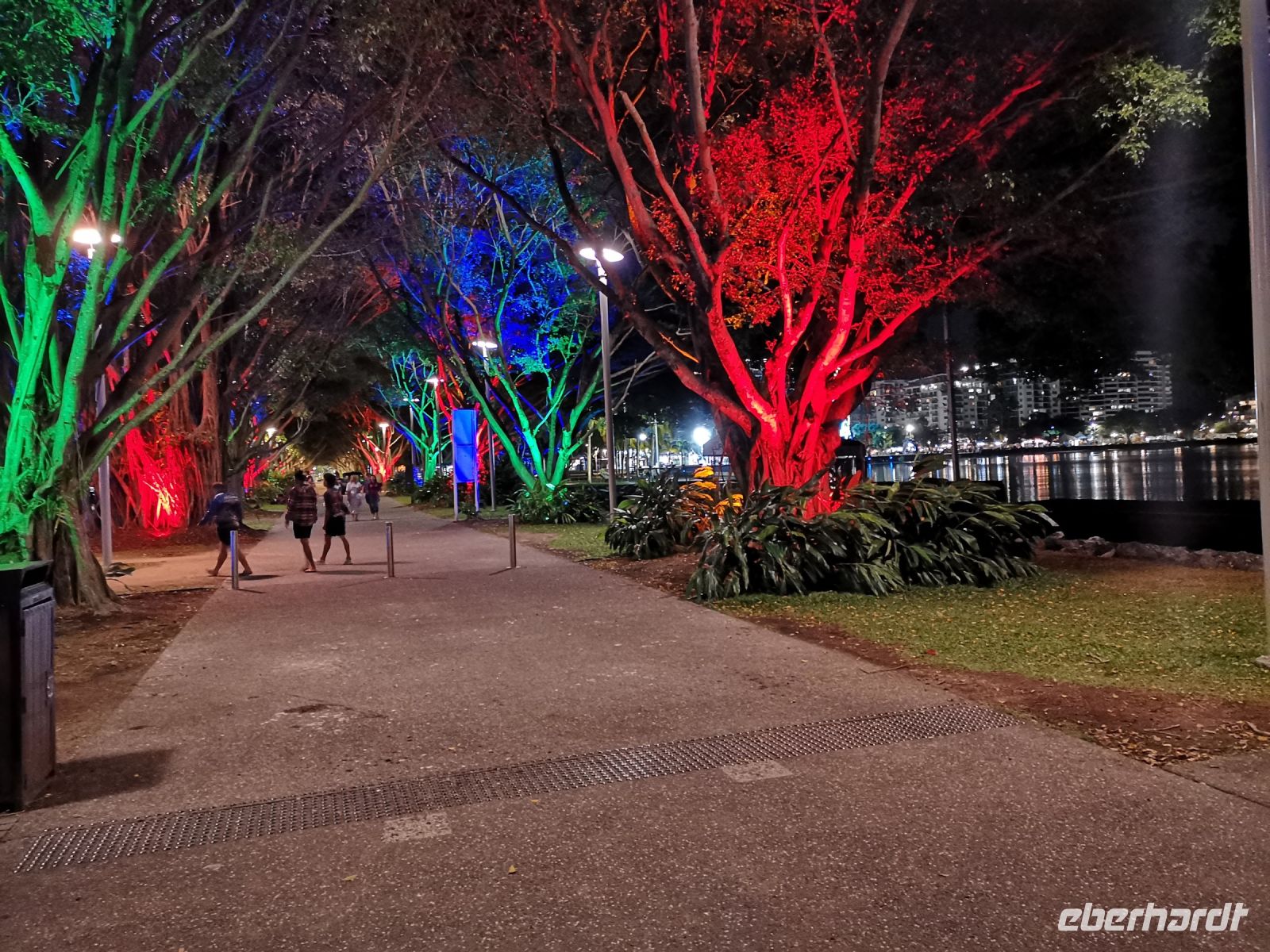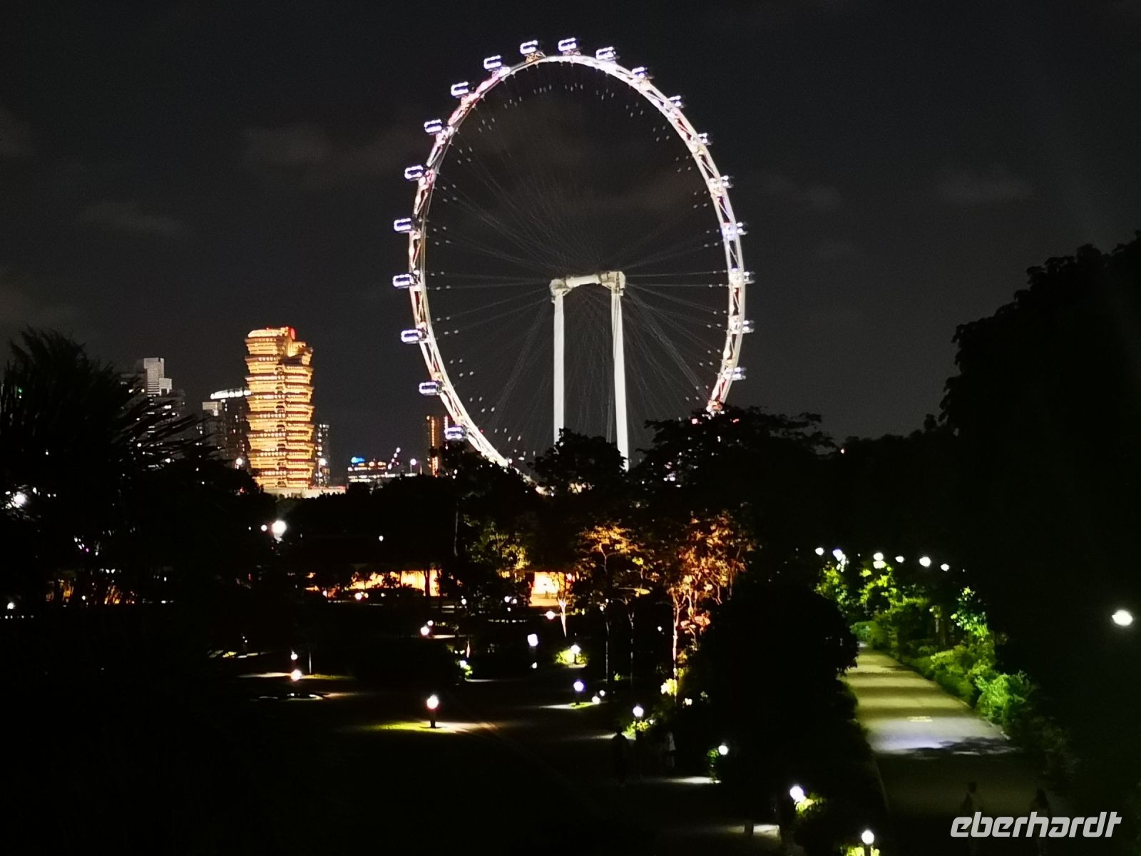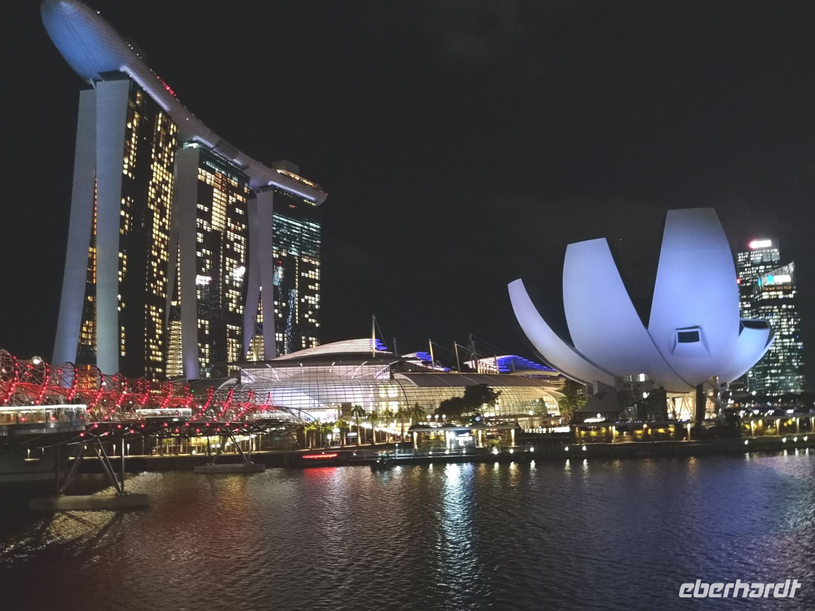 Eine wunderschöne Lichtershow mit Wasserfontänen, untermahlt mit passender Musik, fand auf der Wasserfläche vor dem Marie Bay Sands Hotel statt. Singapore hat viele Tagesgäste die auf der Durchreise hier einen Stopp machen und sich diese allabendliche Show ansehen. Nur 45 min später startet auf der Seite hinter dem Hotelkomplex die nächste Lichtershow, im „Garden by the Bay“. Hier werden die monumentalen, künstlichen Bäume des Gartens, die sogenannten Supertrees, als Objekt für diese Show genutzt.