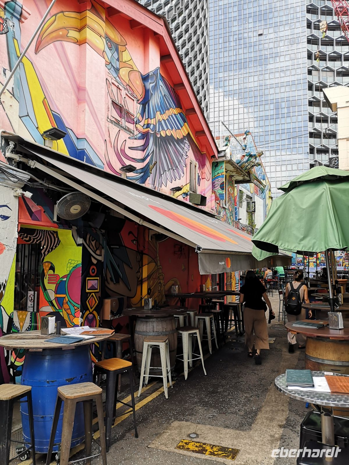 Wir machen einen Spaziergang durch Chinatown, besuchen den Thian Hock Keng Tempel, der der älteste buddhistische Tempel Singapore ist. Der Tempel ist sehr prachtvoll mit vielen unterschiedlichen Buddha Abbildungen geschmückt. Nach dem Rundgang durch den Tempel, tauchten wir in die Vielfalt der angebotenen Speisen Singapore‘s ein. Gegenüber befindet sich ein Hockercenter, Food Corner mit der ganzen Vielfalt an Speisen die Singapore zu bieten hat. Wir schwärmten aus zu den Ständen, an jeder Ecke kamen uns andere Gerüche und Gewürze in die Nase. Jeder entschied sich für ein Gericht, entweder mutig nach seiner Intuition oder wissend mit der Erfahrung früherer Reisen. Wir trafen uns an gemeinsamen Tischen, jeweils mit unterschiedlichen Gerichten und berichteten uns gegenseitig wie das den so schmeckt. Aber wie ich beobachten konnte, waren alle Gerichte lecker und interessant.
