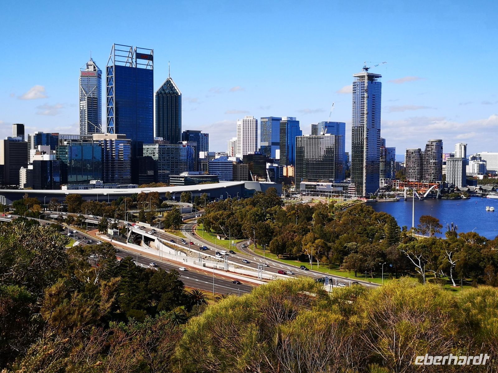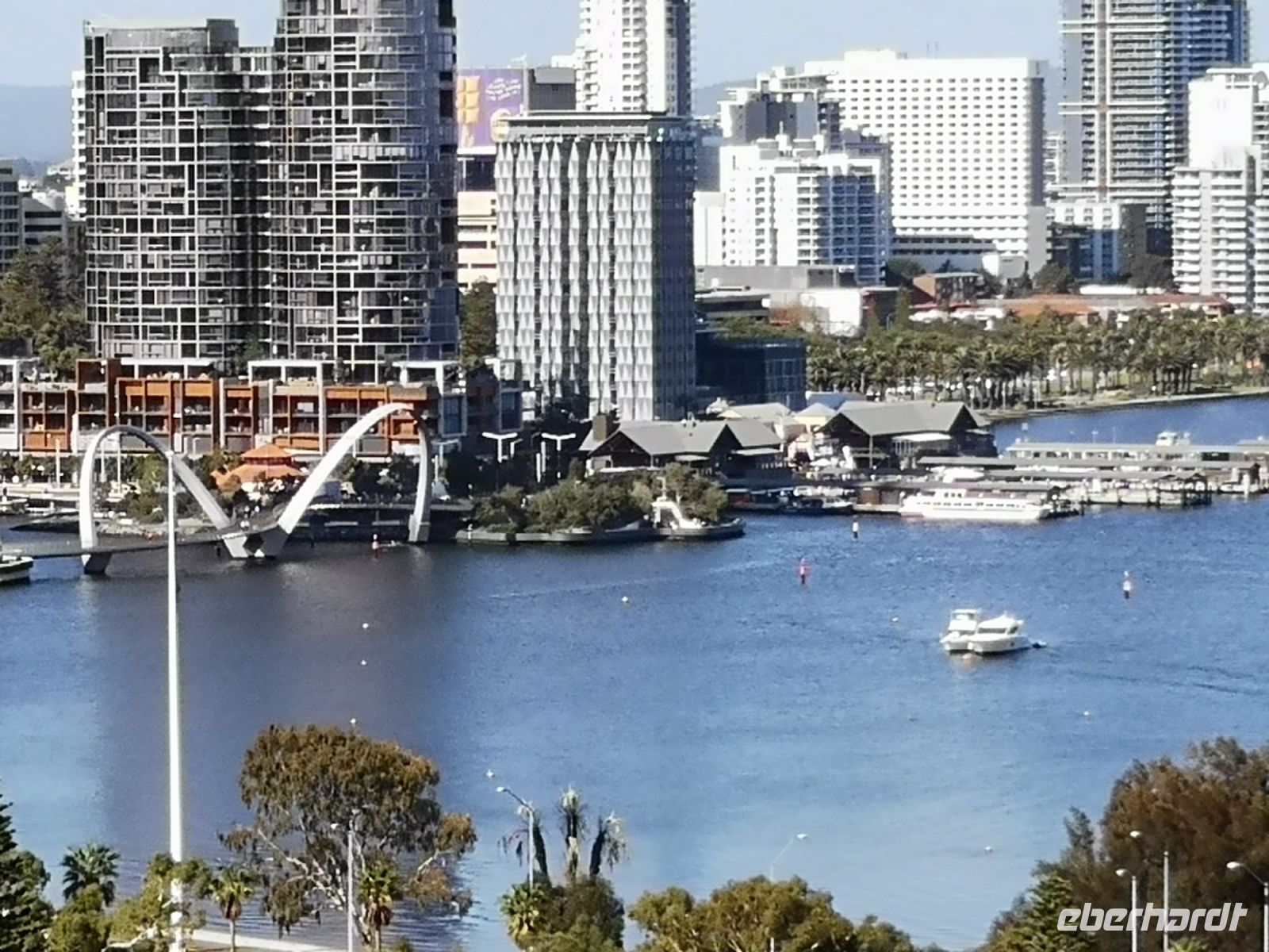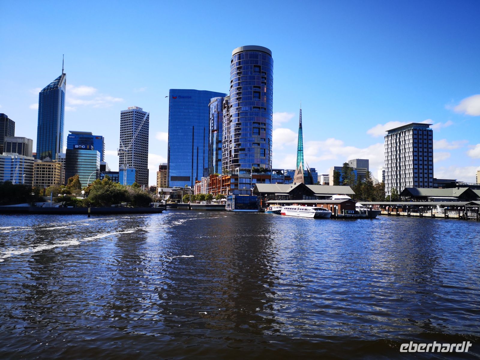 Nach diesem schönen Besuch der kleinen Stadt wollen wir uns erneut der Hauptstadt von Western Australia annähern, aber diesmal legen wir von der Flussseite in Perth an. Auf dem Swan River nähern wir uns der eindrucksvollen Skyline und dem Bankenviertel der Stadt. Den Reichtum der durch die Gold- und Mineralminen in die Stadt kommt, ist deutlich zu erkennen. Das Einkommen der Minenarbeiter ist fast 3 mal so hoch als das Durchschnittseinkommen in anderen Branchen. Die Waterfront an der wir anlegen, hat sich in den letzten Jahren zur Geschäftsmaile der Stadt entwickelt. Die Skyline ragt in die Höhe und bietet selbst herrliche Aussichtsplatze auf den Swan River. Der River der hier so breit ist wie ein großer See, bietet den Einwohner der Stadt die Möglichkeit ihren Wassersport direkt vor der Haustüre auszuüben. Auf dem Wasser tummeln sich Windsurfer und elektrisch angetrieben Surfboard, teilweise über dem Wasser schwebend durch ihre angebauten Wing Foils. Ebenso ziehen klassische Segler den Fluss entlang, die sich auf die nächste Regatta vorbereiten. Hier gibt es jede Menge Wasserspaß.