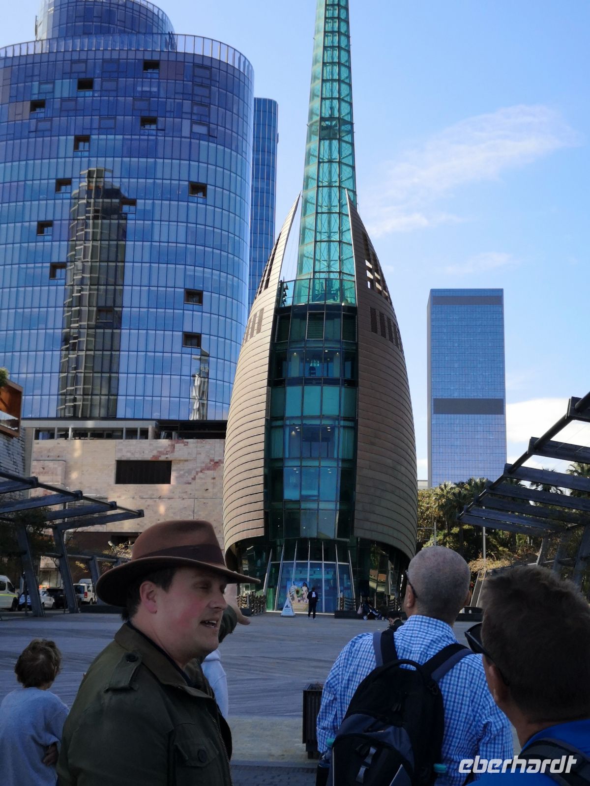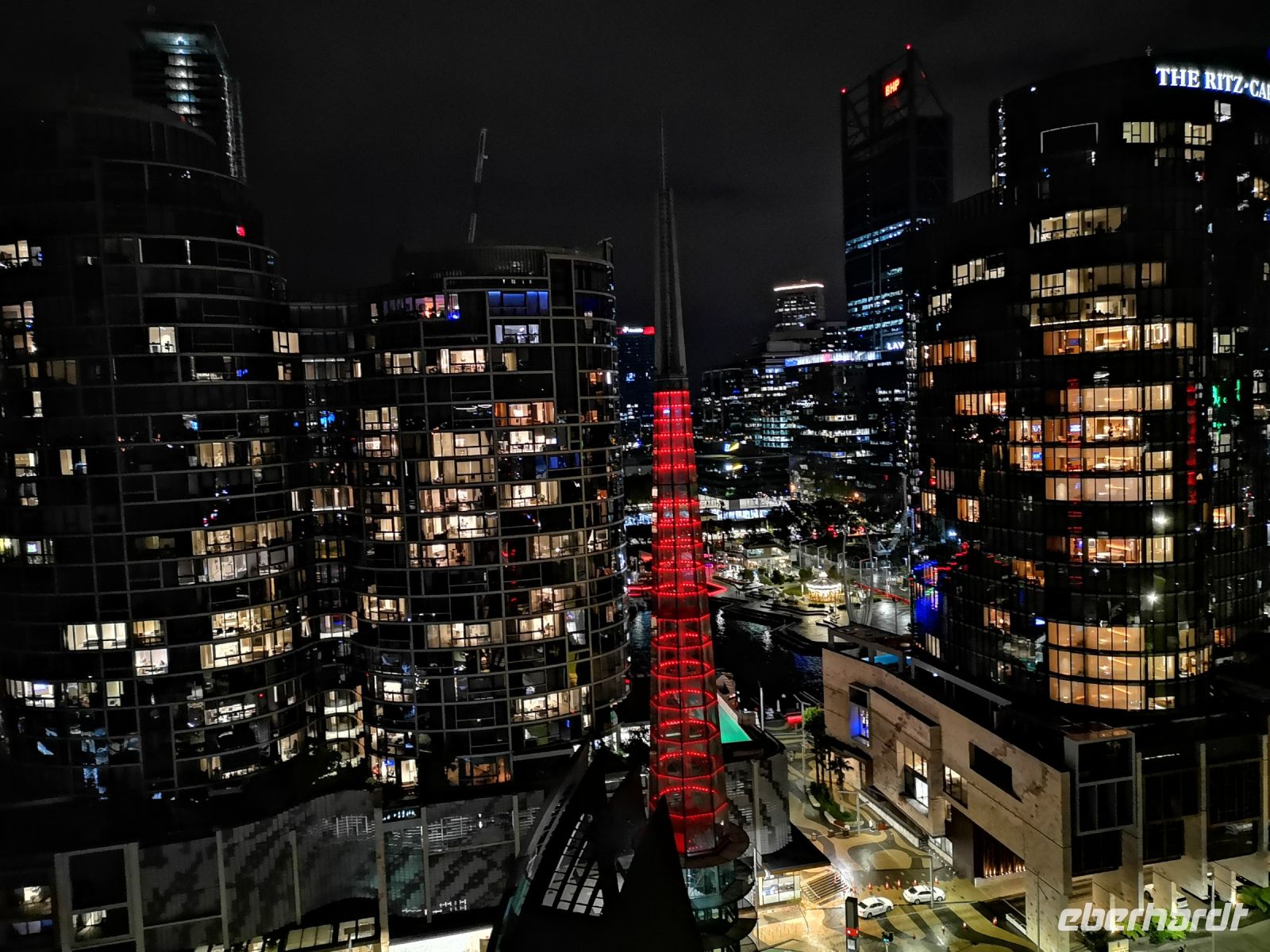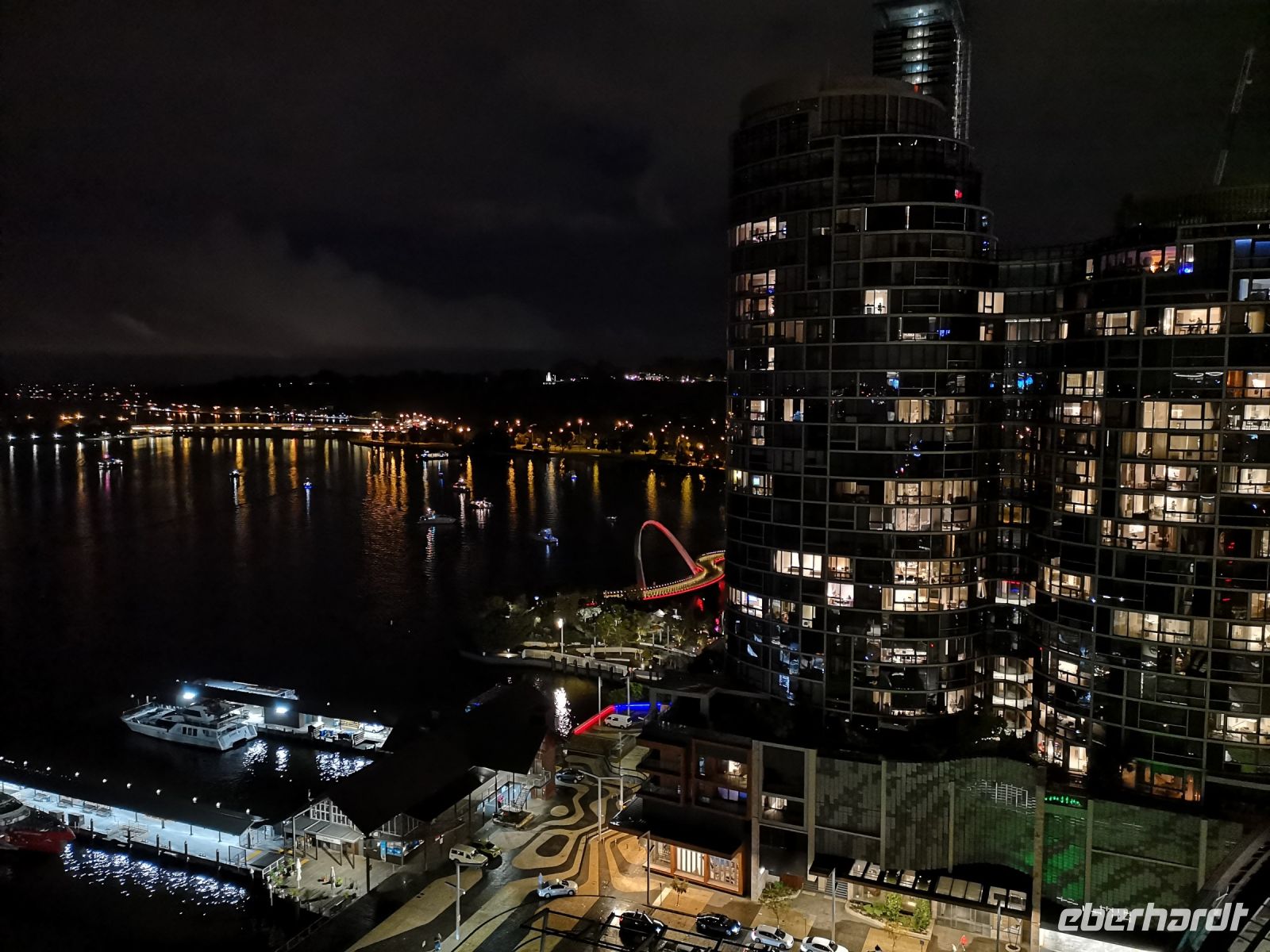 Am Elisabeth Quay, am Hafen und beim Bell Tower bietet sich die Aussichtsbar im obersten Stock des Double Tree Hotels an, eine herrliche nächtliche Übersicht über die Waterfront zu bekommen. Hier oben trift sich an diesem Samstagabend die Partygesellschaft von Perth. Ein schöner Ort um den Australiern etwas näher zu kommen.
