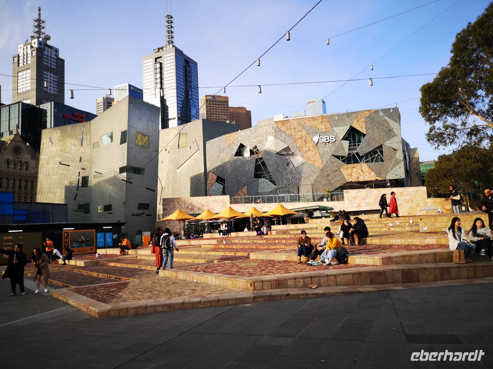 Zum frühen Abend beziehen wir unser Hotel, das nur einen Steinwurf entfernt vom Eureka-Tower gelegen ist. Zeit für Müdigkeit und die Hingabe zum Jetlag wollen wir uns nicht nehmen. Stattdessen treffen wir uns, nach dem Einzug ins Hotel, auf einen kleinen Spaziergang, entlang dem Yarra-River, der mitten durch Melbourne fließt und genießen ein wunderbares Abendessen in einem italienischen Restaurant.