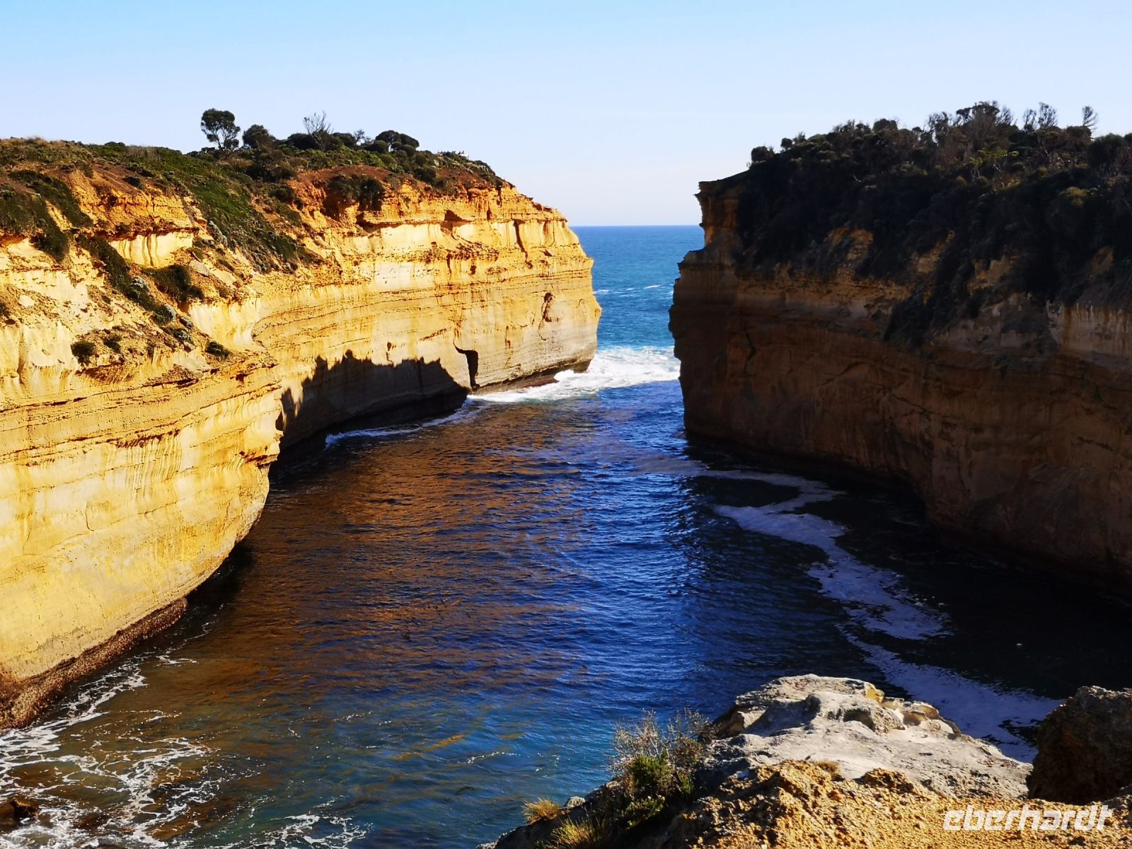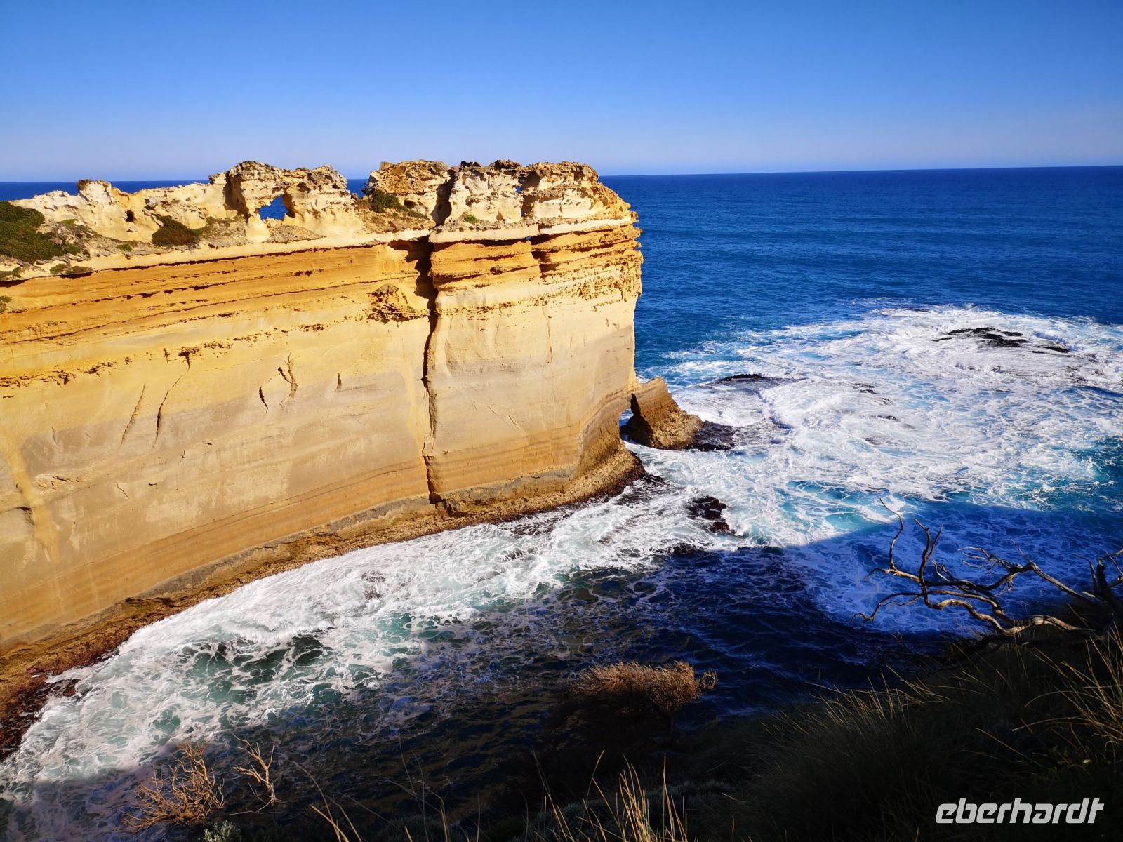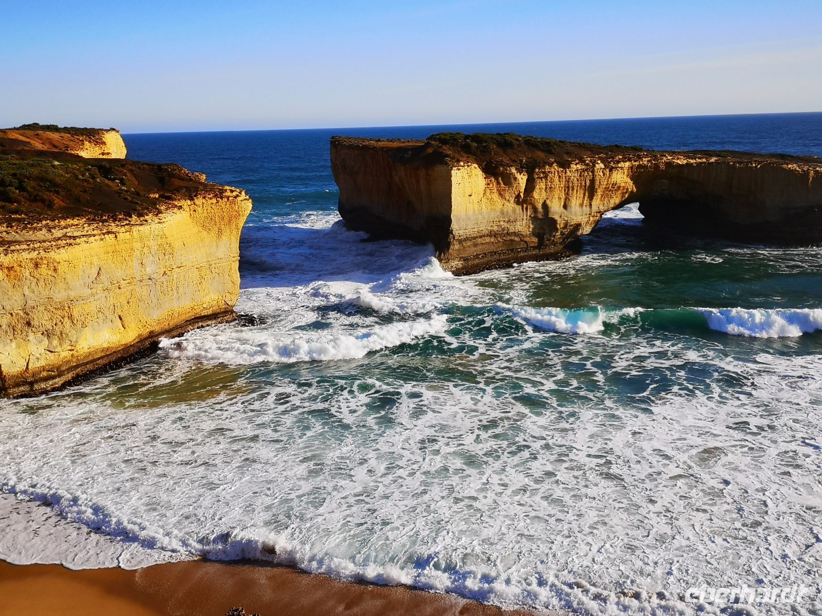 Ein historisches Ereignis vom Jahre 1878 kann man hier nachempfinden, dem Untergang der Loch Ard, die nach 3-monatiger Seefahrt, von England auf dem Weg nach Melbourne, hier vor einer Insel auf Grund lief und sank. Von den 54 Passagieren überlebten nur 2, der Schiffsjunge Tom Pearce und die Irin Eva Carmichael. Beide wurden vor den Klippen in eine Bucht gespült und durch Milchbauern der Küste gerettet. Zwei der Pfeiler die an dieser Bucht stehen werden nach den Schiffsbrüchigen benannt, Tom und Eva.