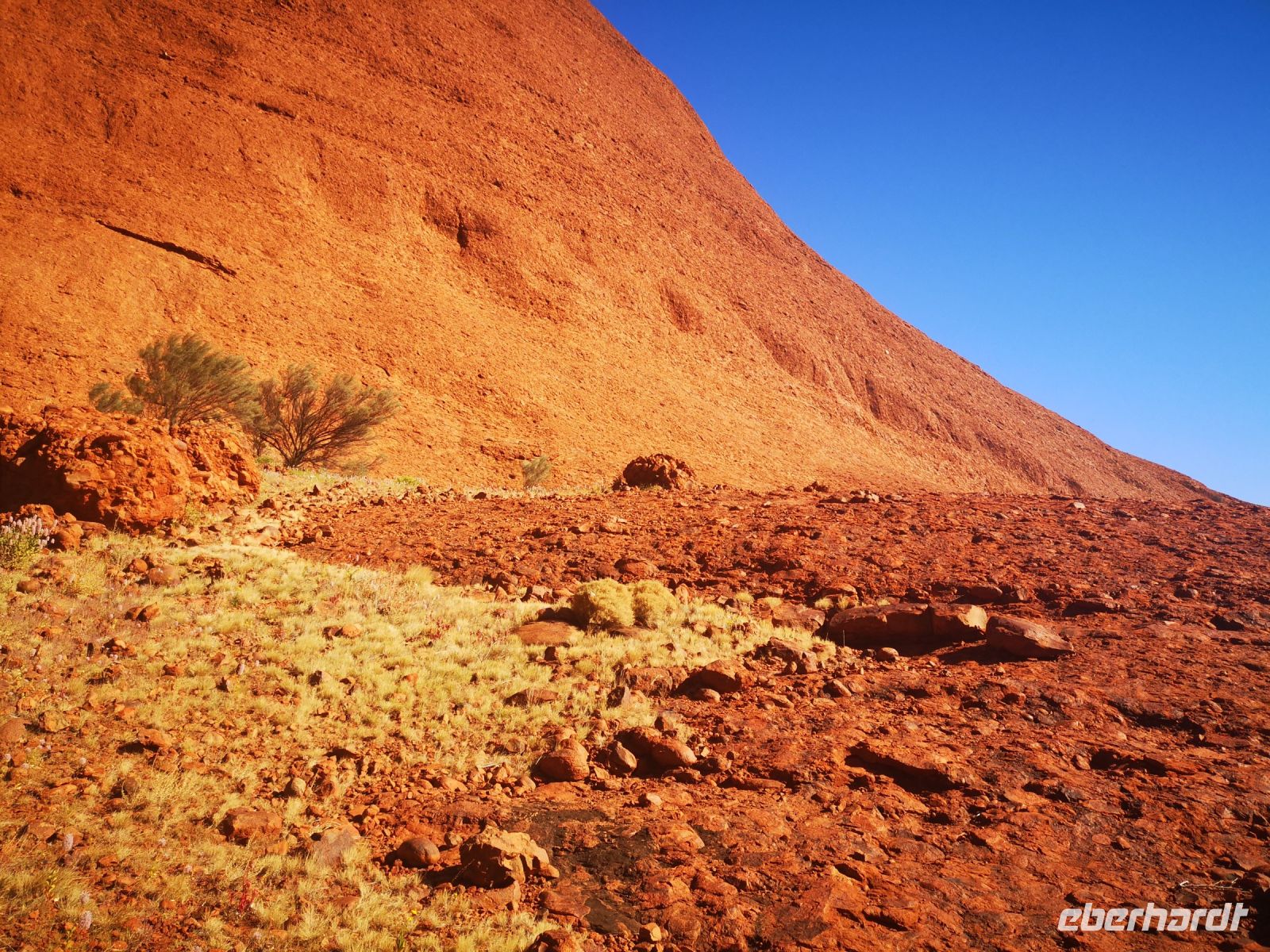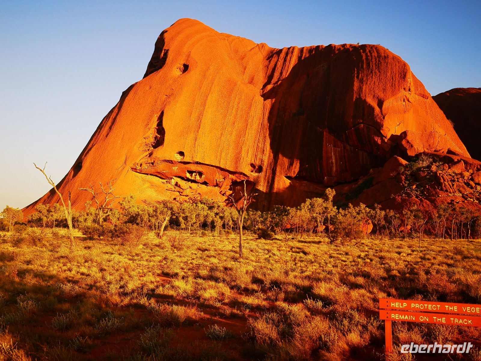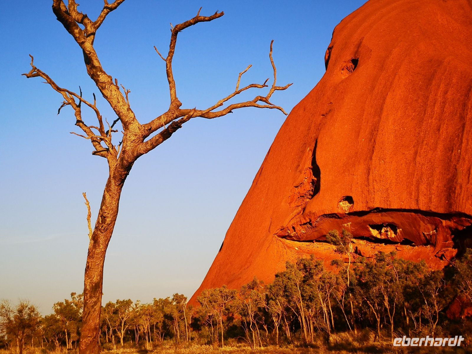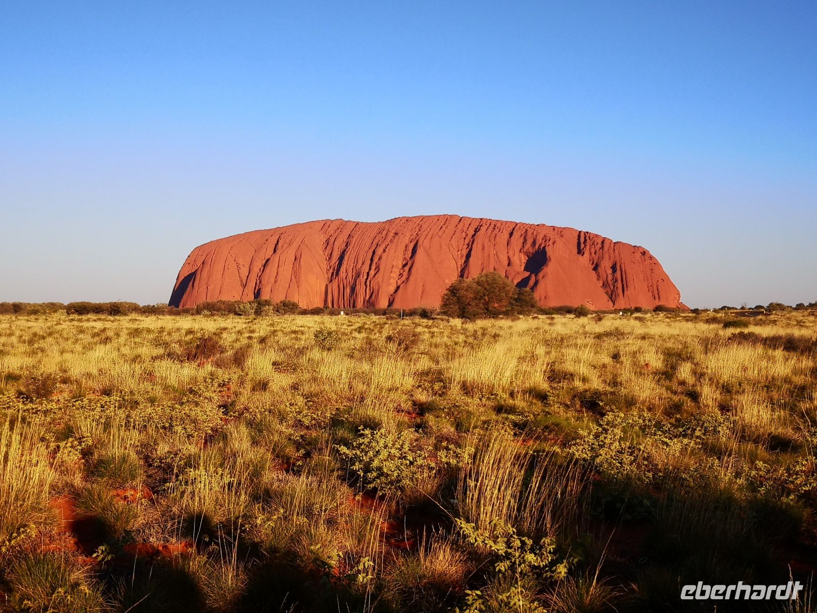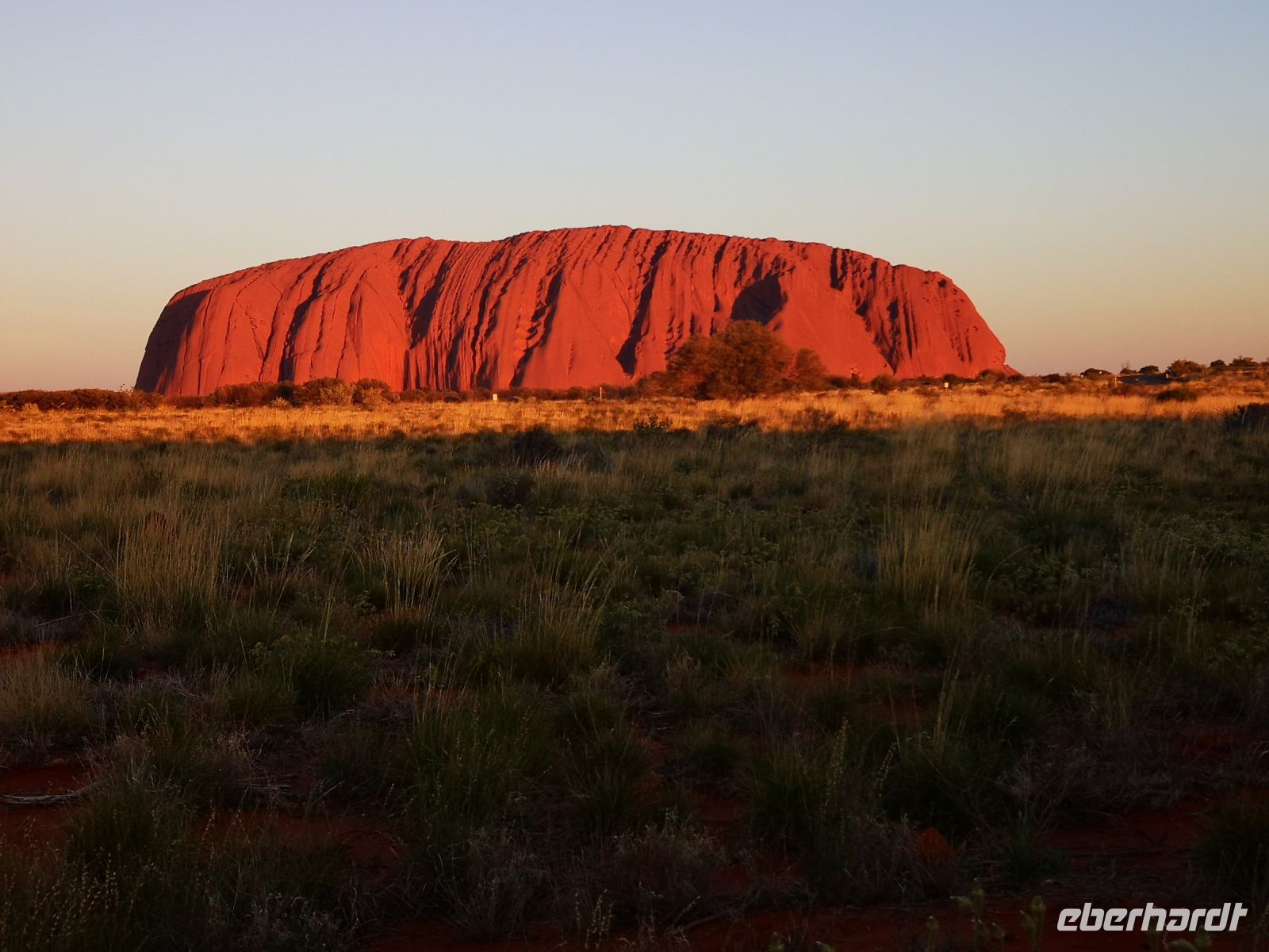Die Rotfärbung des mächtigen Felsen wird immer stärker, und bei stahlblauem Himmel entfaltet sich diese Wirkung uneingeschränkt.