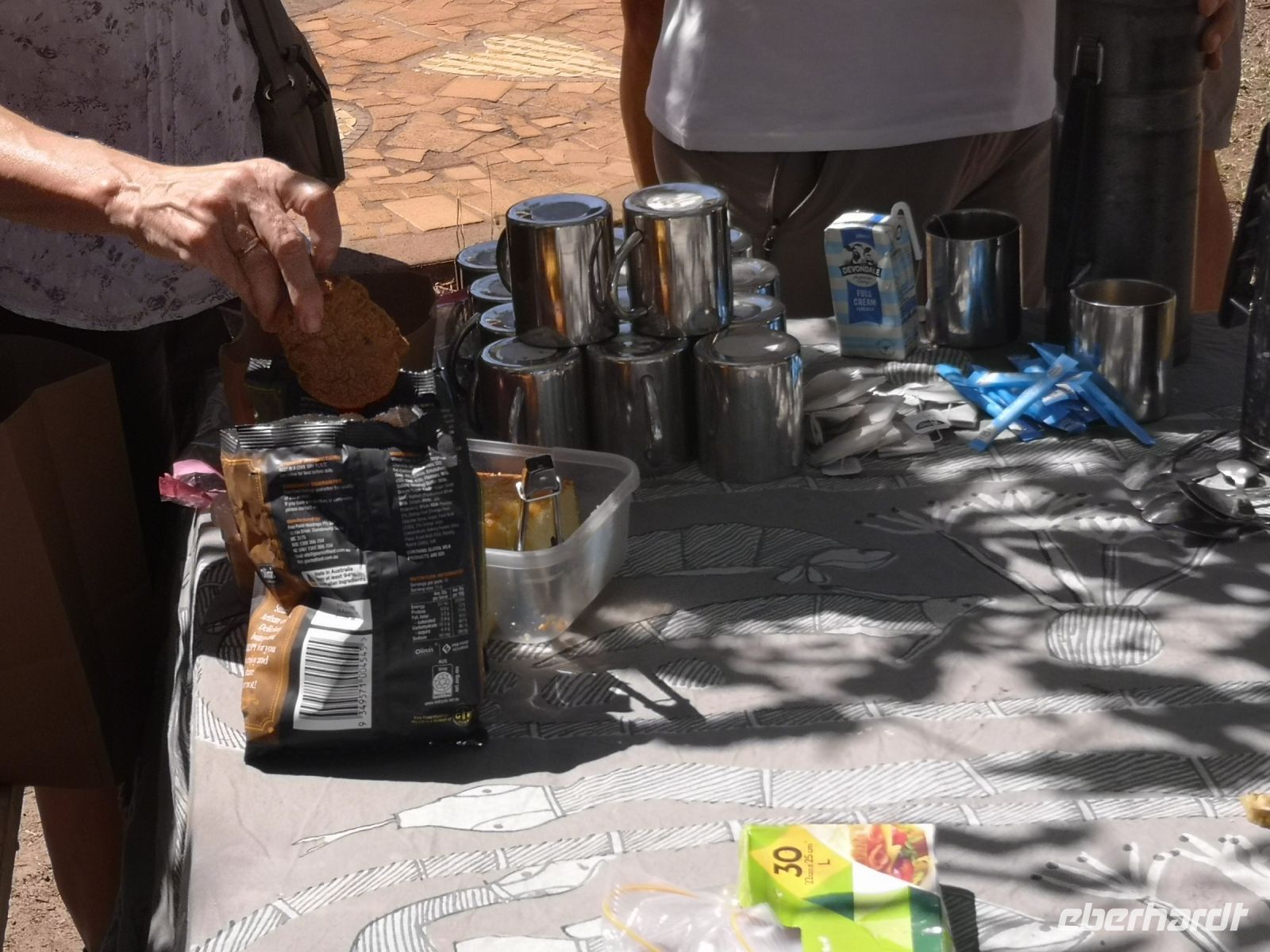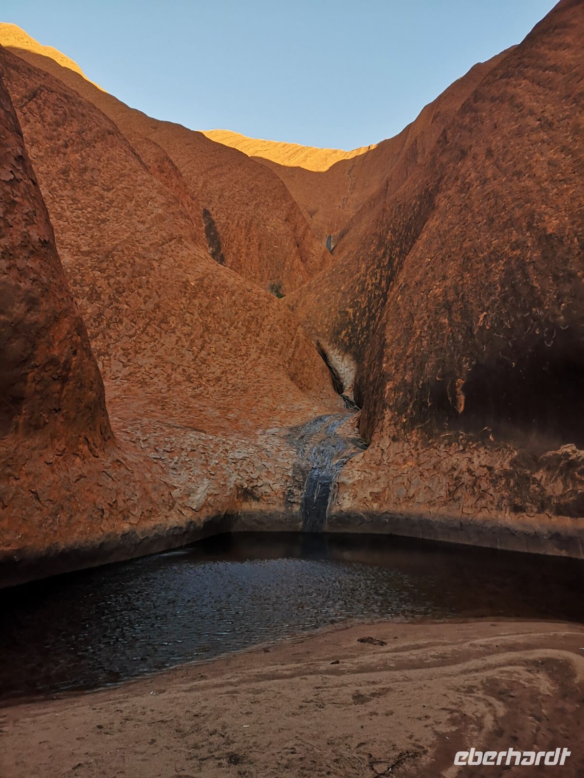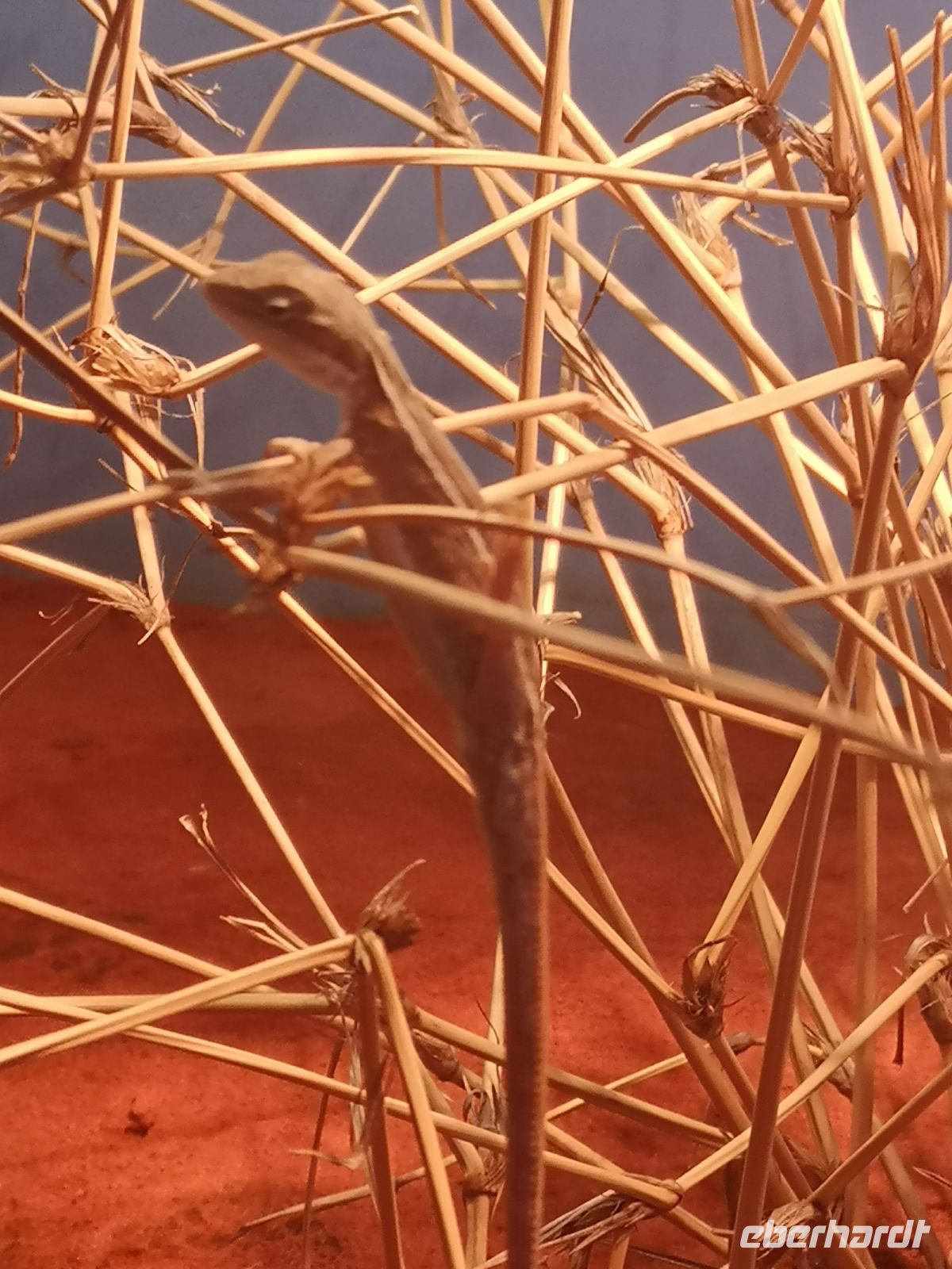 Eva ist Österreicherin, lebt seit vielen Jahren im Outback und fast 10 Jahre in Alice Springs, und weis wann und wie man an welchen Ort geht, um mit den Extremen wie Sonne, Wind, Hitze und Kälte und nicht zu unterschätzen die Trockenheit zurechtkommt. Bei Luftfeuchtigkeit von ca. 10% verliert der Körper sehr schnell viel Wasser ohne das man schwitzt. Das Mitführen von Wasser ist hier unabdingbar. Aus diesem Grund hat Jim unser Busfahrer einen großen Wassertank im Gepäckfach, wo jeder von uns seine Trinkflasche nachfüllen kann. Um länger in dieser Umgebung zu verweilen sind 3 Liter Wasser pro Tag das Minimum. Man spürt wie Nase und Lippen austrocknen.