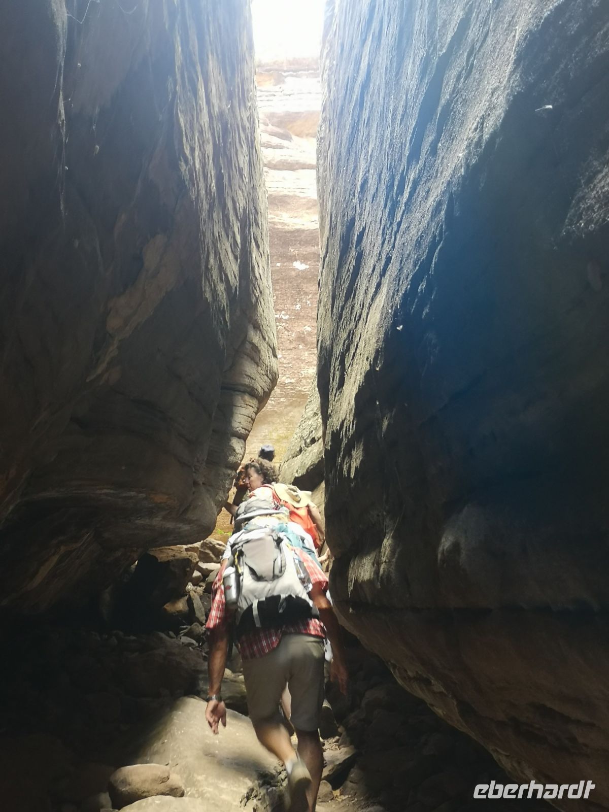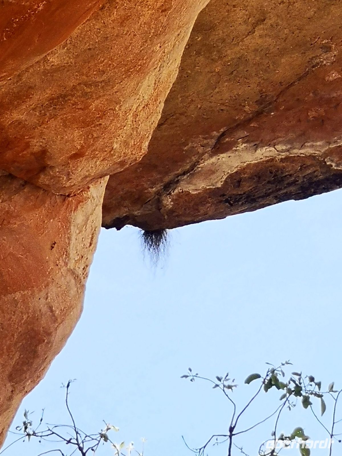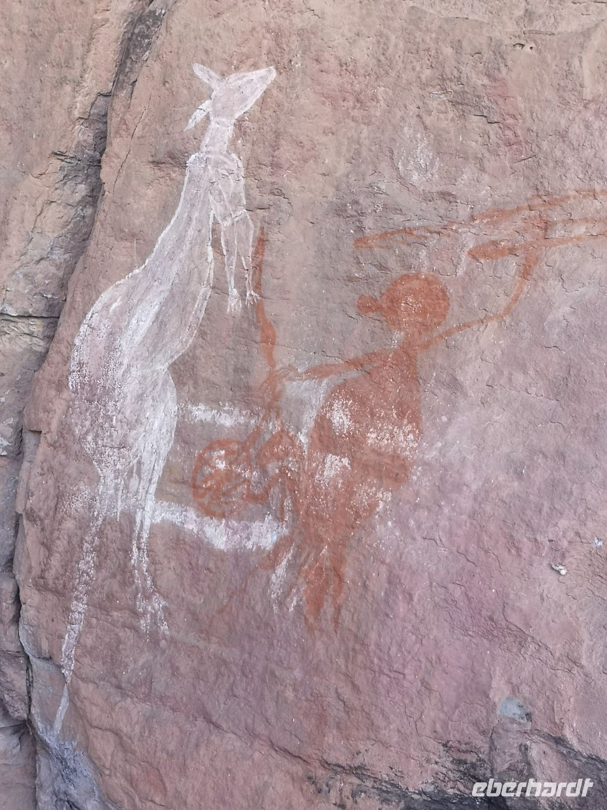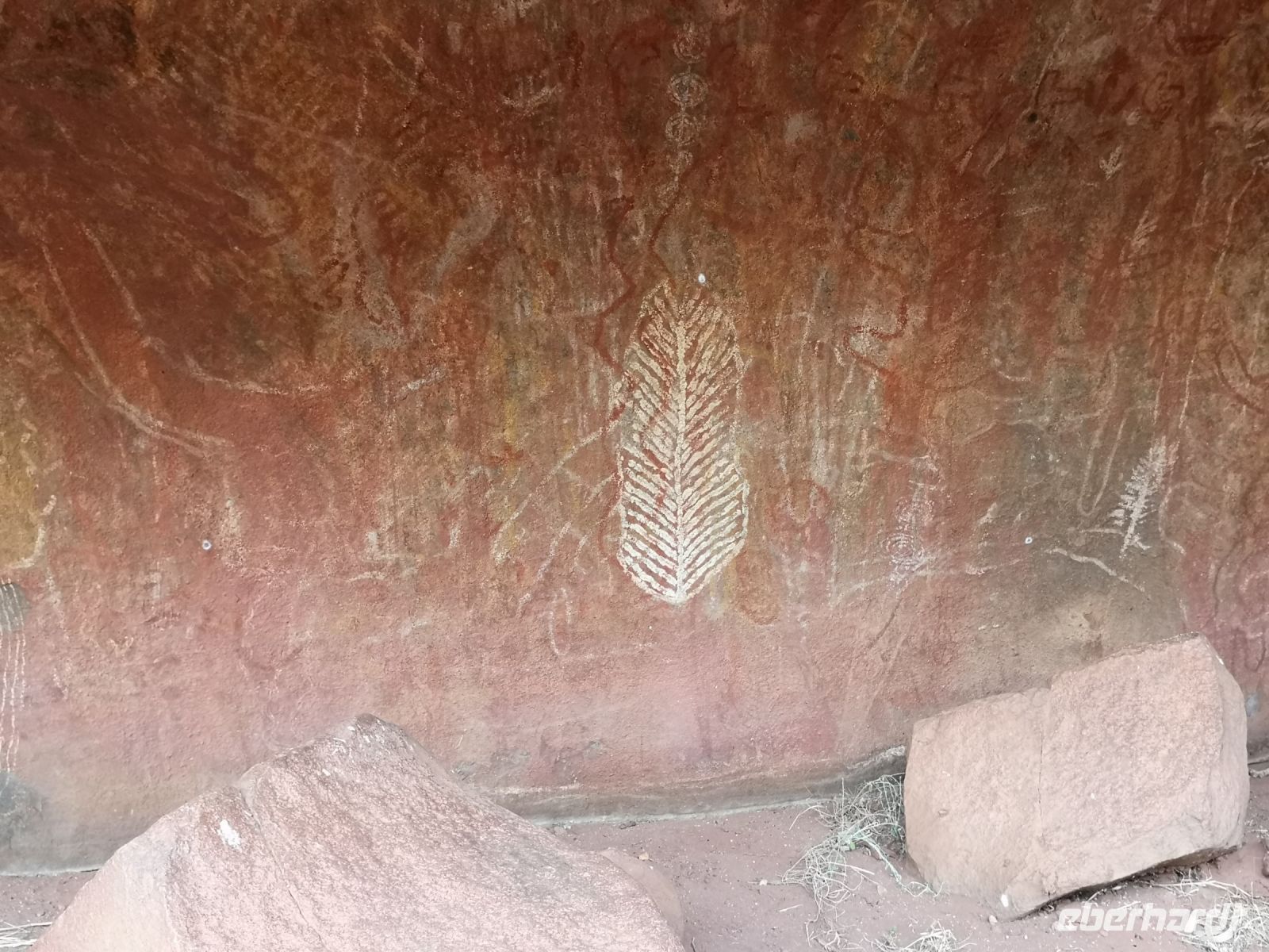 Roland steigt mit uns auf einen heiligen Berg, nahe seinem Dorf. Hier führt er uns zu Orten die für die Weitergabe der traditionellen Werte an die Kinder und Jugendlichen verwendet werden. Felszeichnungen an den Wänden von offenen Höhlen, zeigen die Schöpfungswesen, Jagdszenen und erklärt an welchen Tieren sie sich orientieren für die Bestimmung der Jahreszeiten. So wird das Auftreten einer bestimmten Grillenart als Zeichen genommen, dass es Zeit wird in ein sicheres Lager aufzubrechen um die Regenzeit geschützt zu überstehen. Roland erklärt uns auch die Bestattungsrituale und zeigt uns den Leichnam eines ihrer Verstorbenen, nicht ohne zuvor spirituell um die Erlaubnis zu erbitten, den Raum mit uns zu betreten.