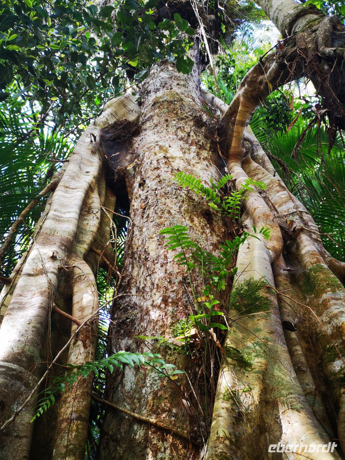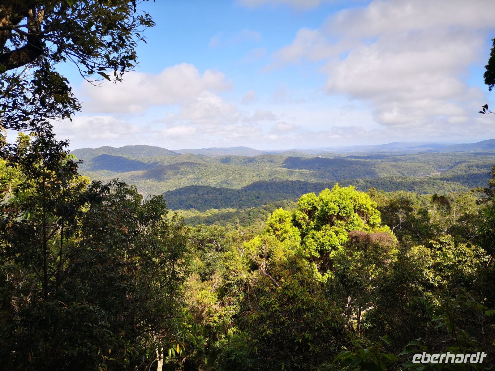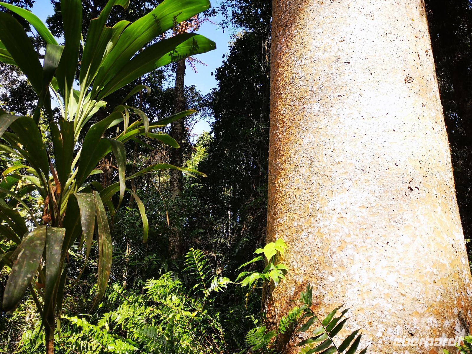 Nach dem wir die Stadt Cairns gestern kennenlernten, geht es heute in das Hinterland der Stadt, in einen Teil des riesengroßen Regenwalds der sich hier an der Küste entlang ausgebreitet hat. Da es keine einfache Möglichkeit gibt den Regenwald auf eigene Faust zu begehen und es auch kaum Wege gibt, bedienen wir uns einer sehr attraktiven Alternative. Wir fahren mit der Seilbahn „Skyrail“ über und in den Regenwald. Es gibt immer wieder Stationen an denen man aussteigen und ein abgegrenztes Gebiet im Wald erkunden kann. Mächtige Baumstämme, 50..70 Meter hoch, bewachsen von schmarotzenden Kletterpflanzen Buschwerk mit Wiederhacken, pragmatisch werden sie als „Wait a while“ bezeichnet, denn immer wenn sich einer der Austriebe mit seinen Widerhaken an der Kleidung festhakt, dann wartet die Person eine Weile, bis er sich von den Haken bereit hat.