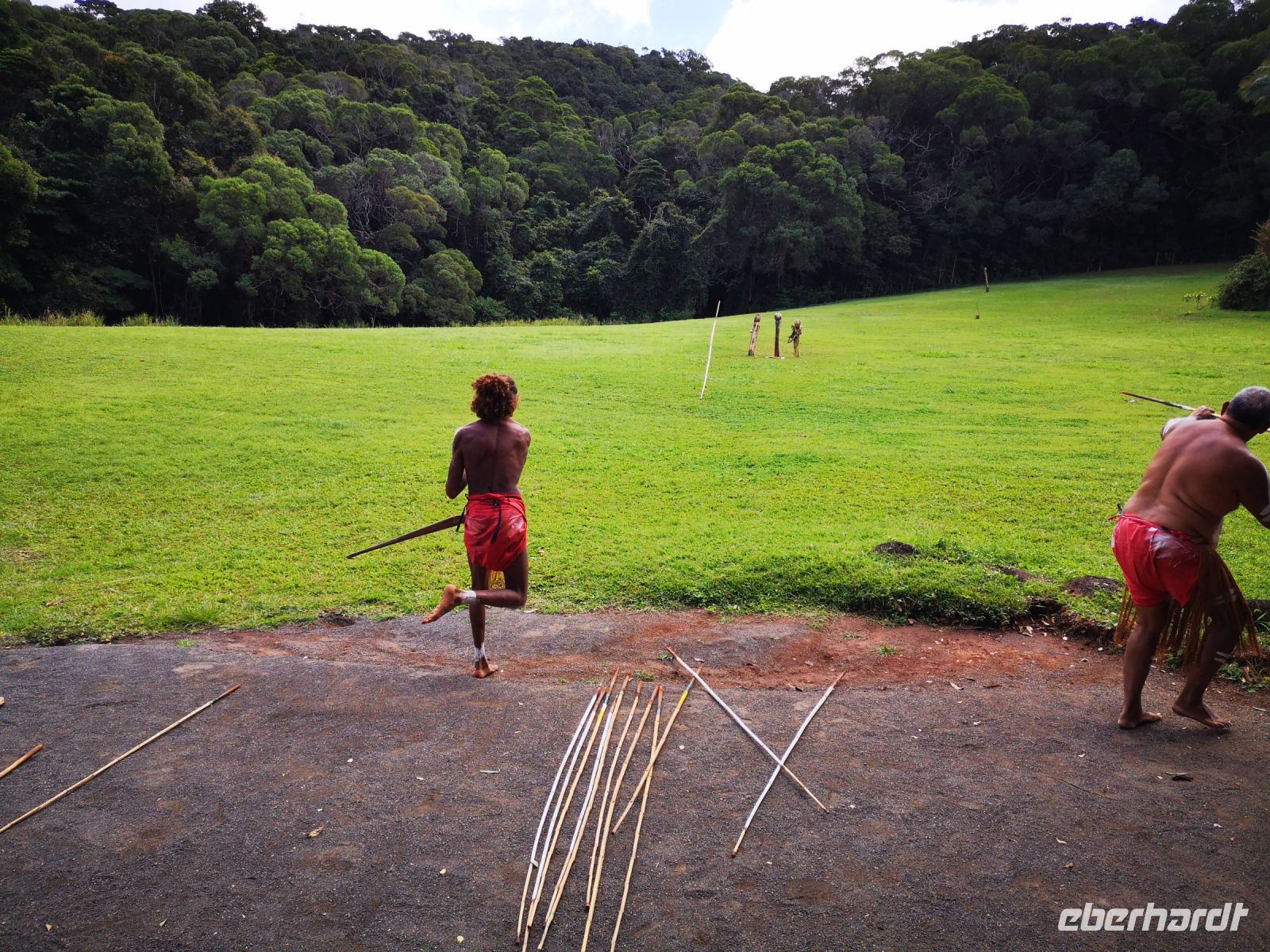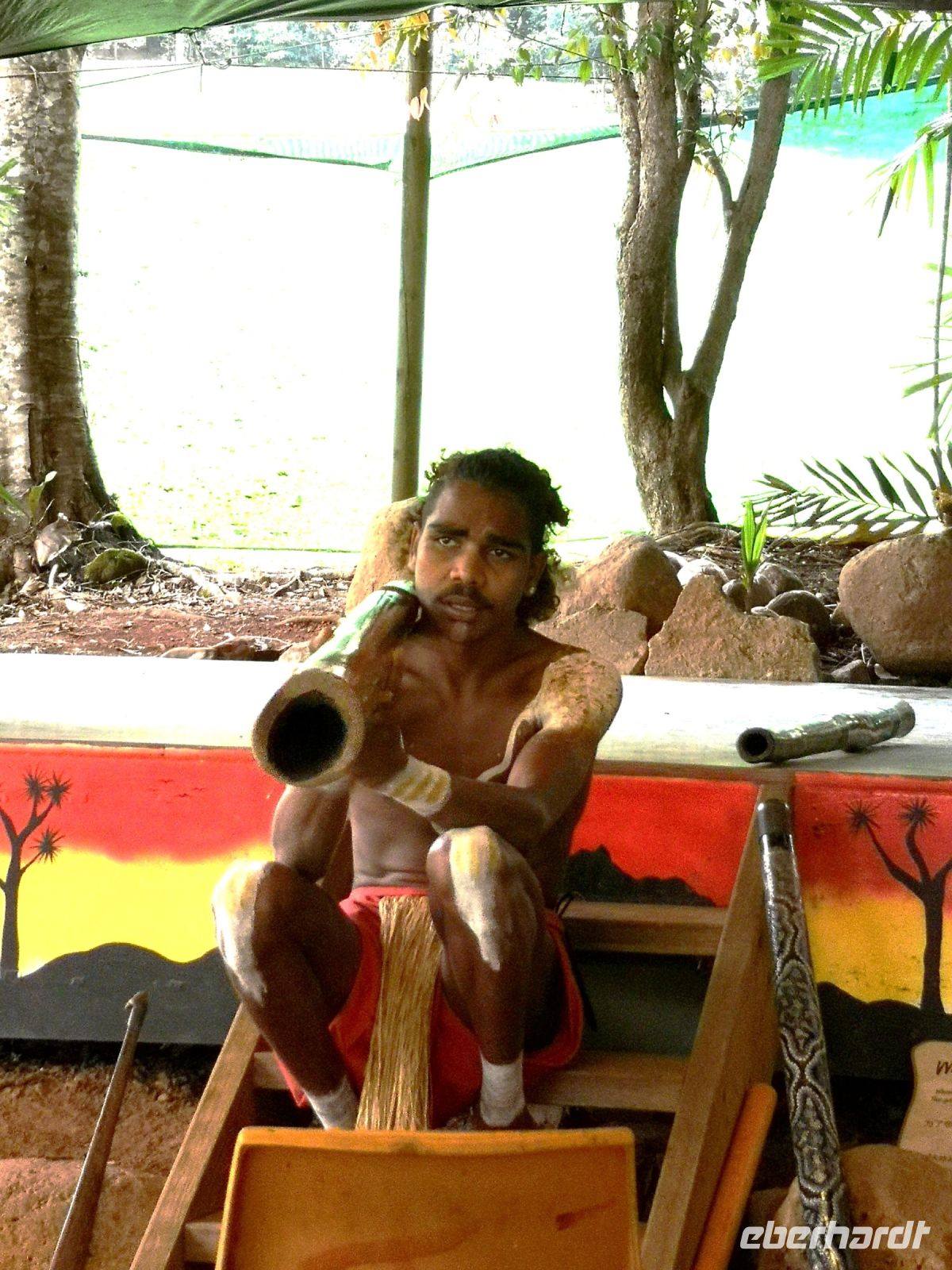Weitere Traditionen wie z.B. das Herstellen und spielen auf dem Didgeridoo werden uns gezeigt Und zum Schluss als Höhepunkt zeigt uns eine Gruppe der Ureinwohner traditionelle Tänze zu Rhythmen von Schlagholz und Didgeridoo. Die Gruppe der Ureinwohner sind es gewöhnt mit Touristen umzugehen, aber auf uns wirken sie trotzdem sehr authentisch und beeindrucken uns mit ihren Vorführungen.