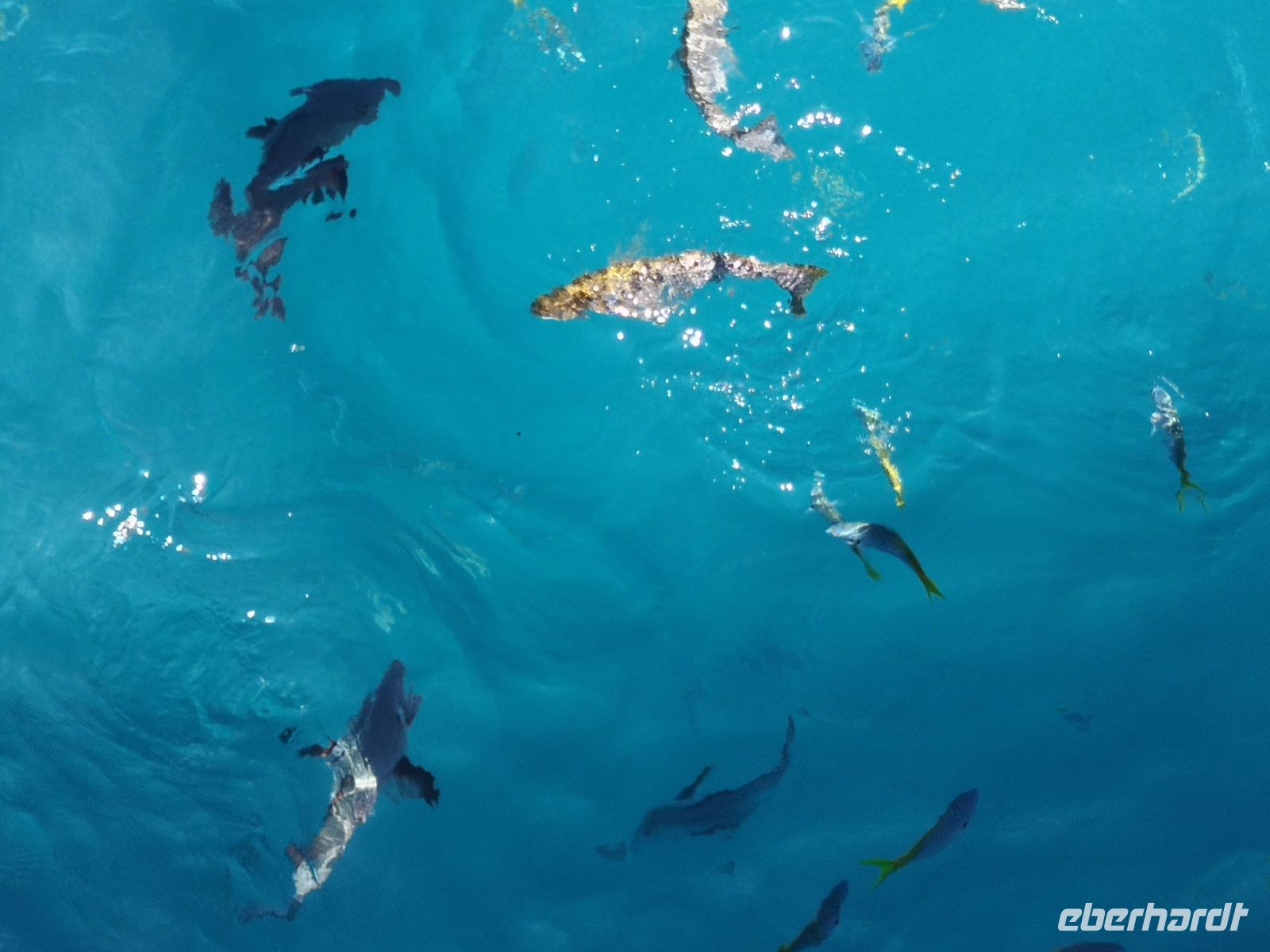 Wem dieser Kontakt mit dem Korallenriff noch nicht genug war, konnte sich, ausgerüstet mit Maske, Schnorchel und Flossen, auf die keine Sandbank übersetzten lassen und von hier aus über dem Riff Schnorcheln und direkt mit den Fischen zwischen den Korallen tauchen. Ein großes Getümmel von verschiedenen Riff-Fischen können wir beobachten, direkt neben unserem Boot, als die Crew Fischreste zur Fütterung ins Wasser werfen.